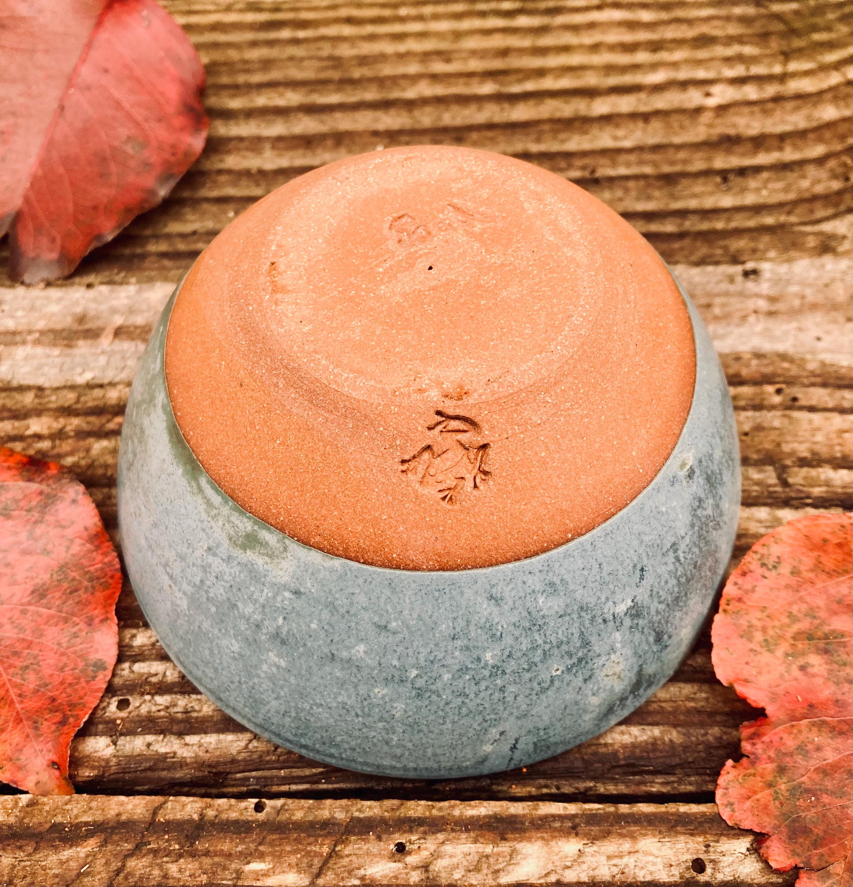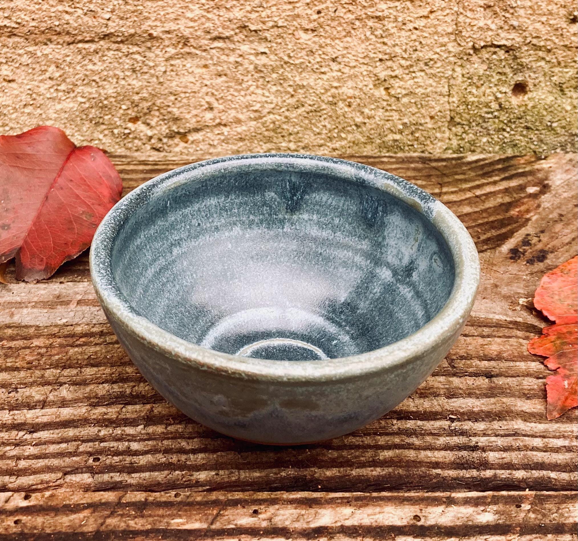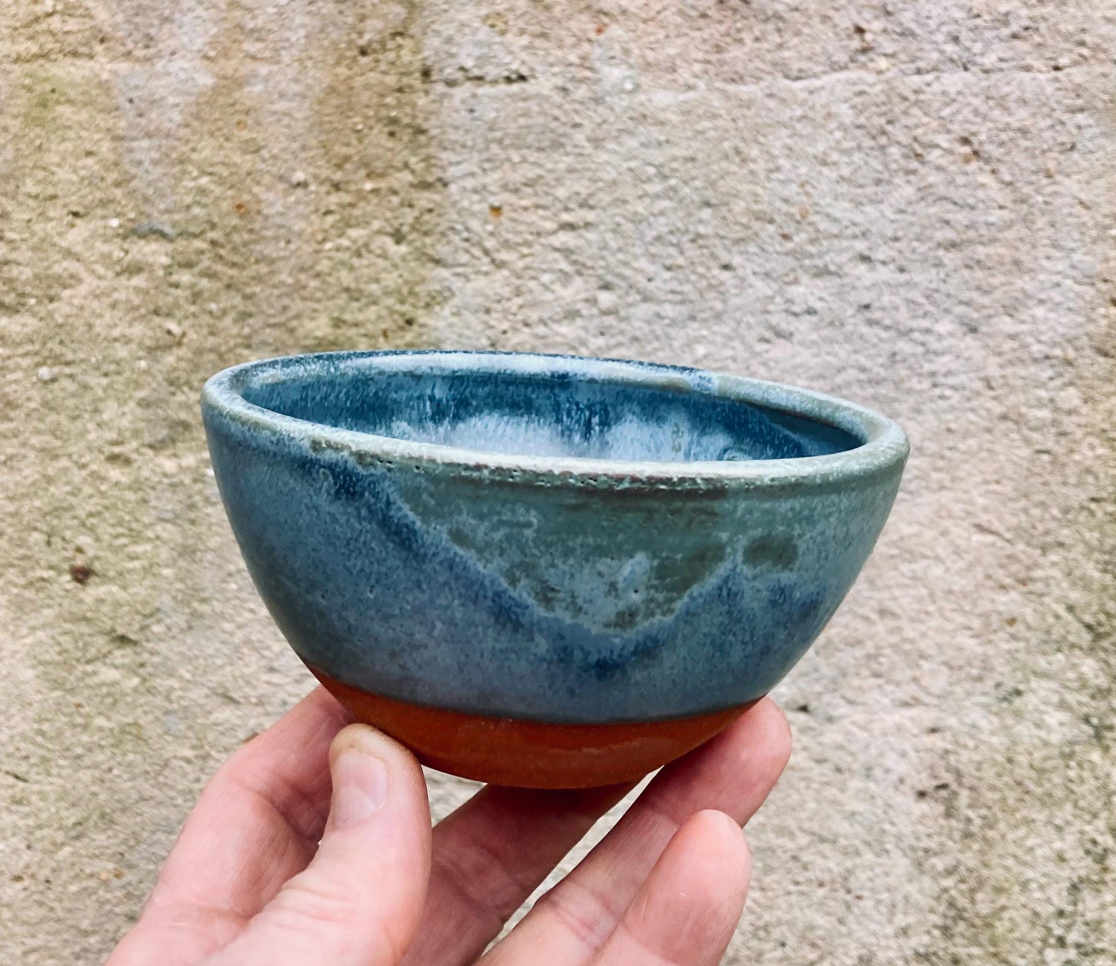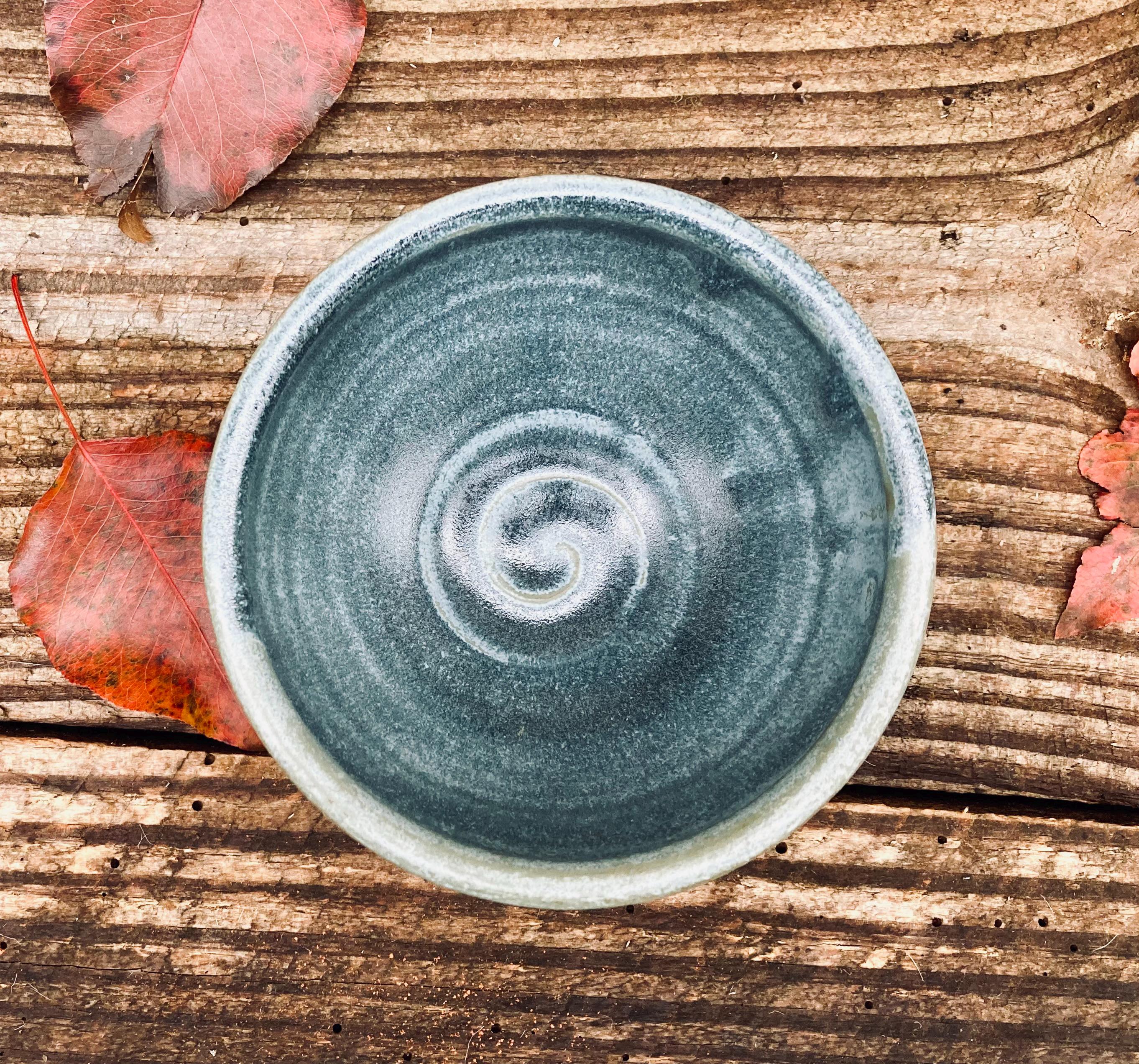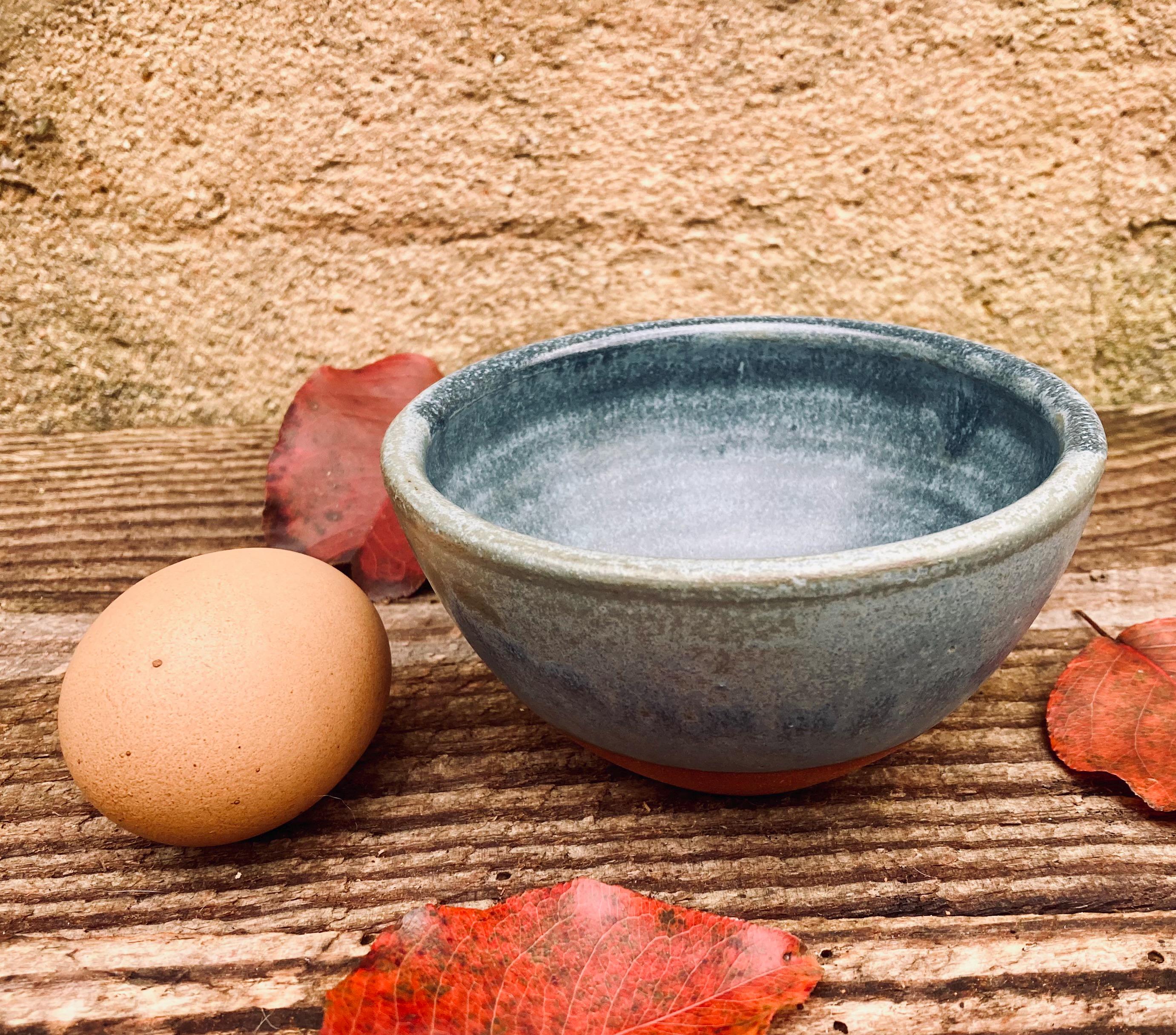 Simplicity at its best. Just a small bowl that fits comfortably in the palm of your hand while you whip up lather. The picture with brush and lather is of another bowl.