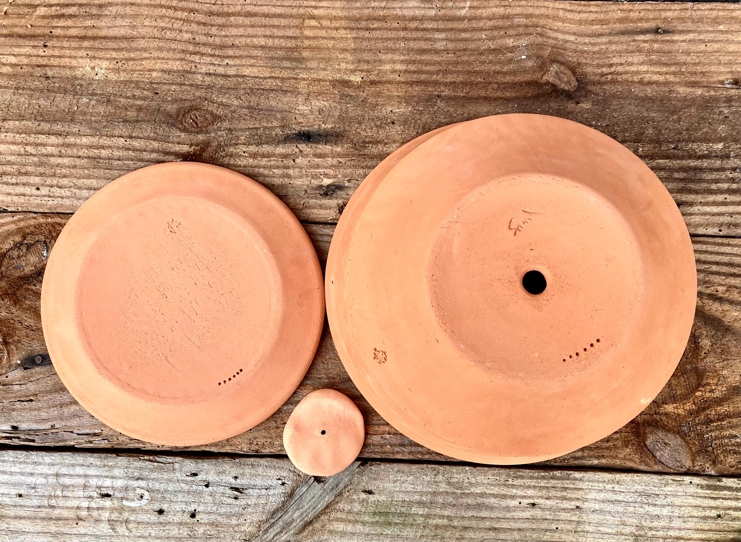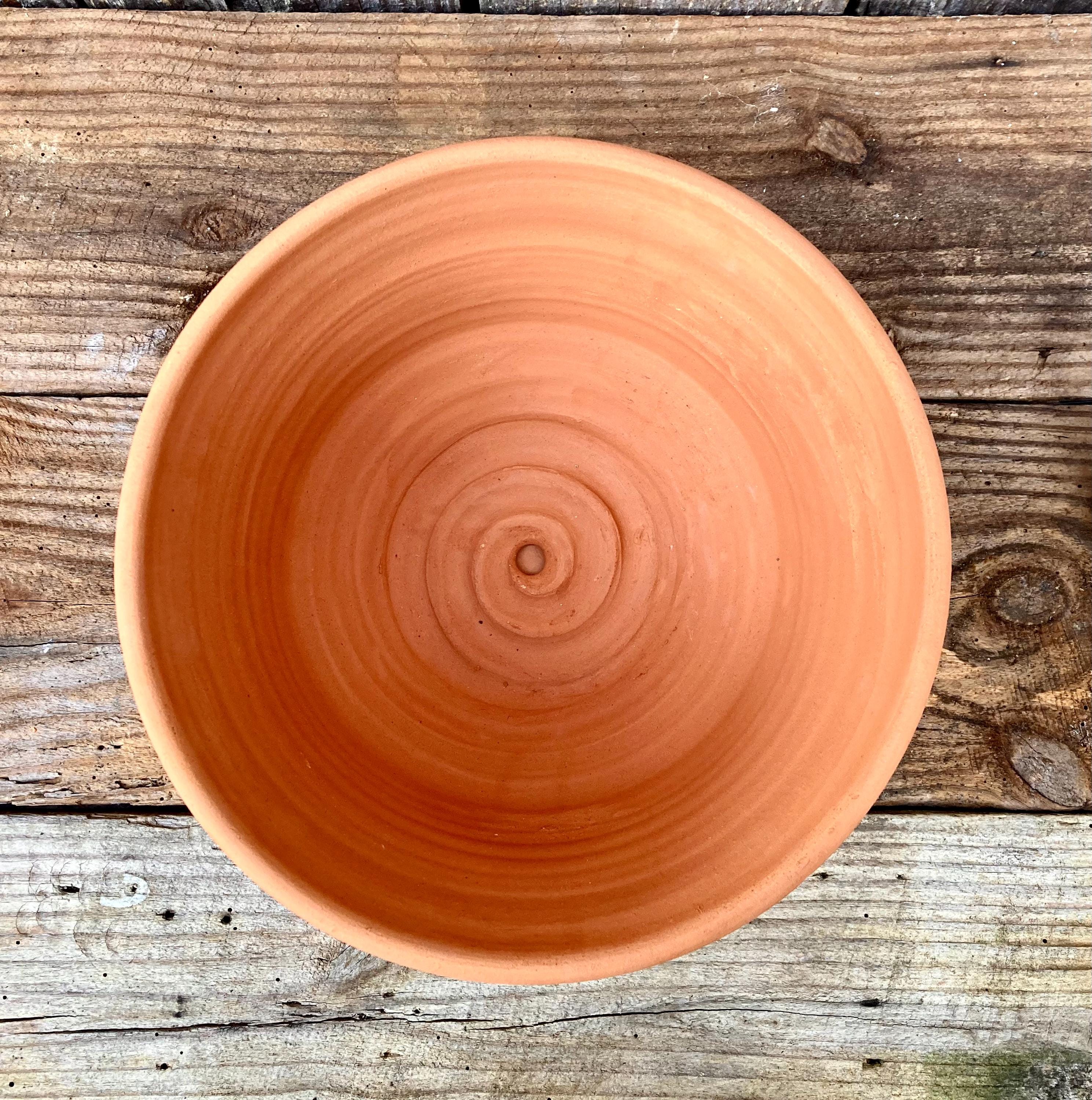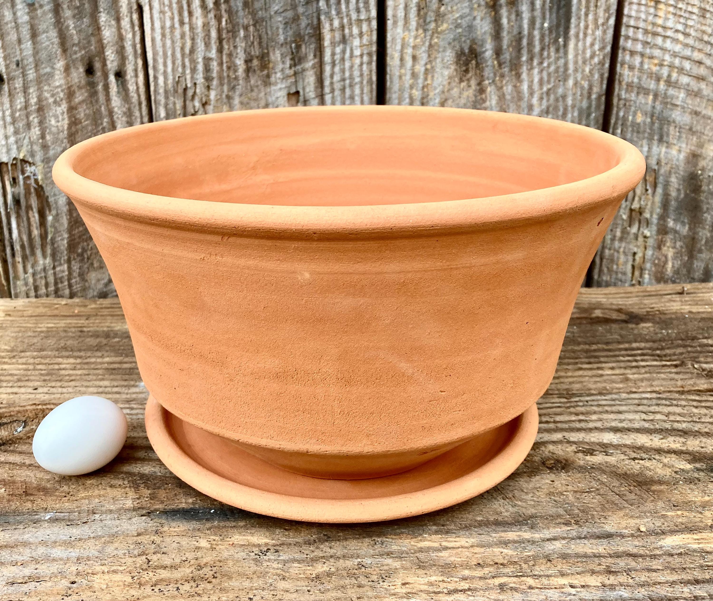 This large, terracotta planter with saucer was made of wheel-thrown, locally dug clay that when fired to the right temperature comes out a nice terracotta color and is porous. This allows air and water to flow through the pot which prevents root rot and soil disease.