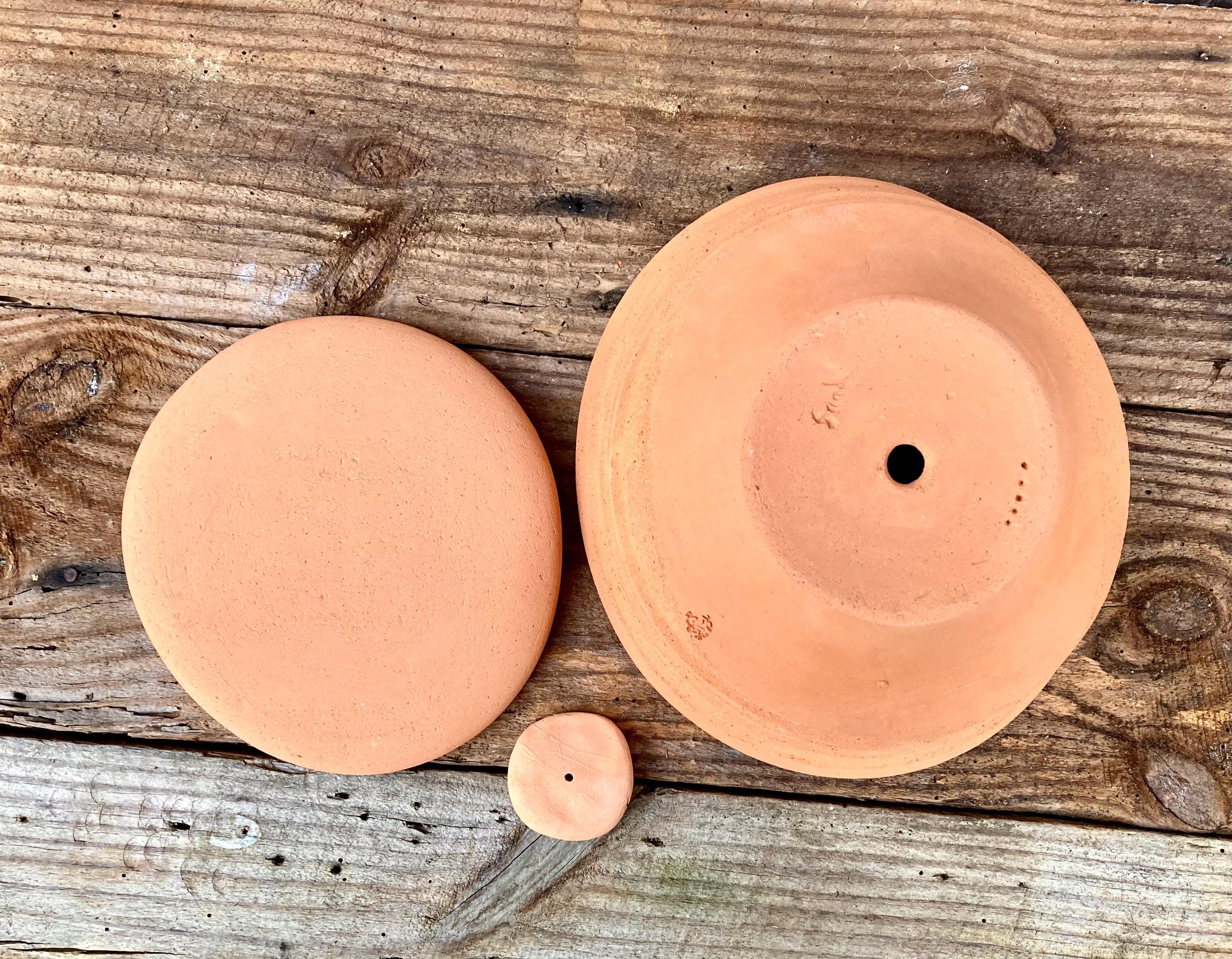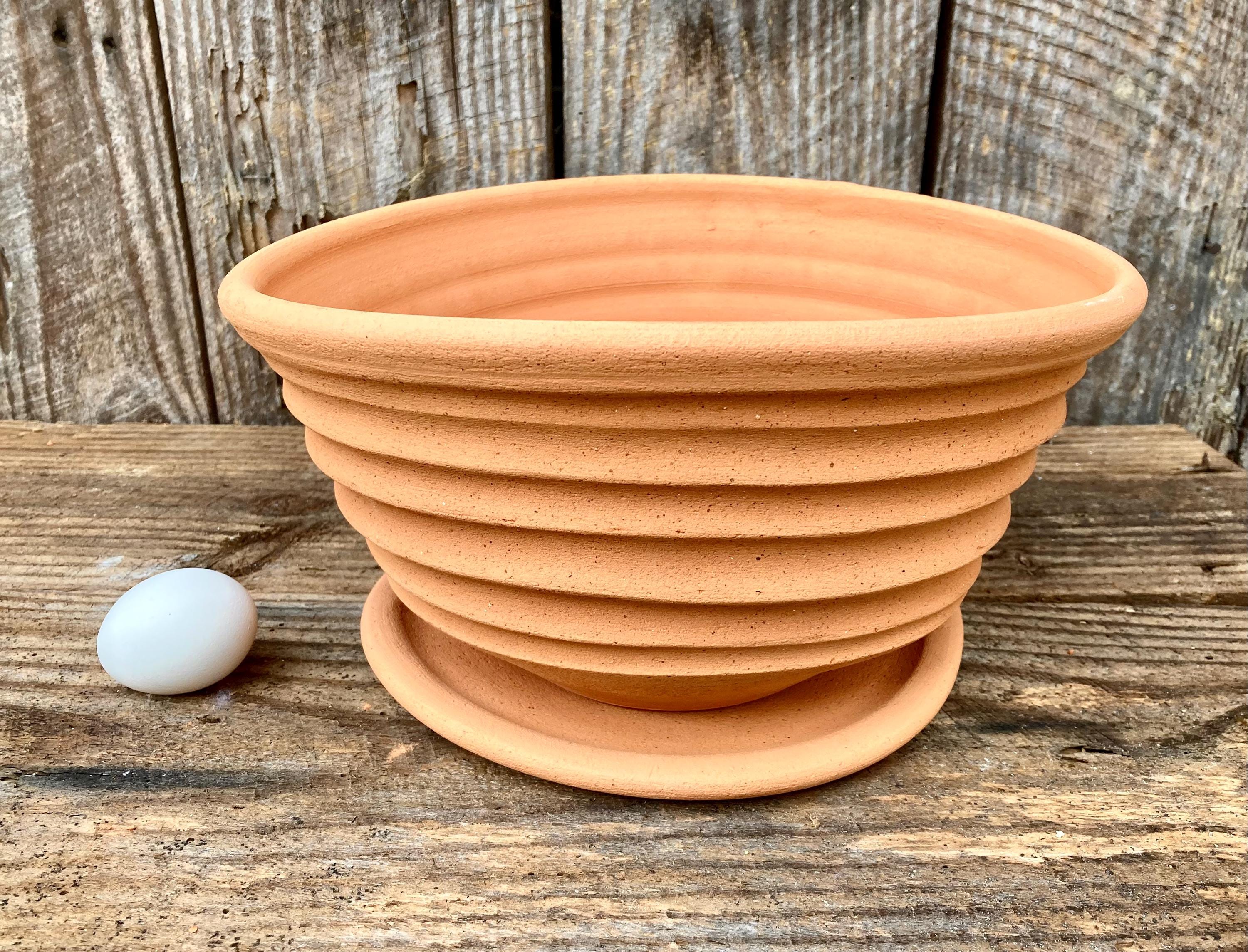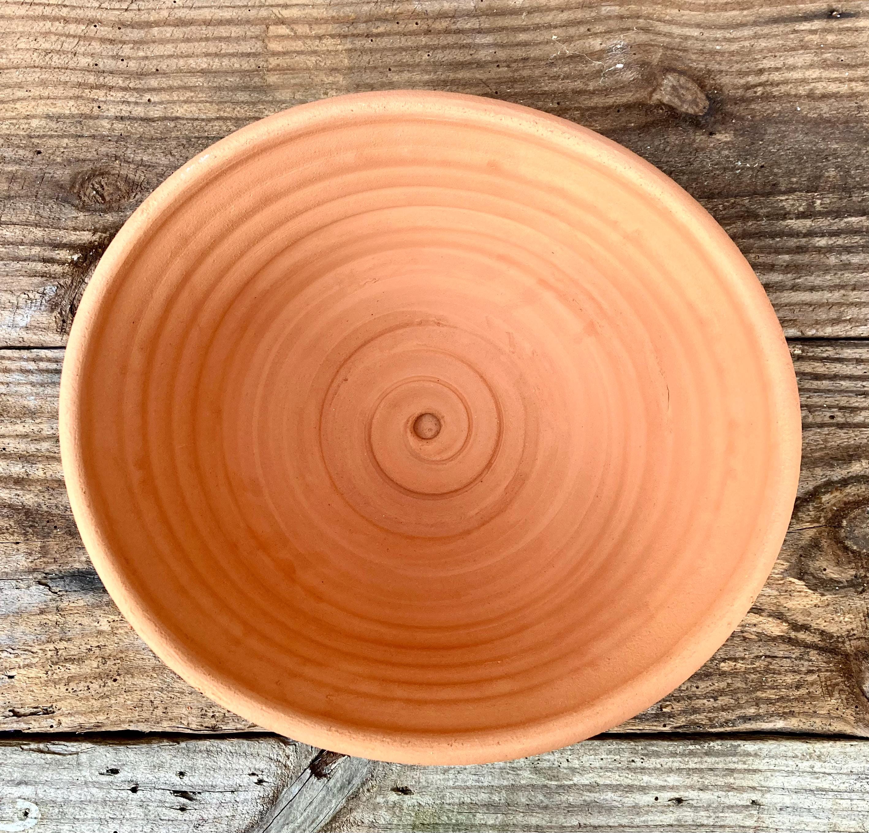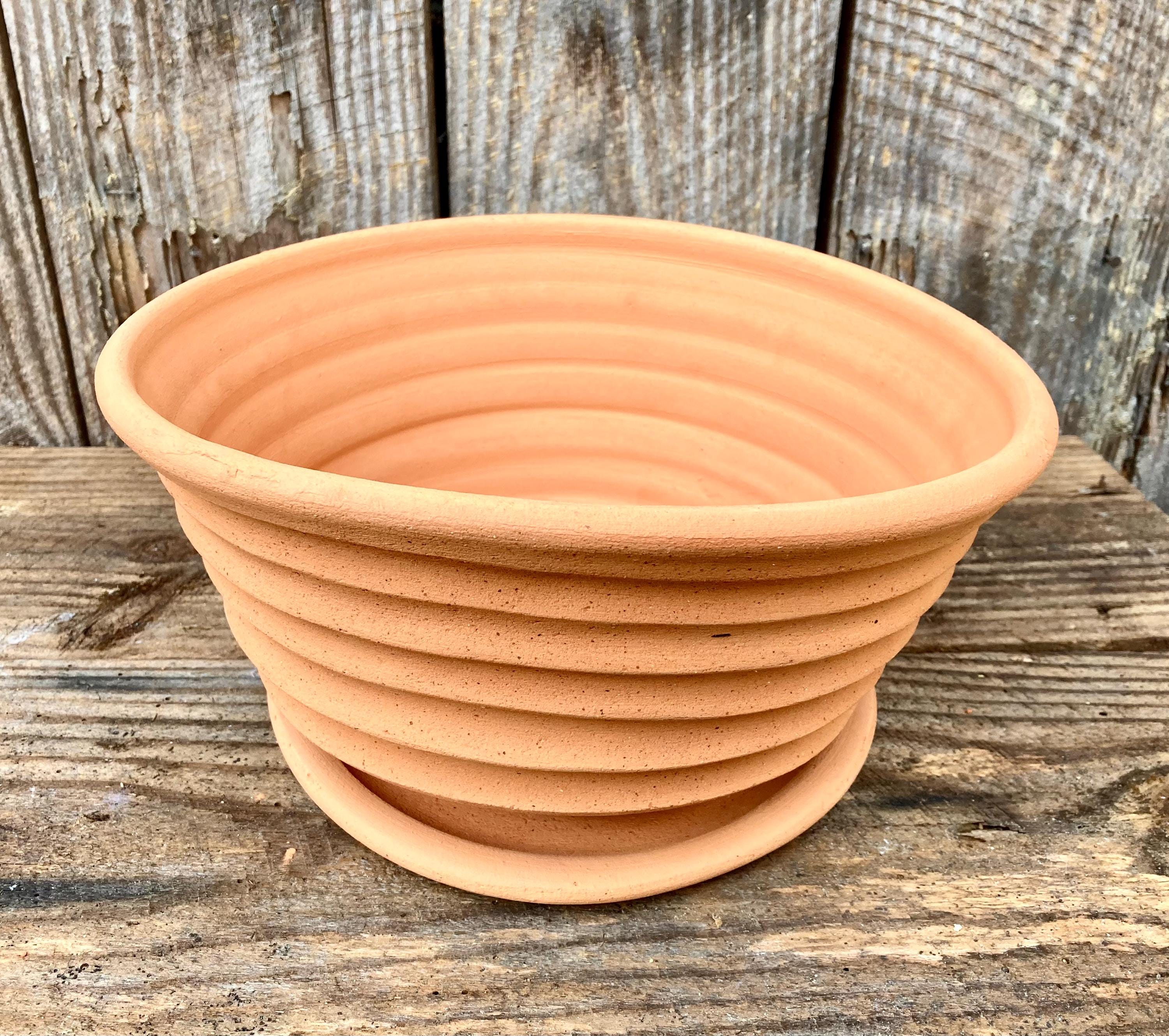 This large, terra cotta planter with saucer was made of wheel-thrown, locally dug clay that when fired to the right temperature comes out a nice terra cotta color and is porous. This allows air and water to flow through the pot which prevents root rot and soil disease.