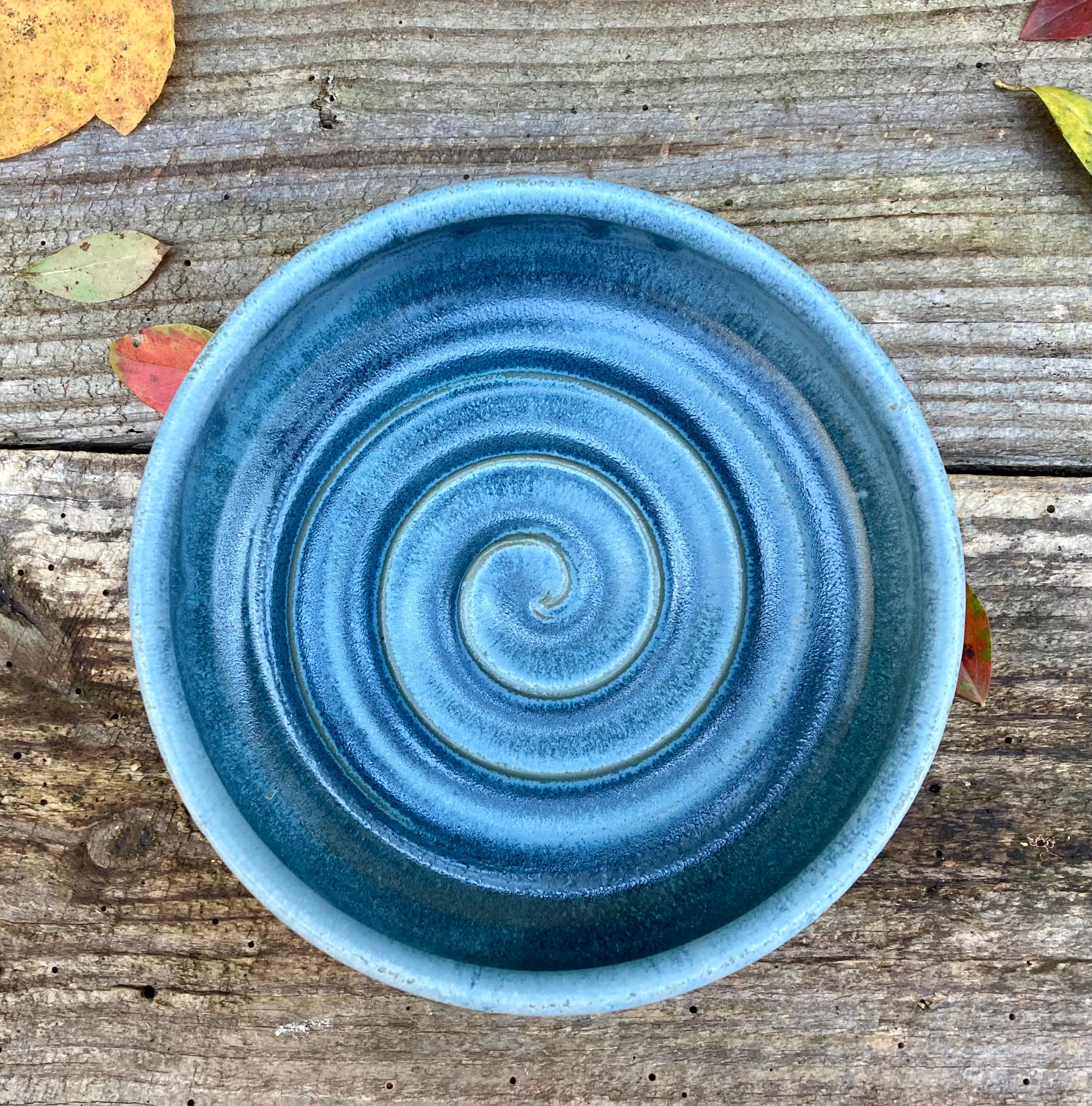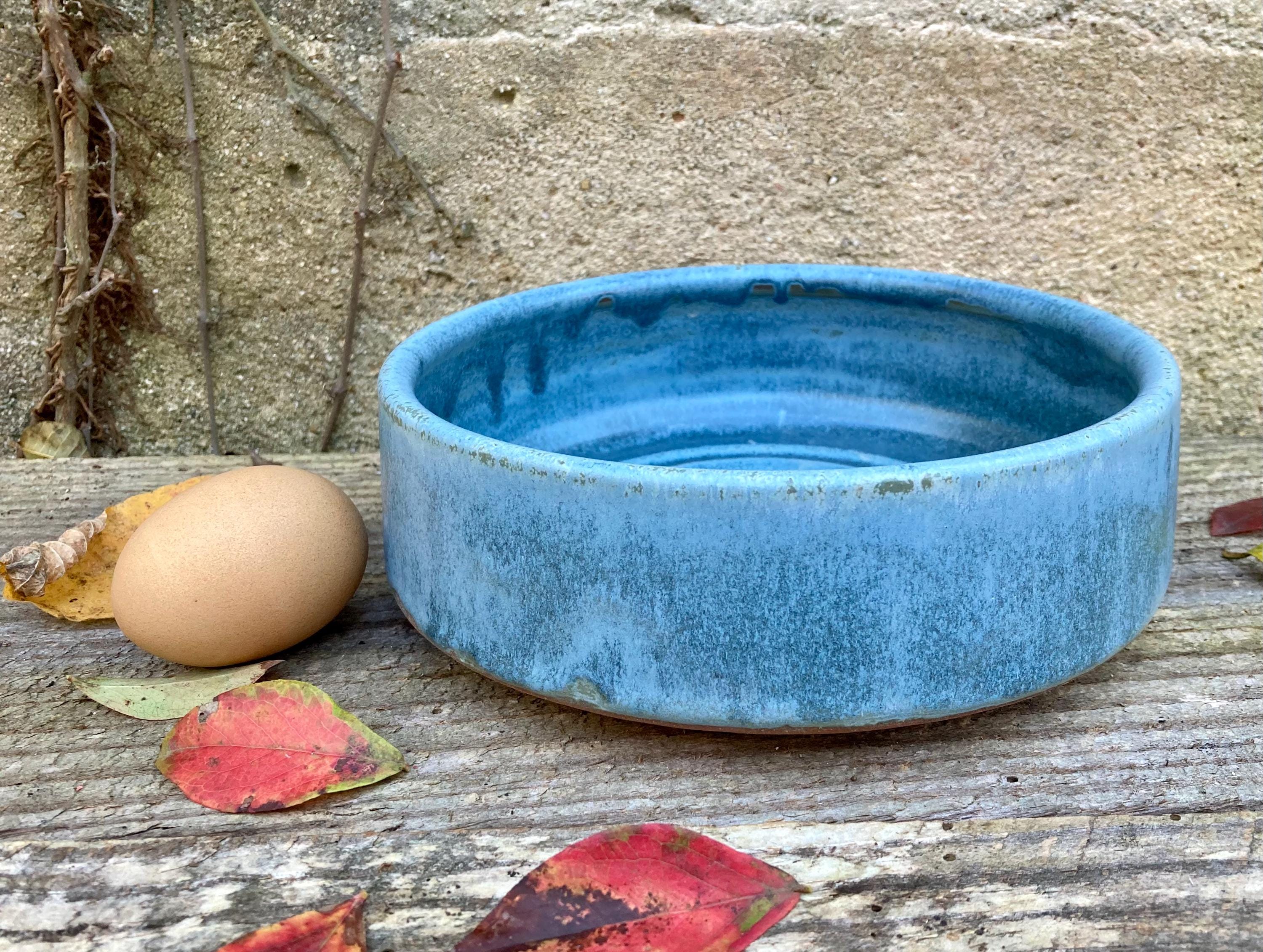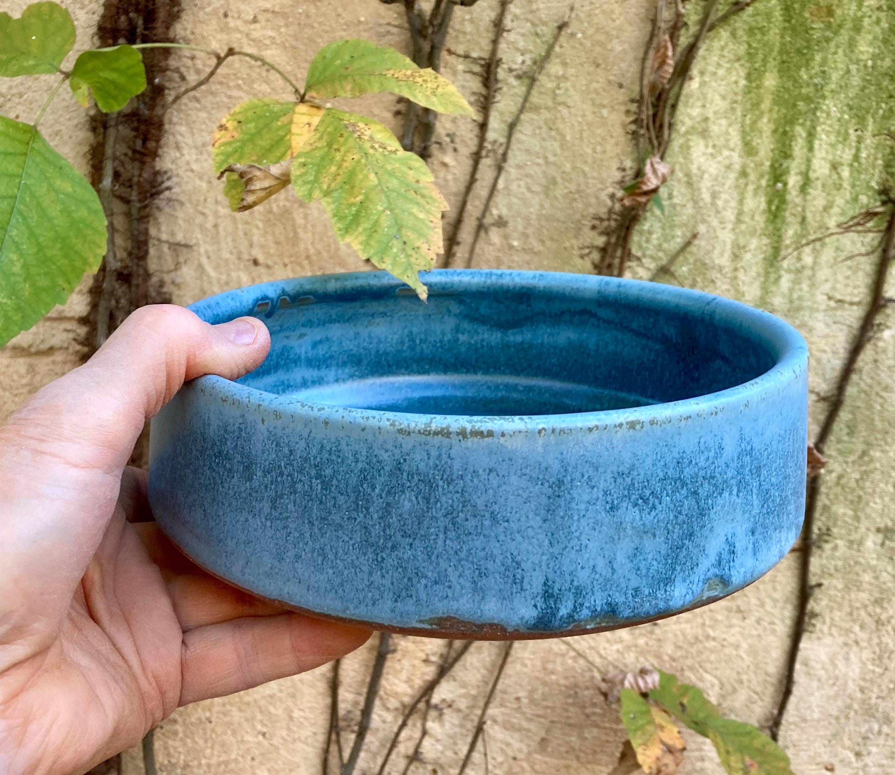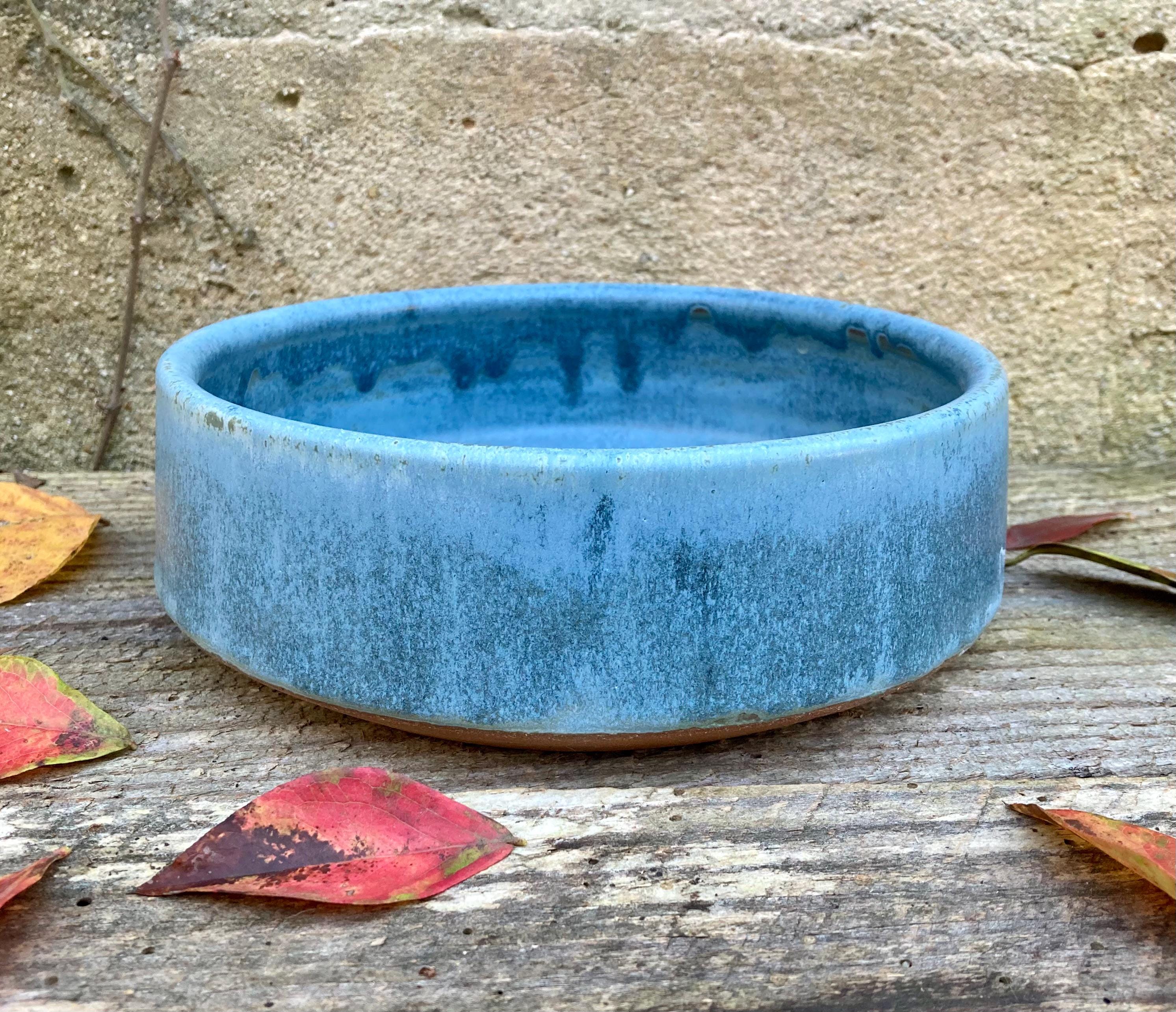 This stoneware dog bowl was wheel-thrown and fired to 2300 degrees for strength and durability. It was slow cooled to give the glaze time to develop depth and variation. Heavy enough to make it a little harder to push across the floor. Wider at the bottom so it is almost impossible to turn over. Makes a great water bowl. It also make a good baking and serving dish.