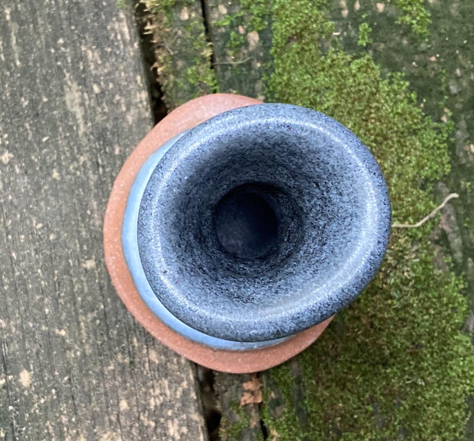 This stoneware vase was fired to 2300 degrees for strength and durability. It was slow cooled to give the glazes time to run, merge, and pool.