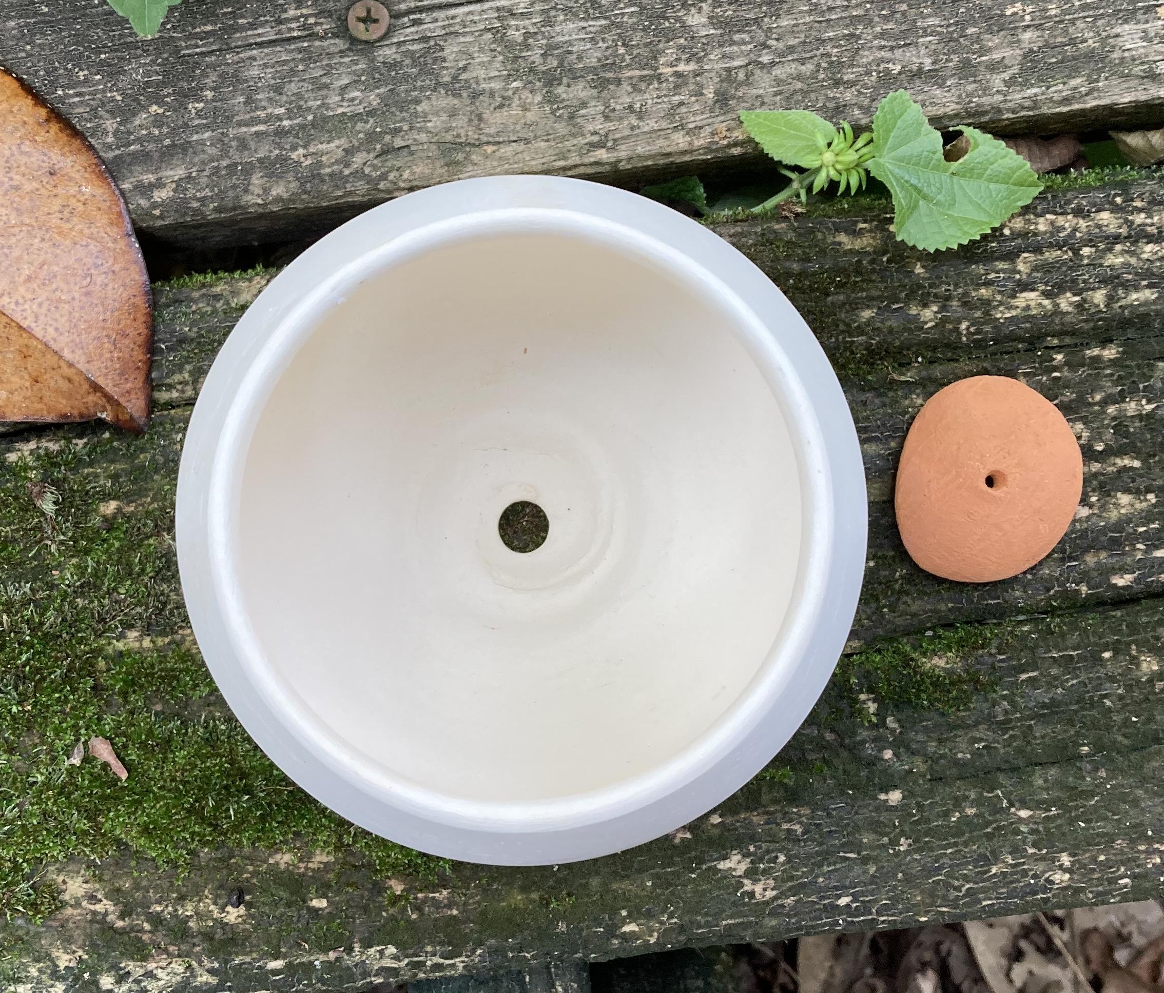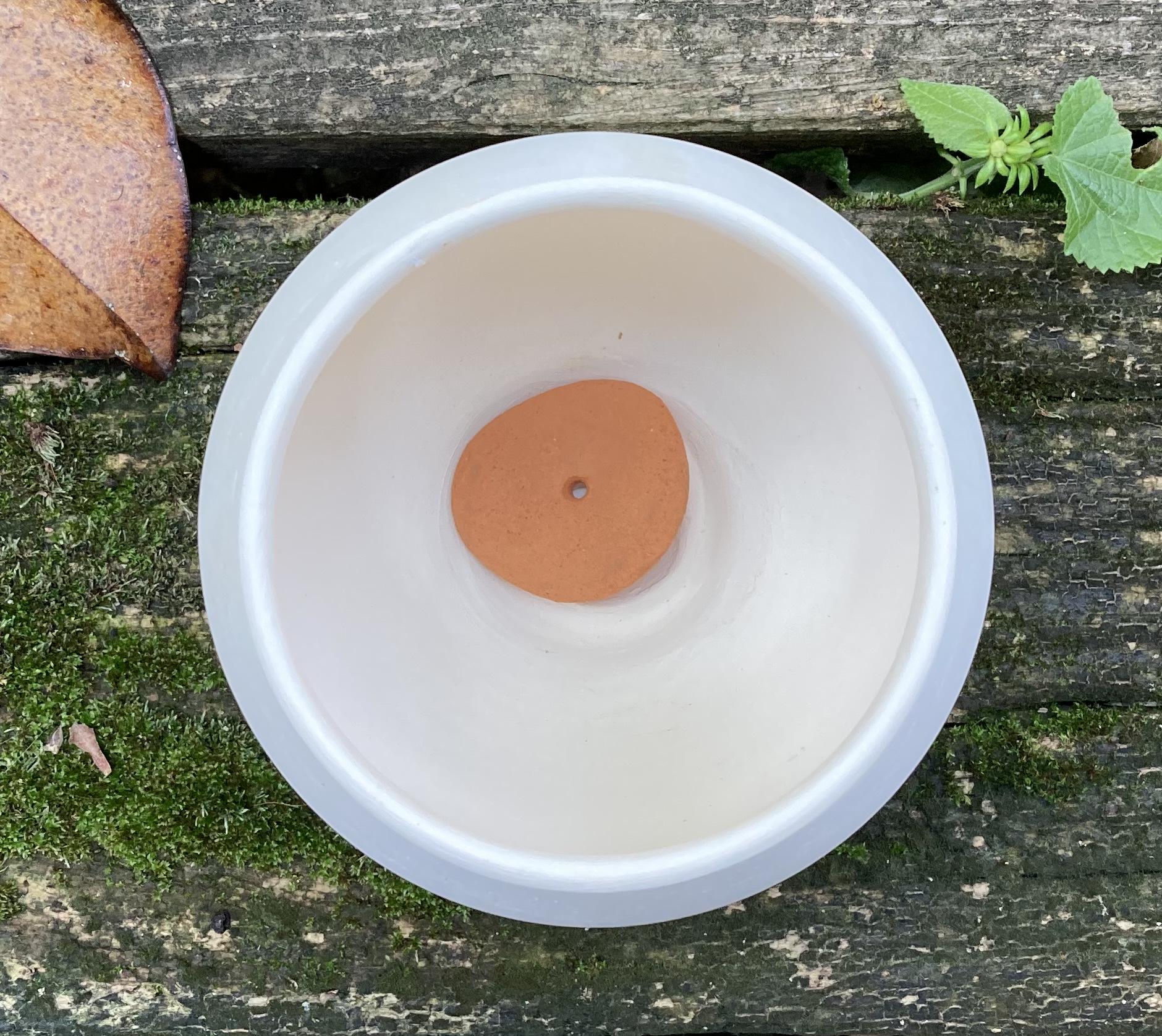 This small planter was made of white earthenware clay. Like terracotta it is porous. This allows air and water to flow through the pot which prevents root rot and soil disease.