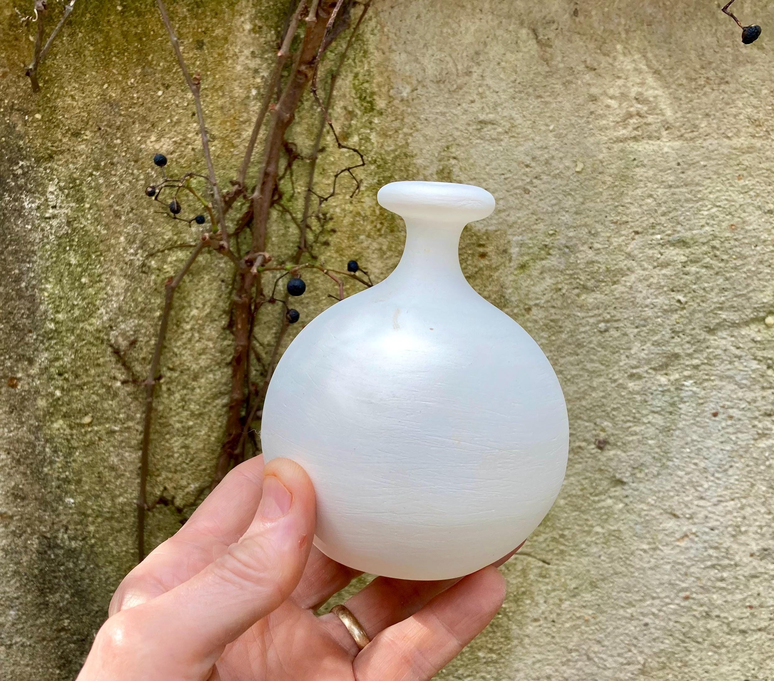 This handmade, white earthenware watering bell is fired high enough to be much stronger and more durable than mass produced earthenware pots.