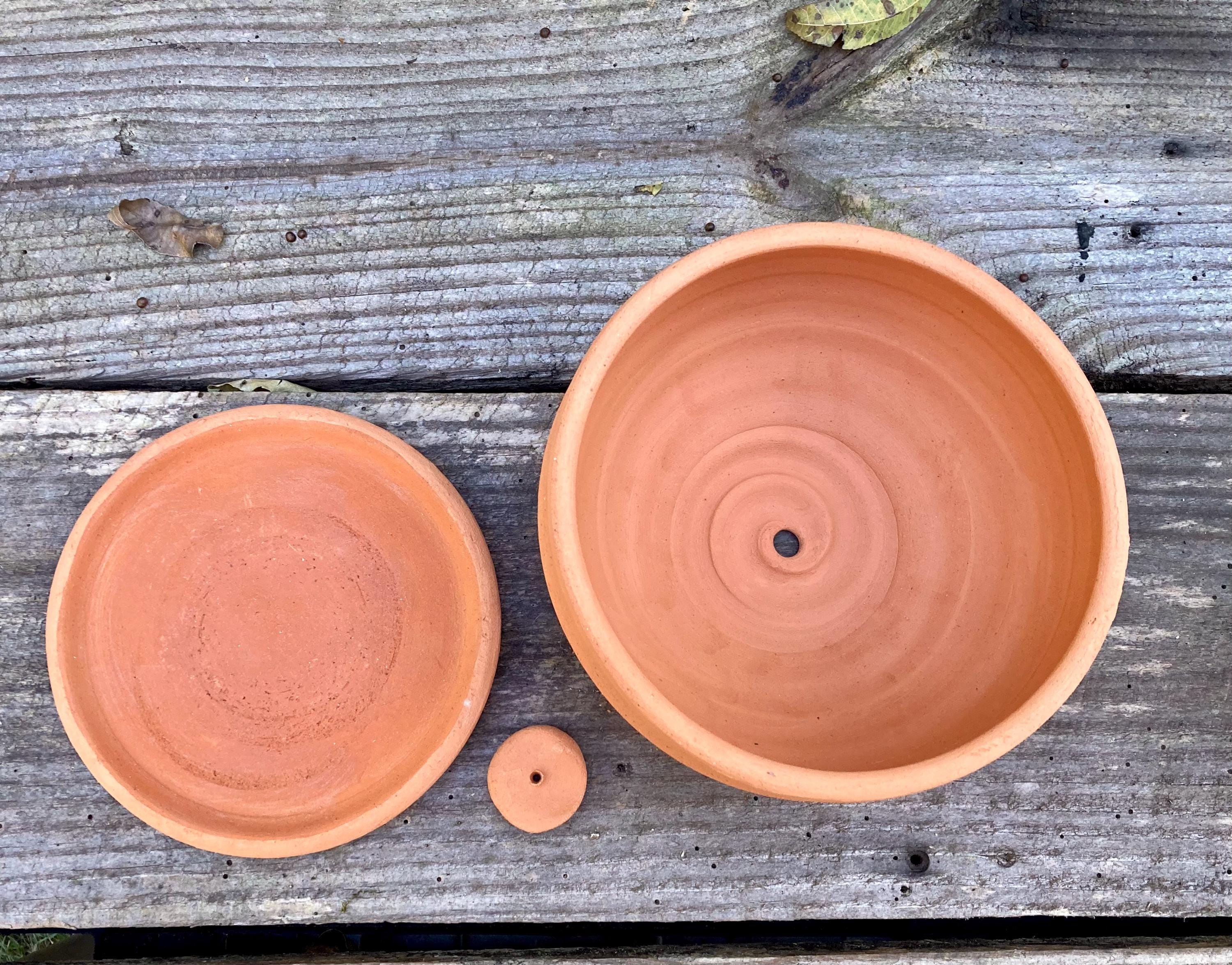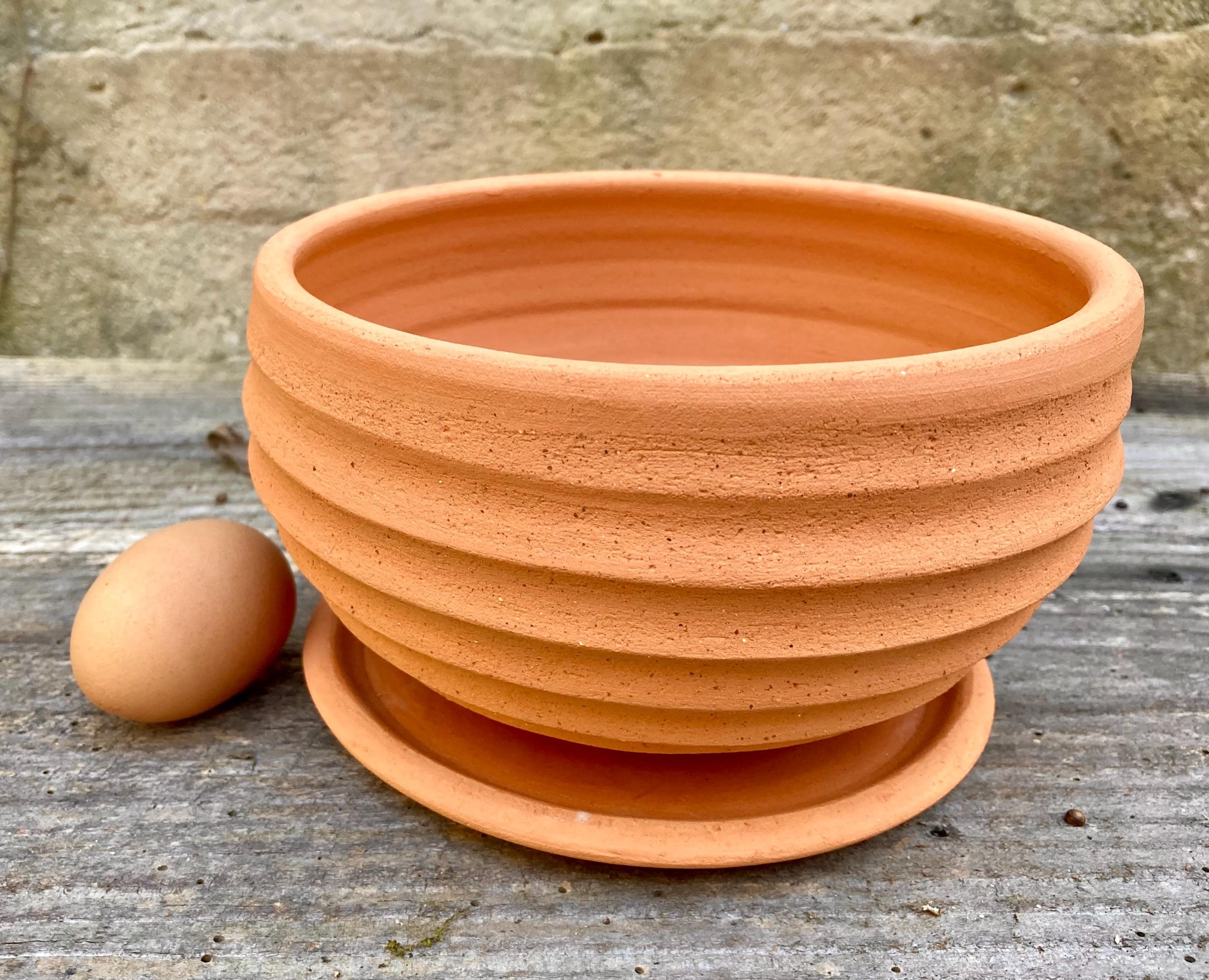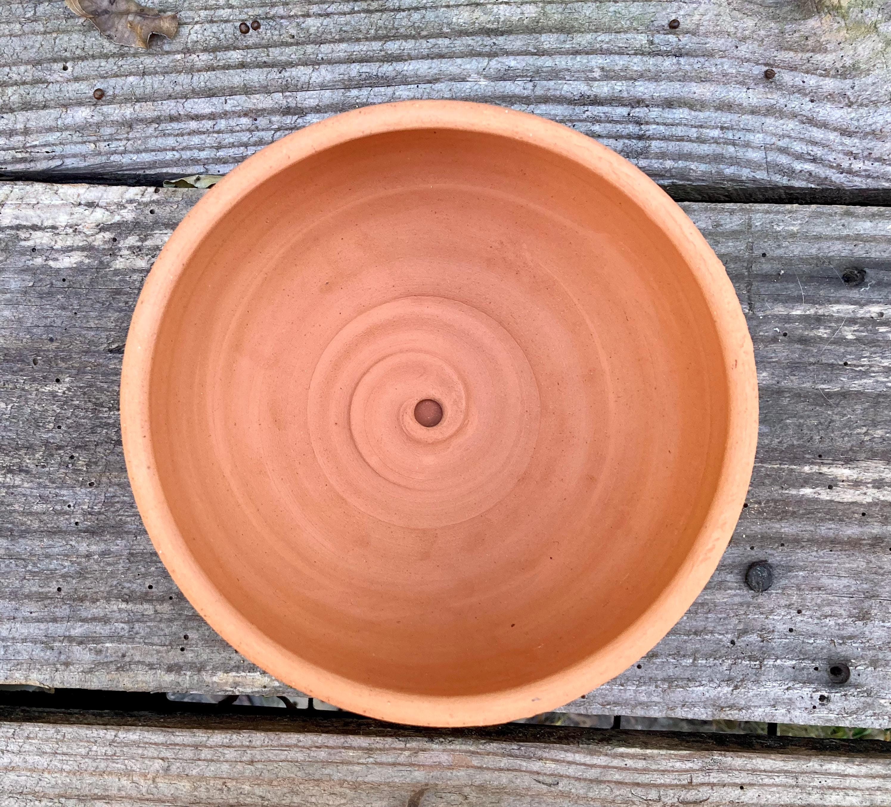 This terracotta planter was made of wheel-thrown, locally dug clay that when fired to the right temperature comes out a nice terracotta color and is porous. This allows air and water to flow through the pot which prevents root rot and soil disease.
