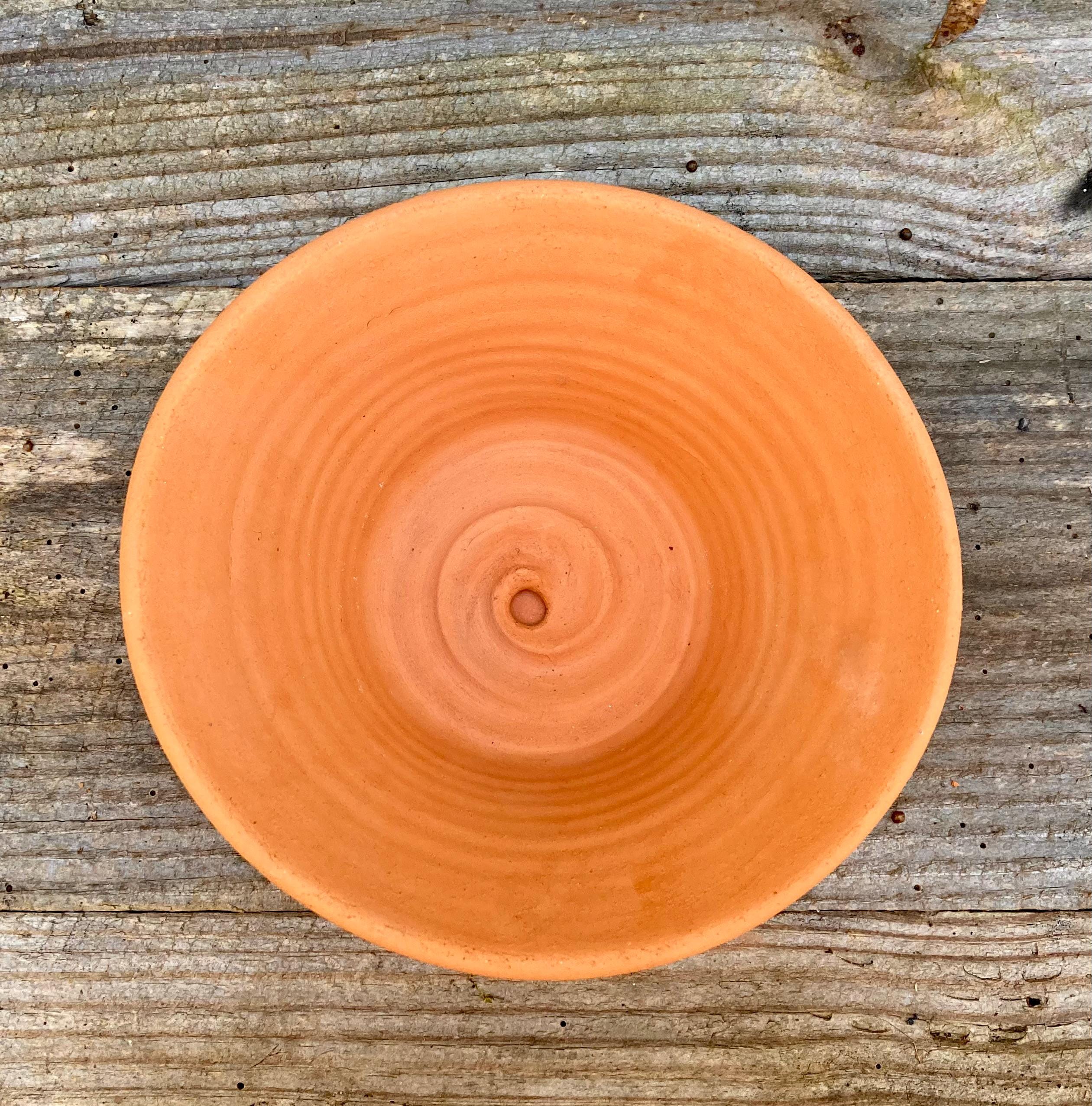 This terracotta planter It is a take off of the traditional flower pot. Altered for gesture. It was made of wheel-thrown, locally dug clay that when fired to the right temperature comes out a nice terracotta color and is porous. This allows air and water to flow through the pot which prevents root rot and soil disease.