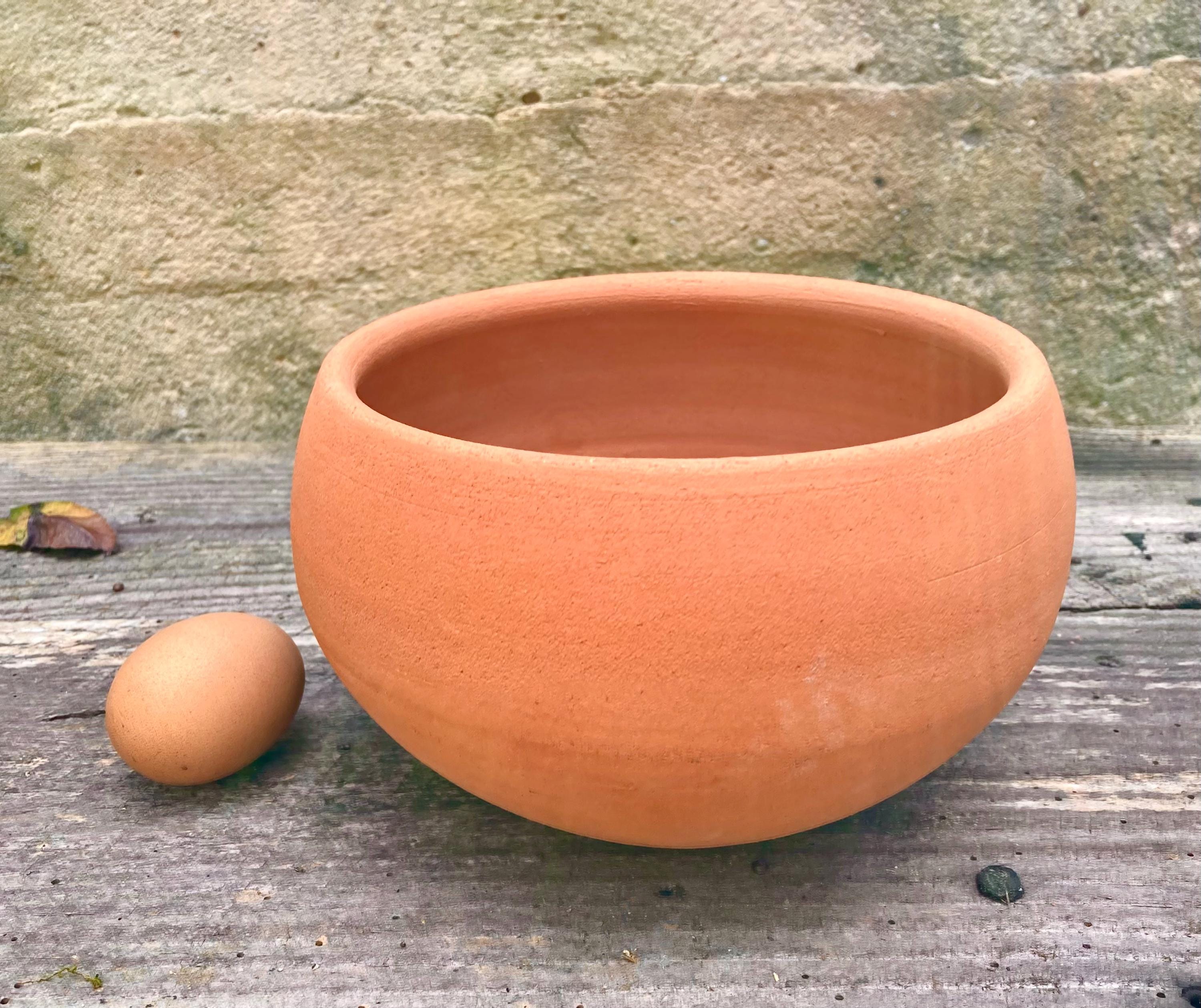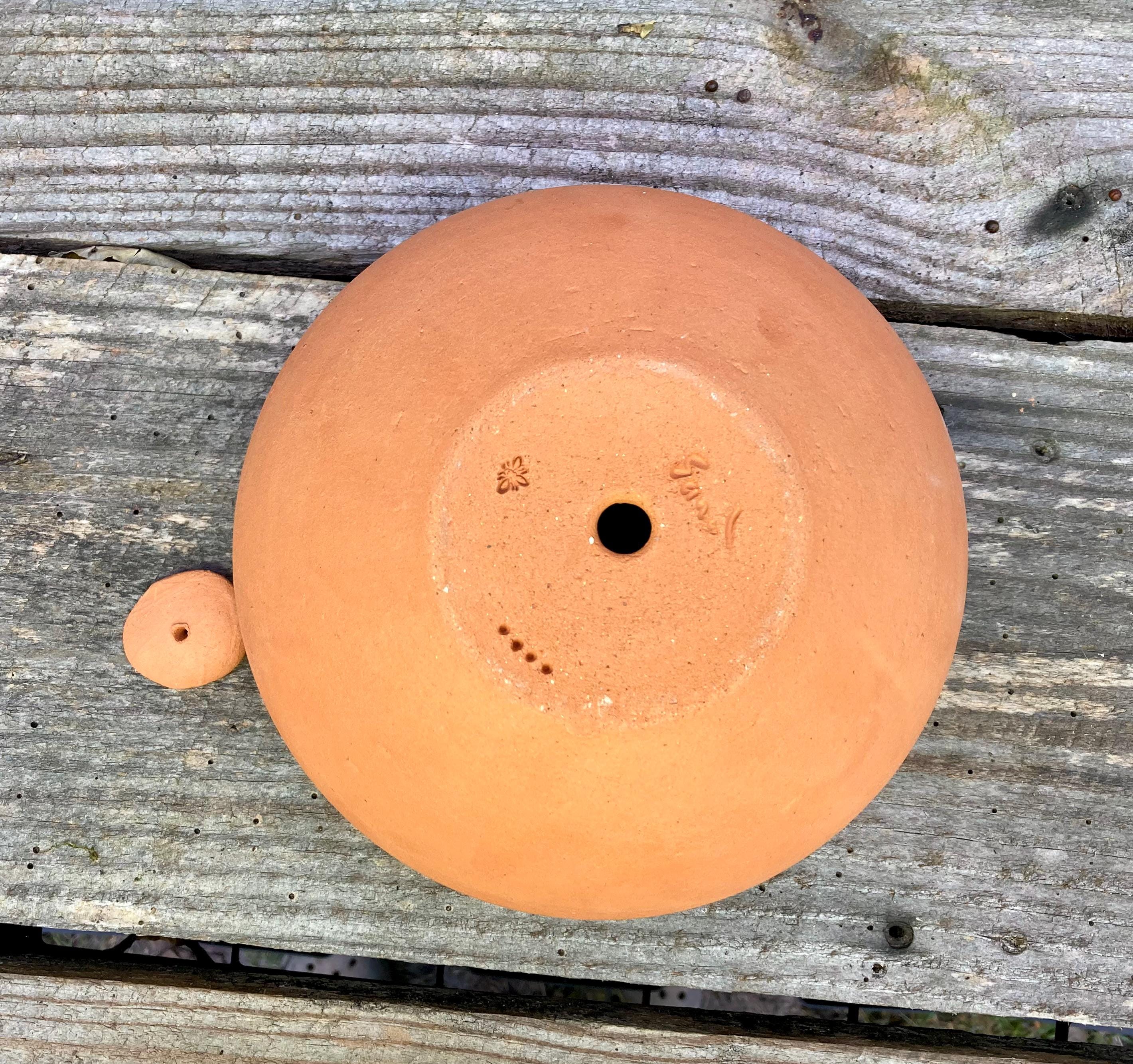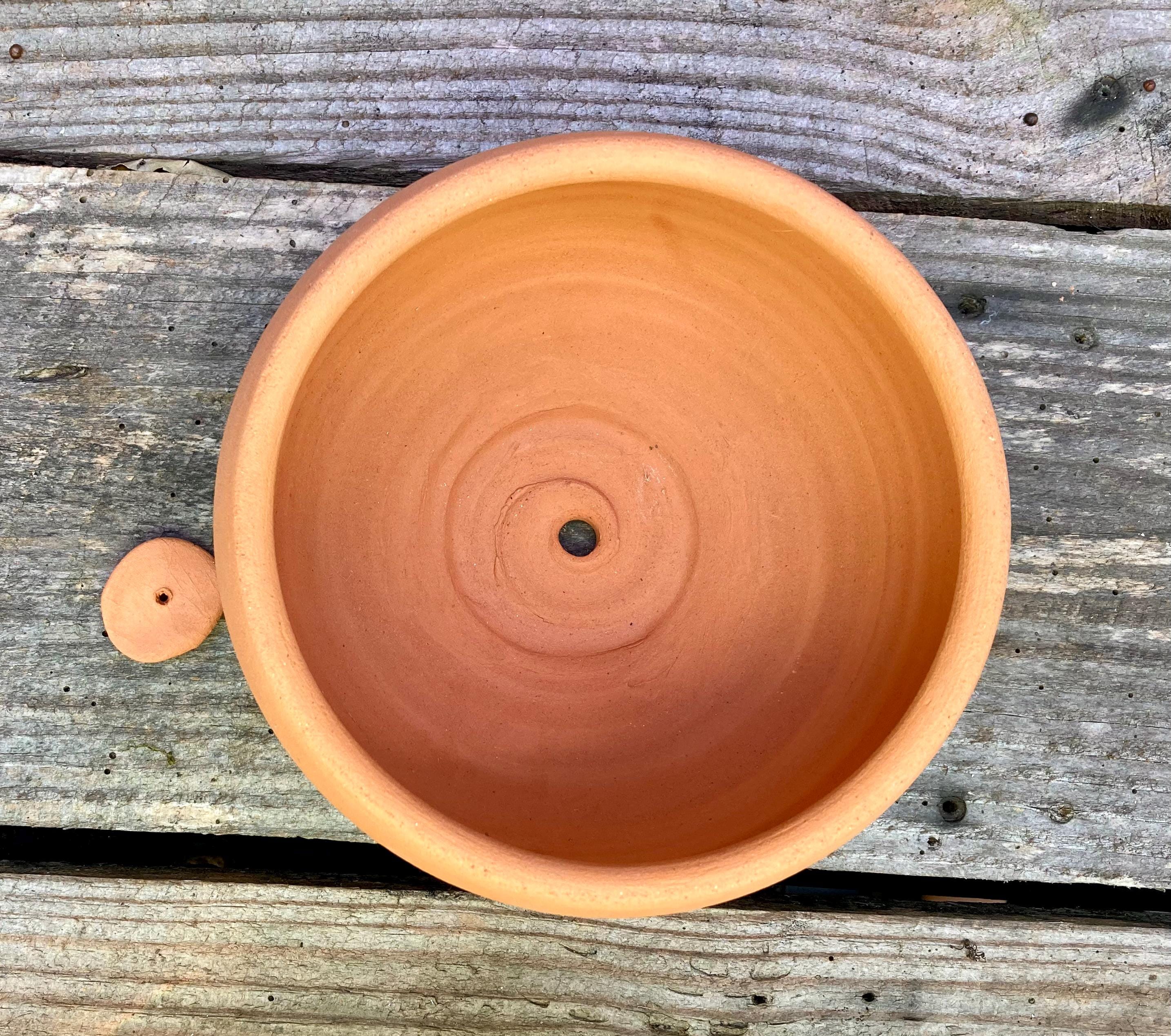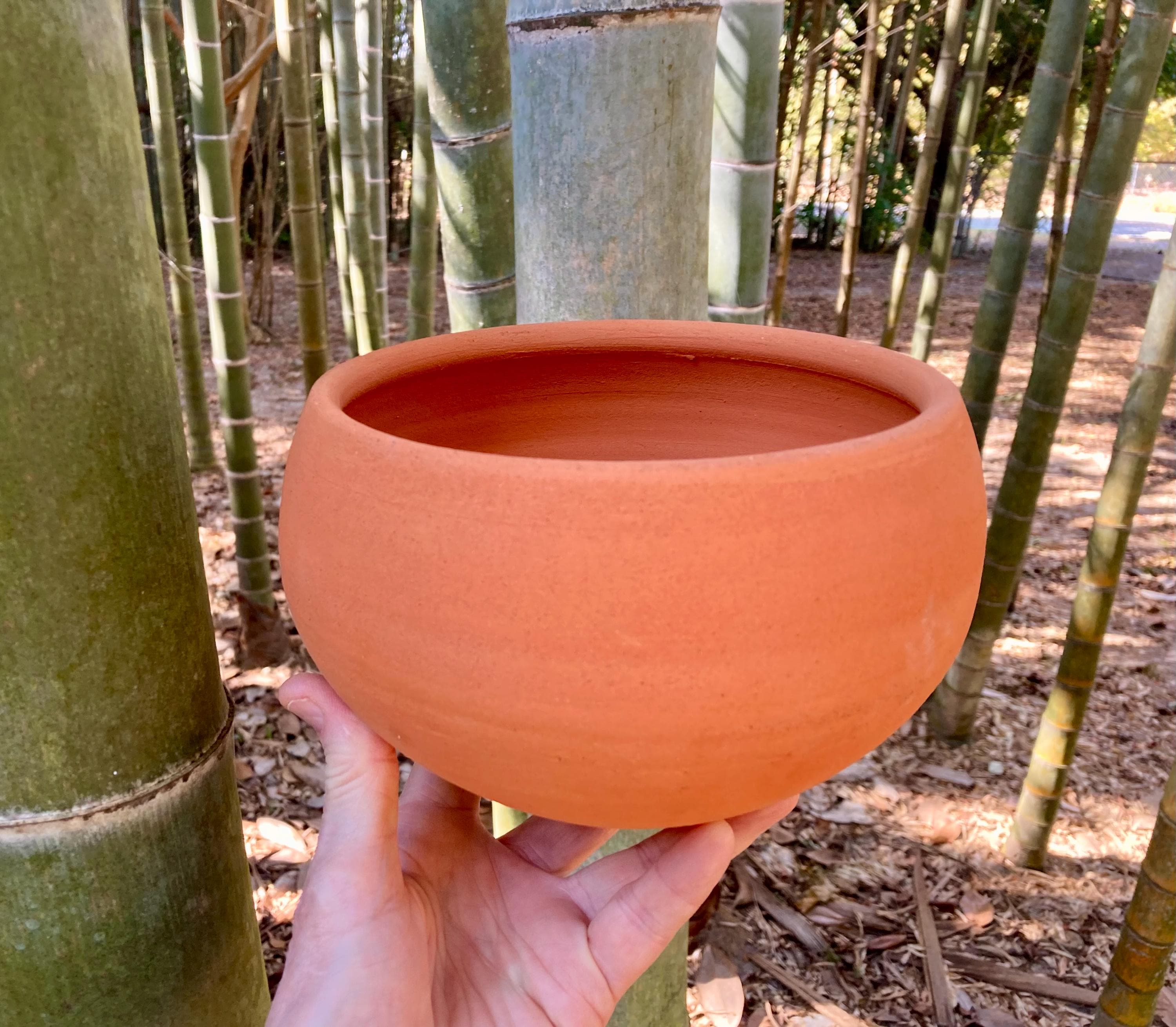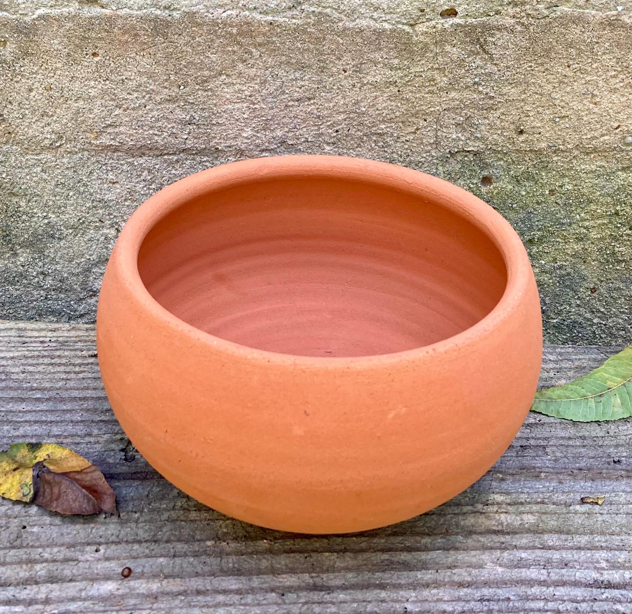 This terra cotta planter was made of wheel-thrown, locally dug clay that when fired to the right temperature comes out a nice terracotta color and is porous. This allows air and water to flow through the pot which prevents root rot and soil disease.