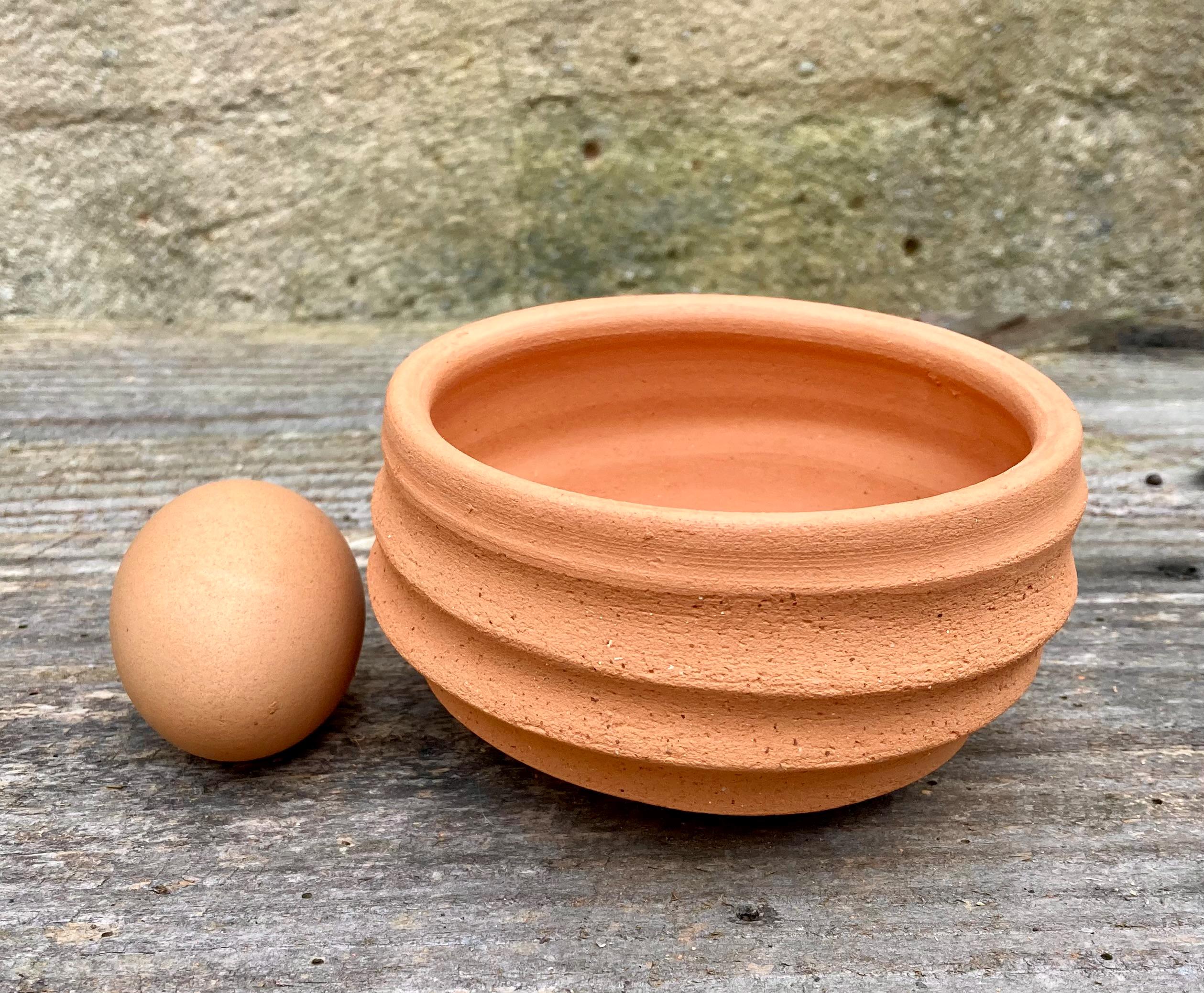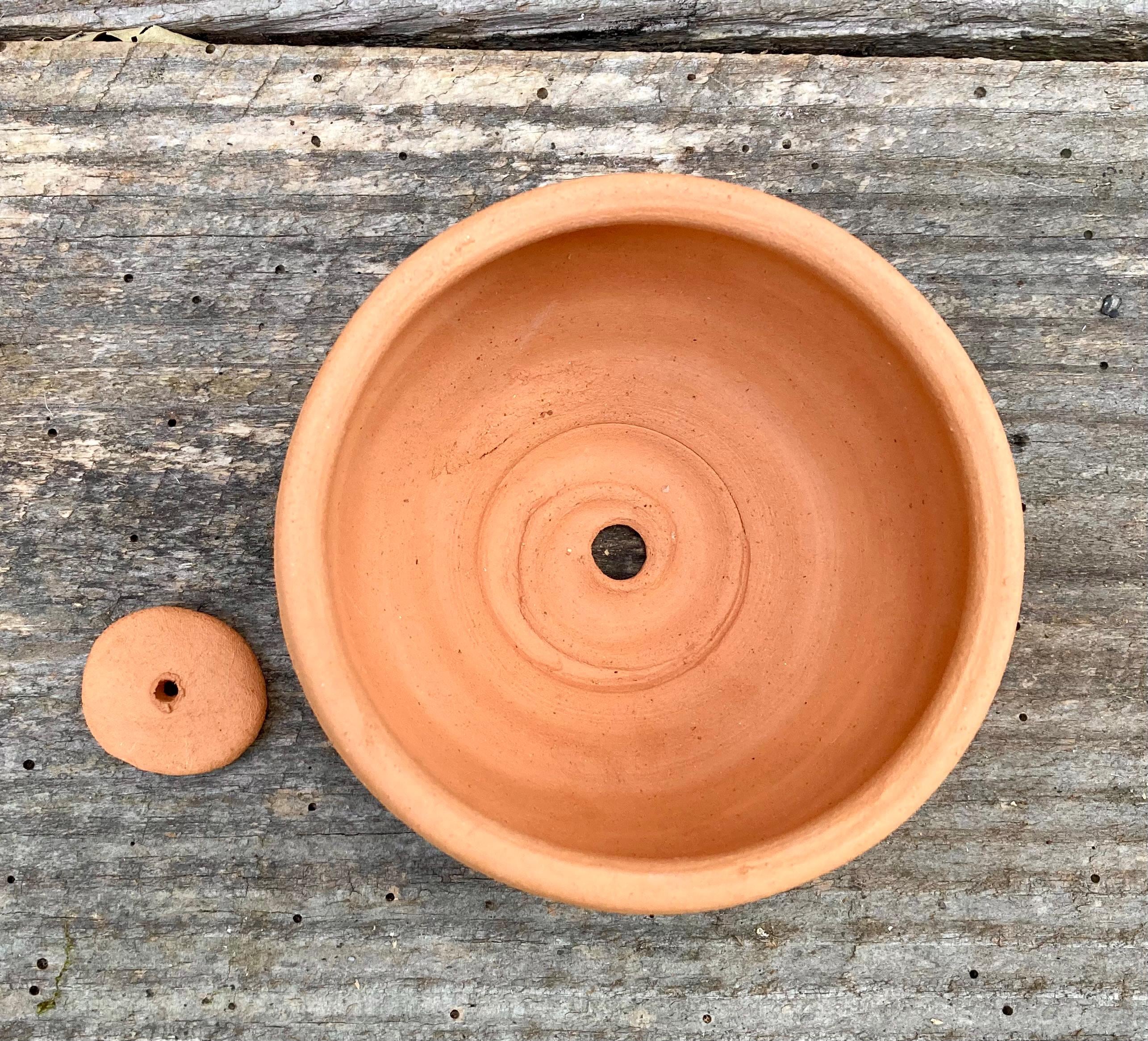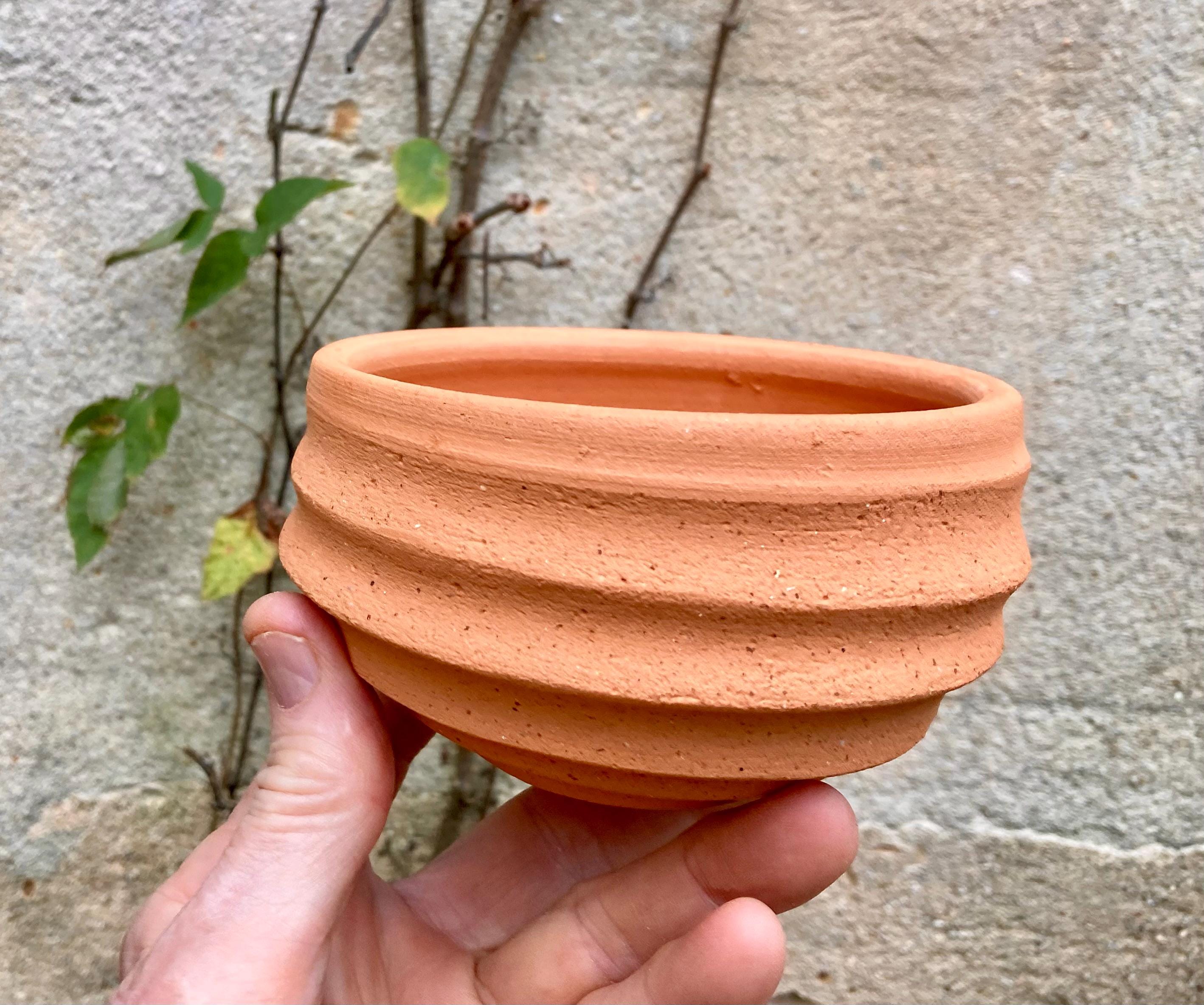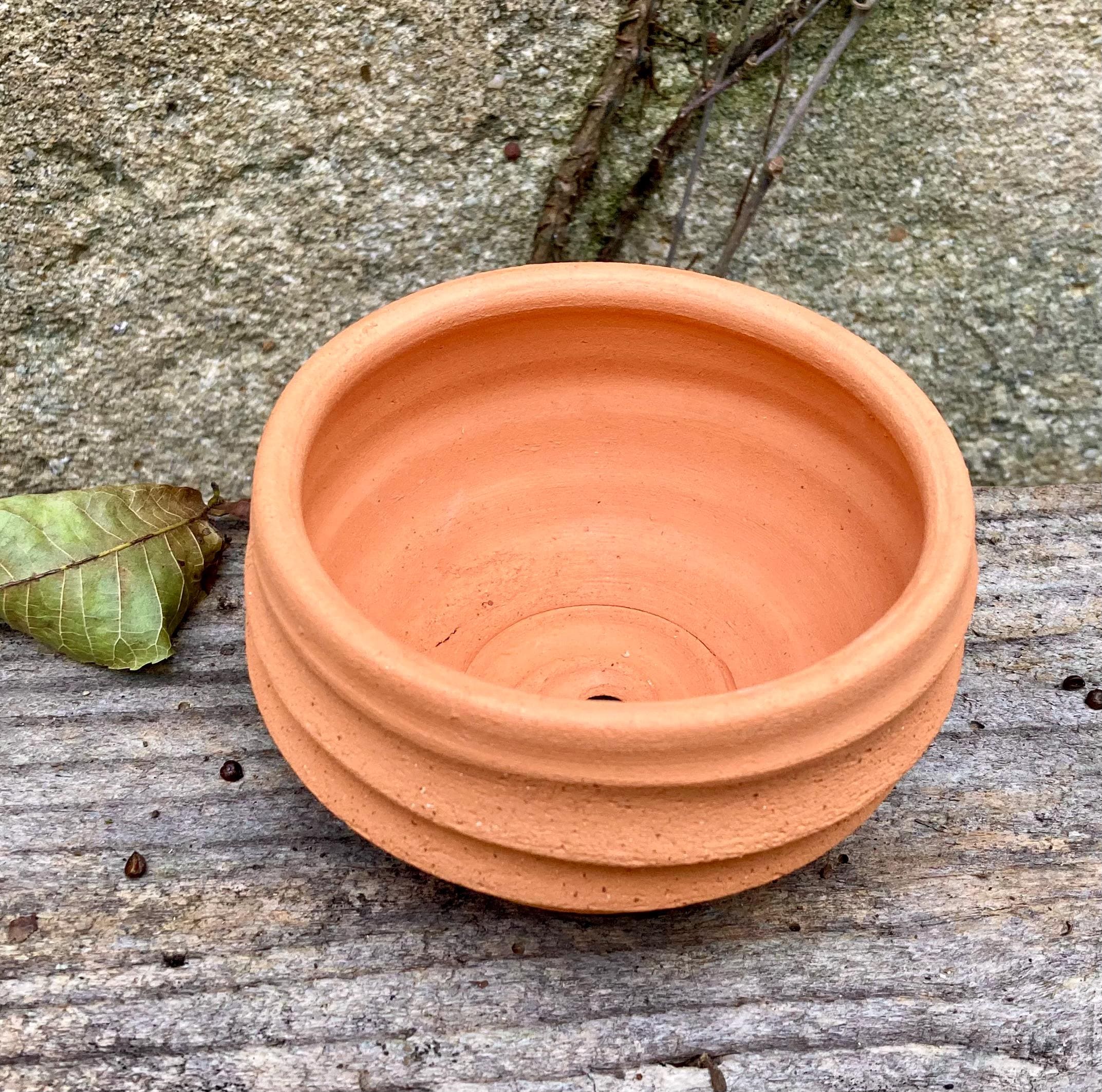 This small, terracotta planter was made of wheel-thrown, locally dug clay that when fired to the right temperature comes out a nice terracotta color and is porous. This allows air and water to flow through the pot which prevents root rot and soil disease.
