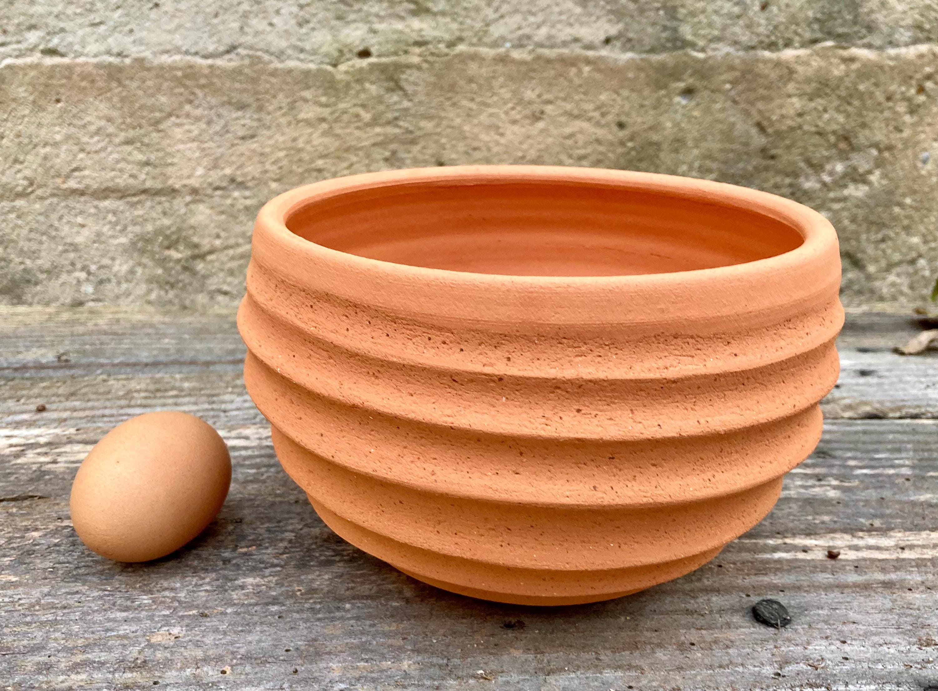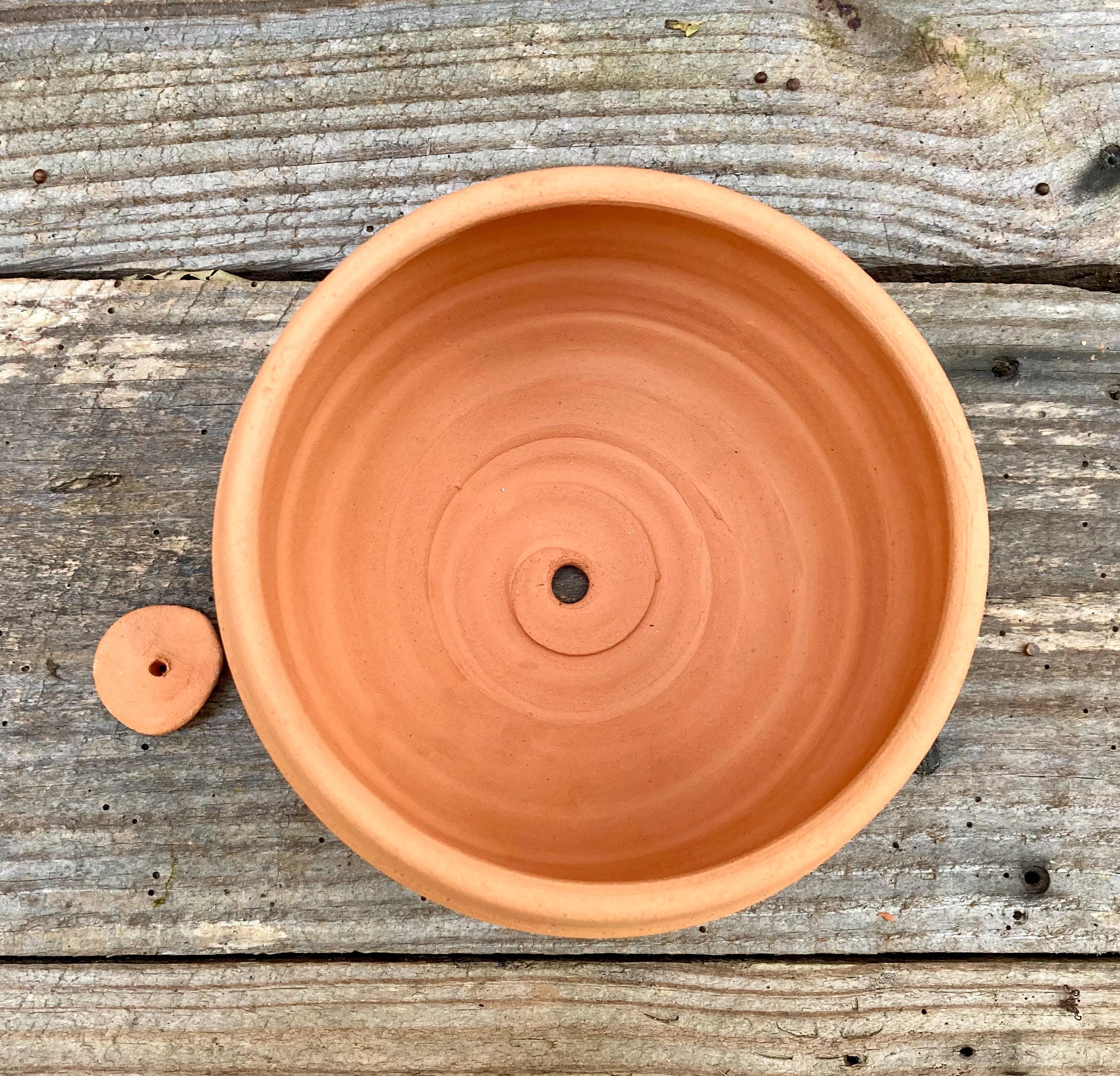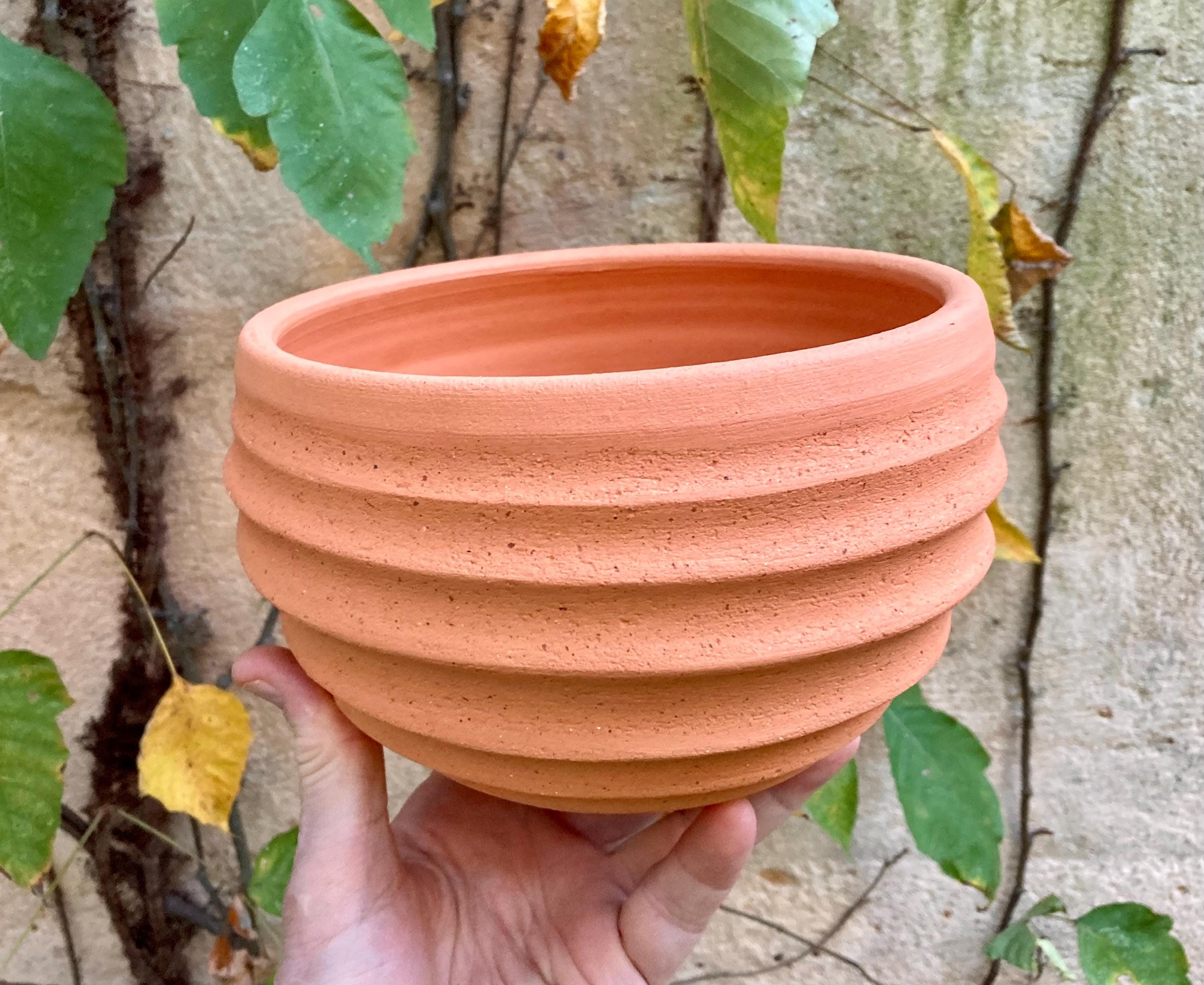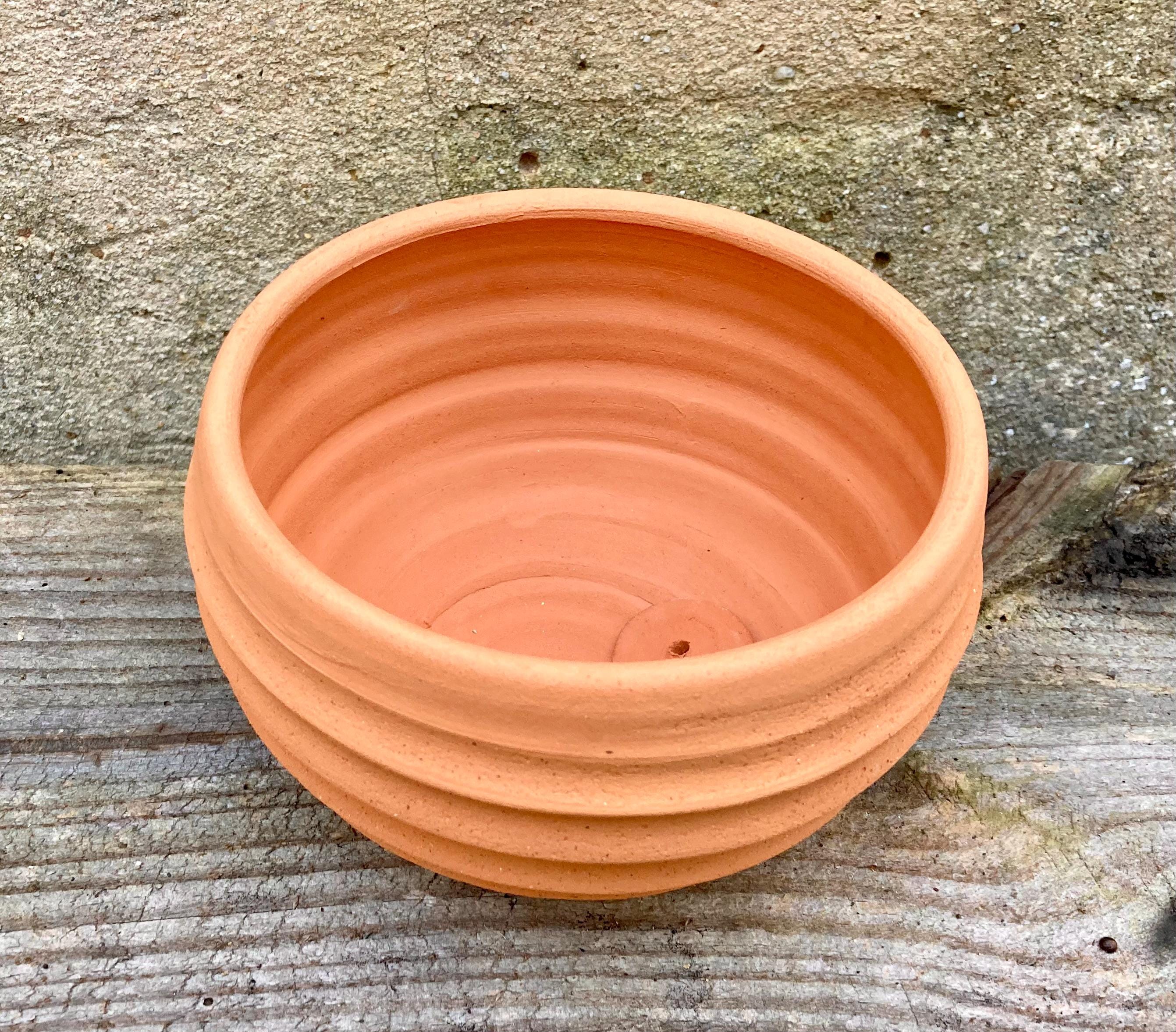 This terracotta planter was made of wheel-thrown, locally dug clay that when fired to the right temperature comes out a nice terracotta color and is porous. This allows air and water to flow through the pot which prevents root rot and soil disease.