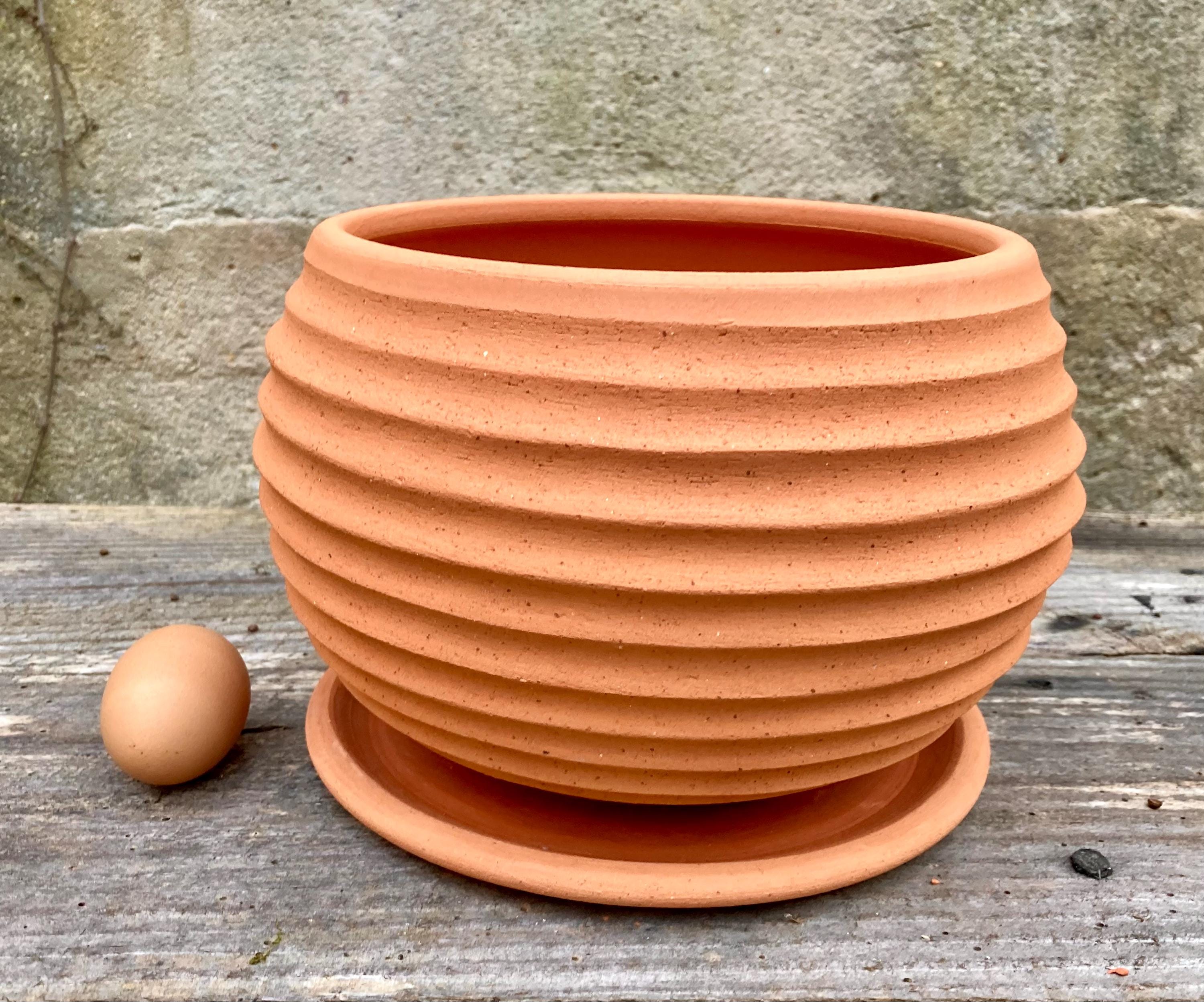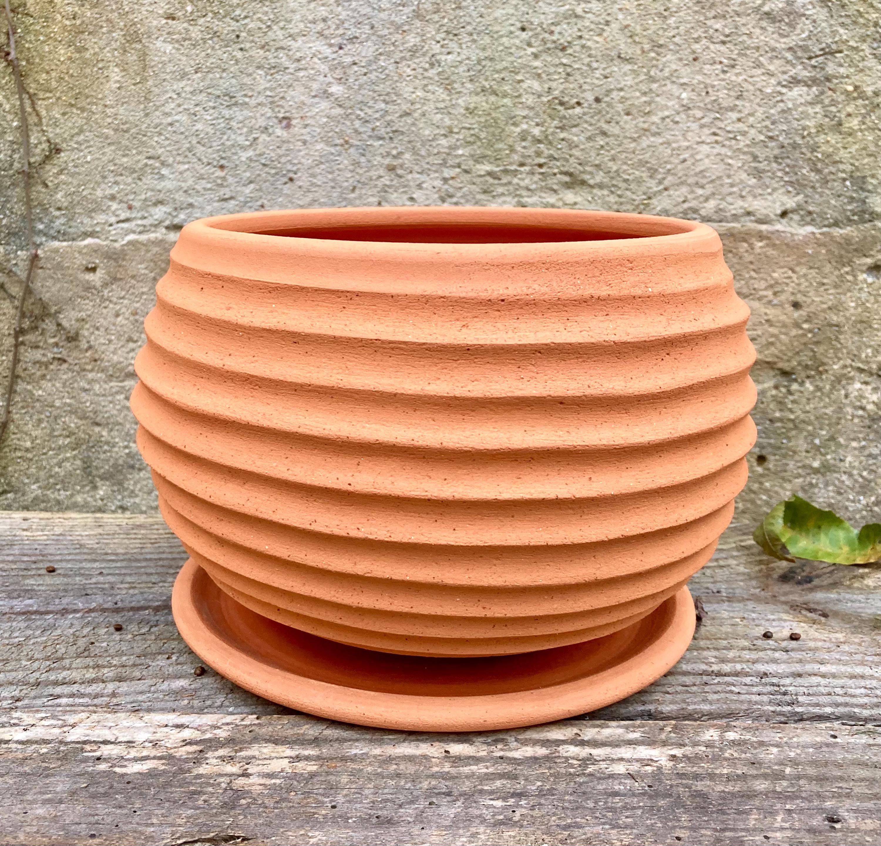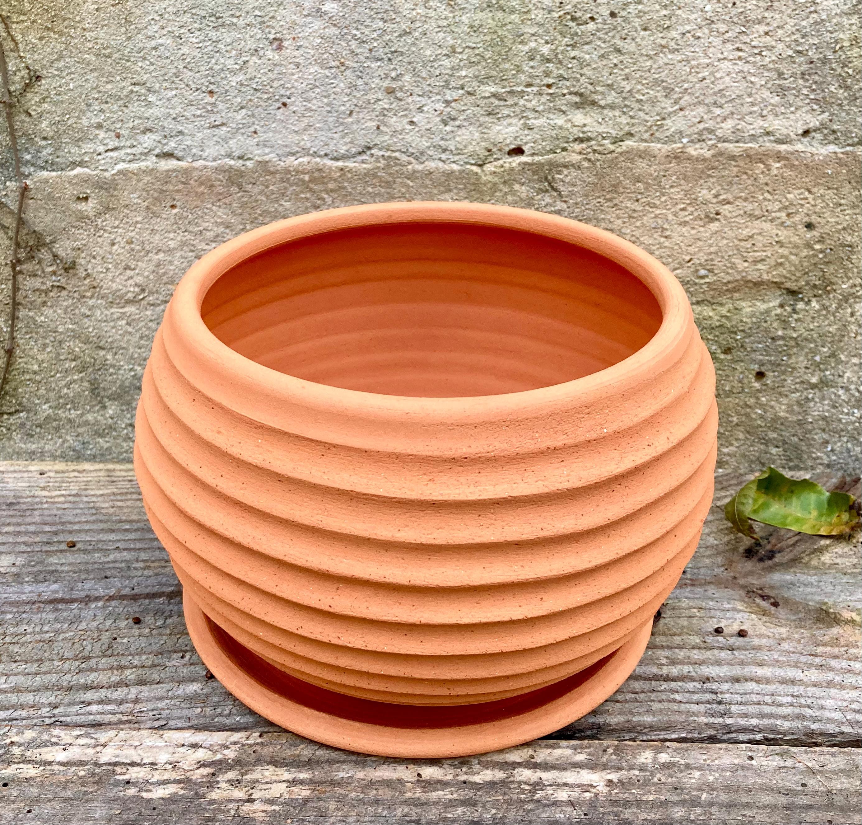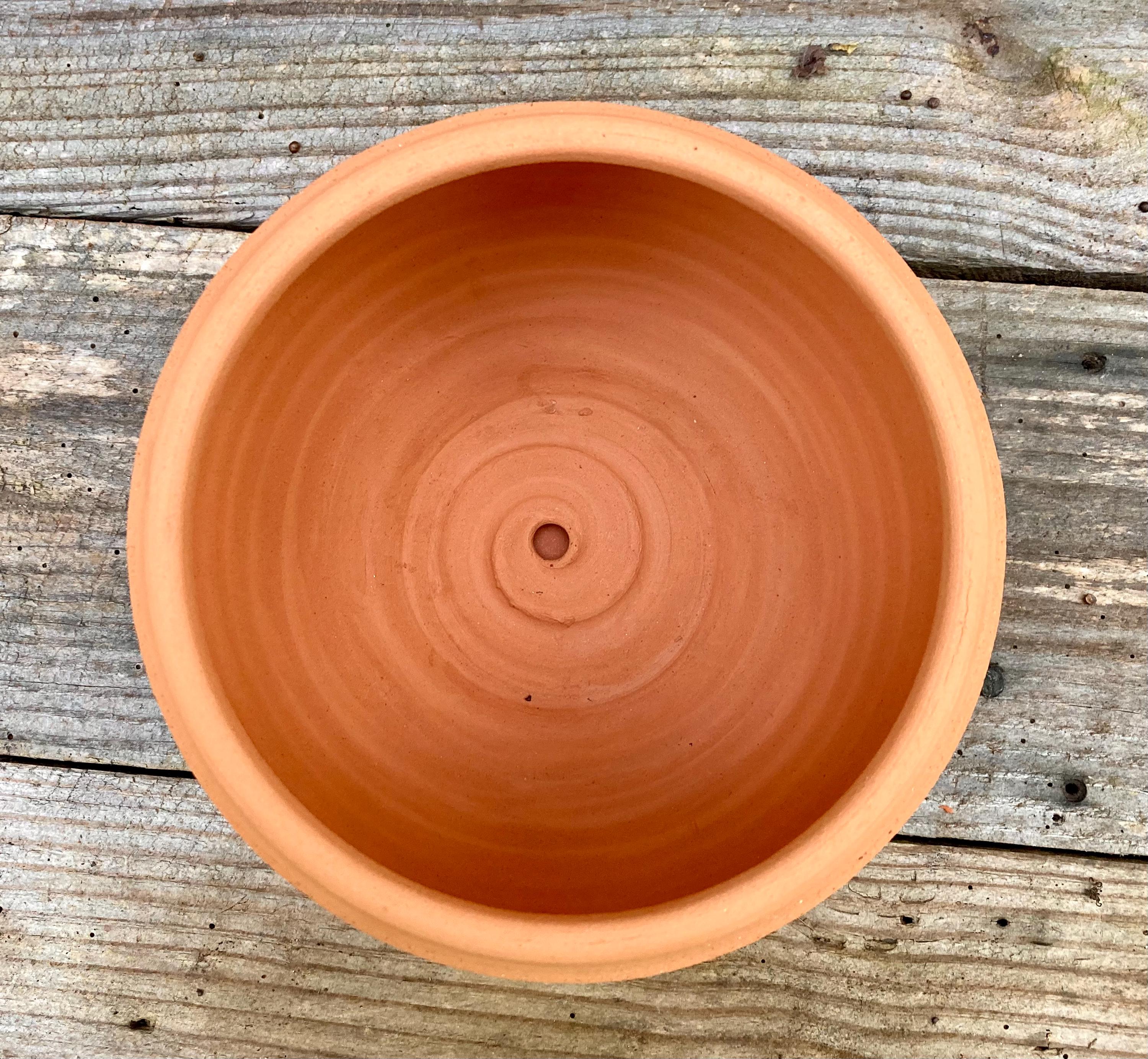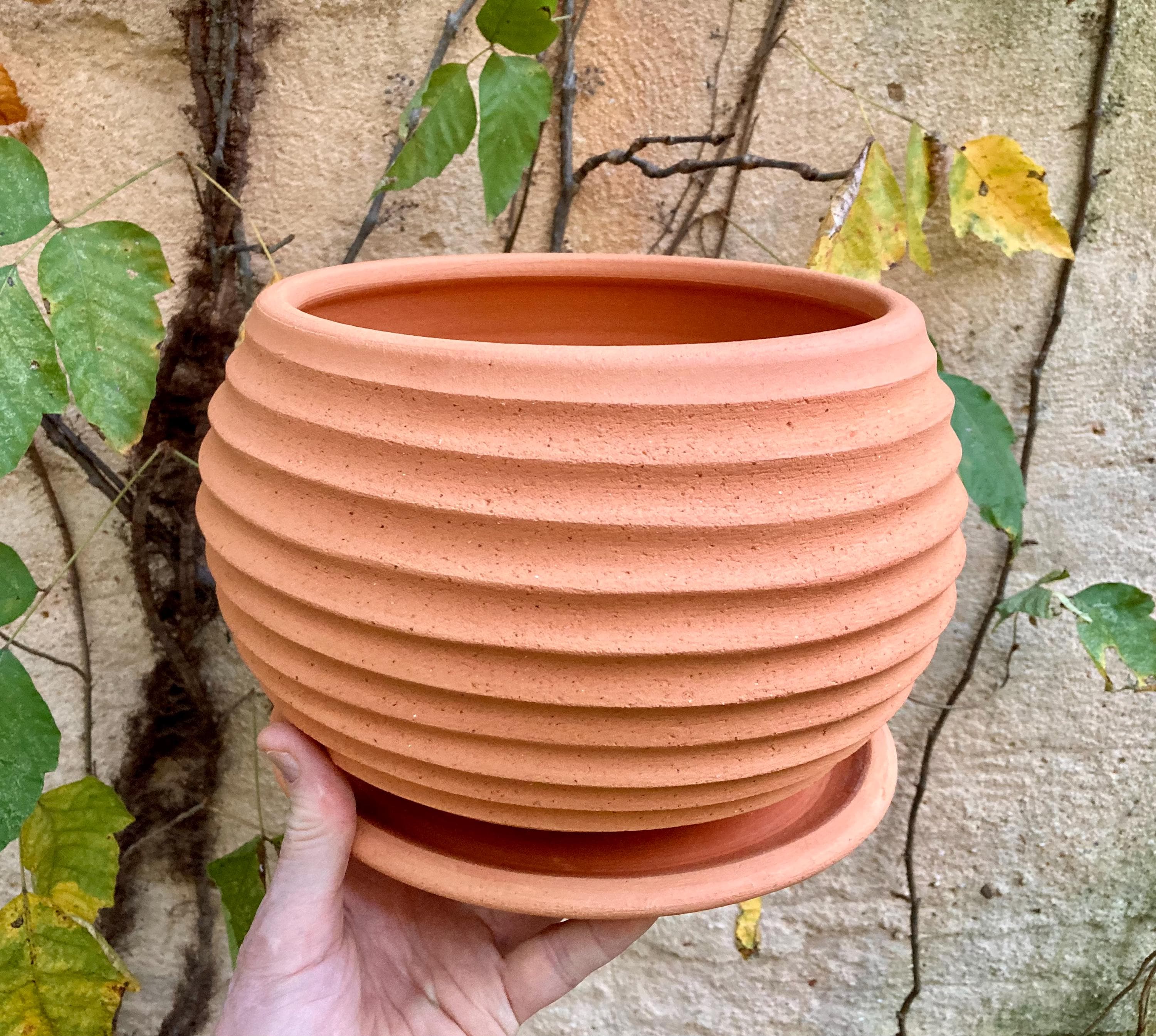 This large, terracotta planter was made of wheel-thrown, locally dug clay that when fired to the right temperature comes out a nice terracotta color and is porous. This allows air and water to flow through the pot which prevents root rot and soil disease.
