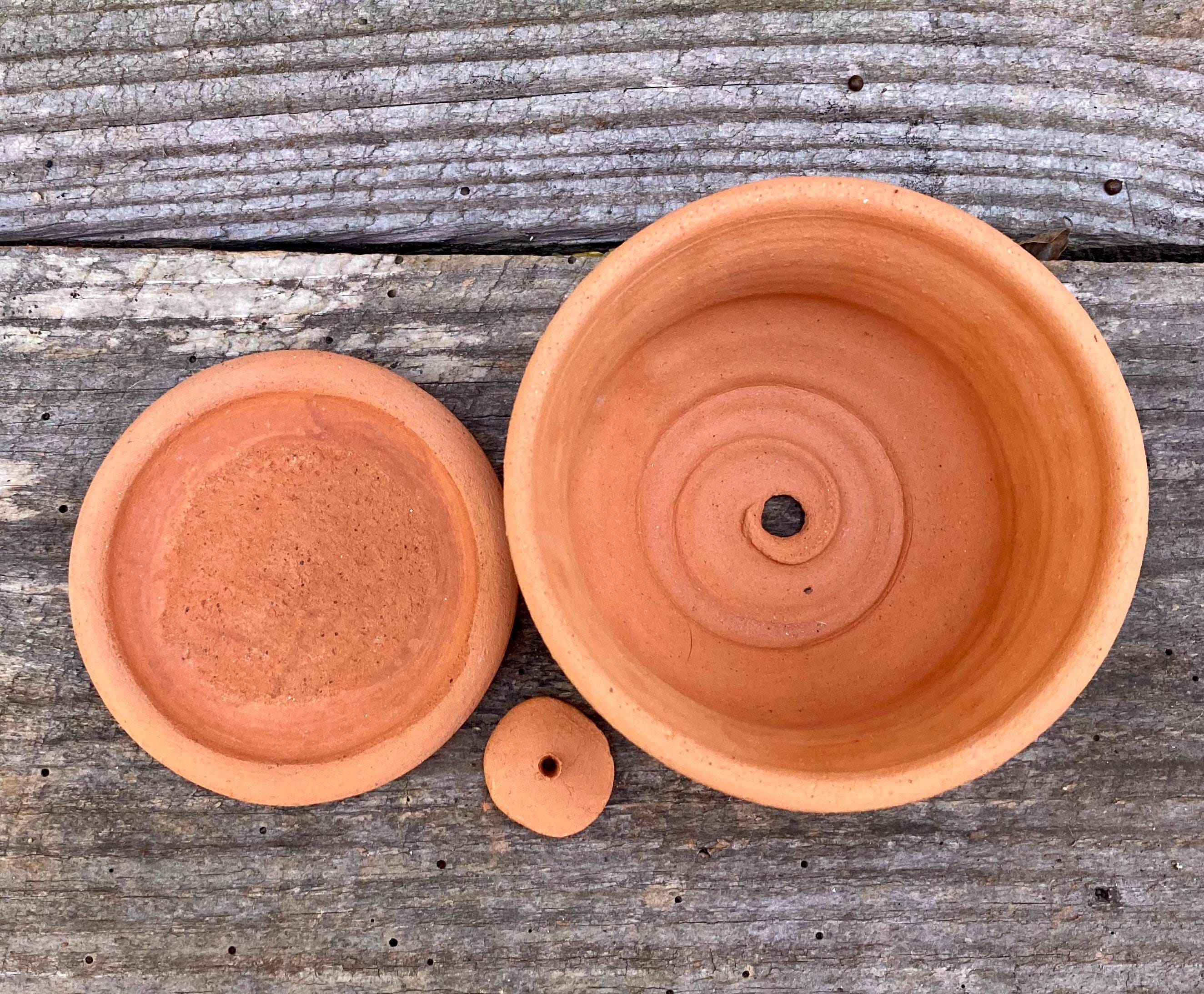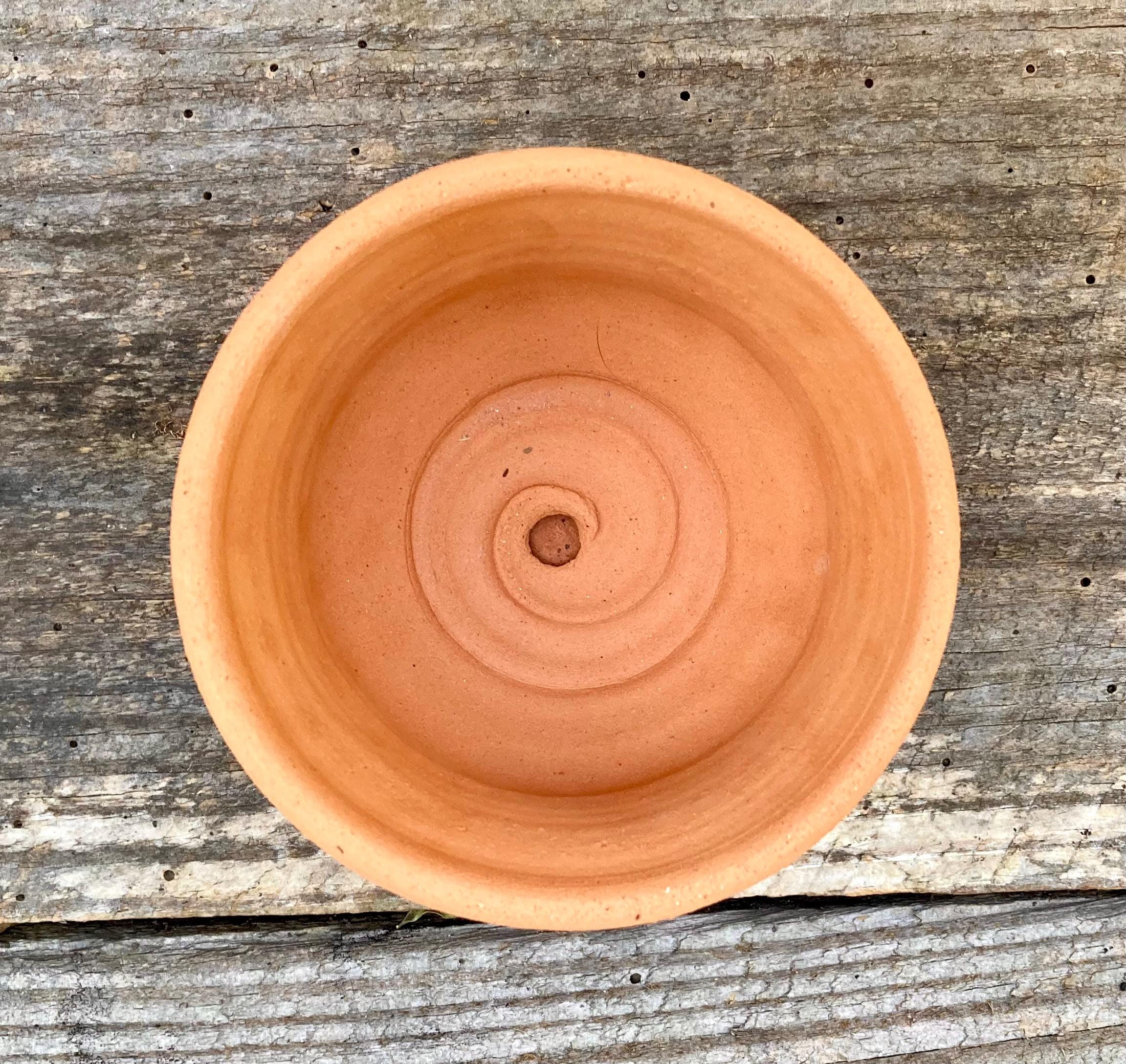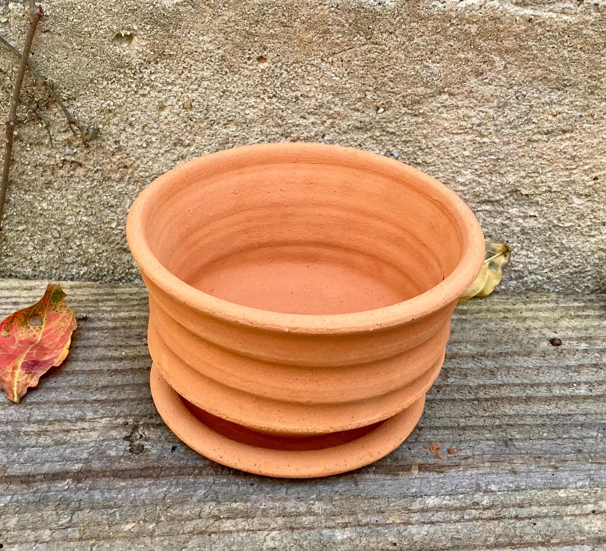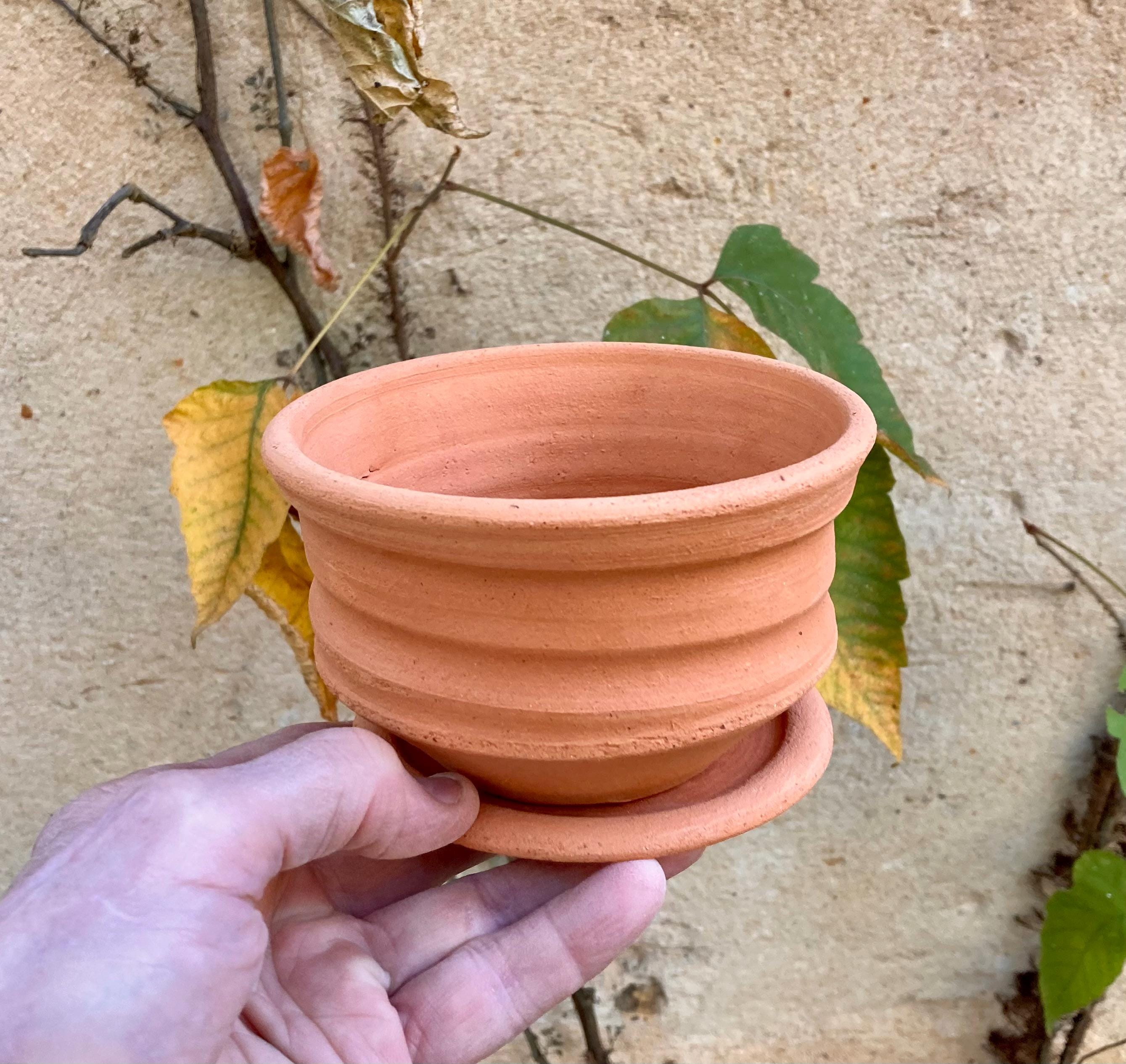 This small, terracotta planter was made of wheel-thrown, locally dug clay that when fired to the right temperature comes out a nice terracotta color and is porous. This allows air and water to flow through the pot which prevents root rot and soil disease.