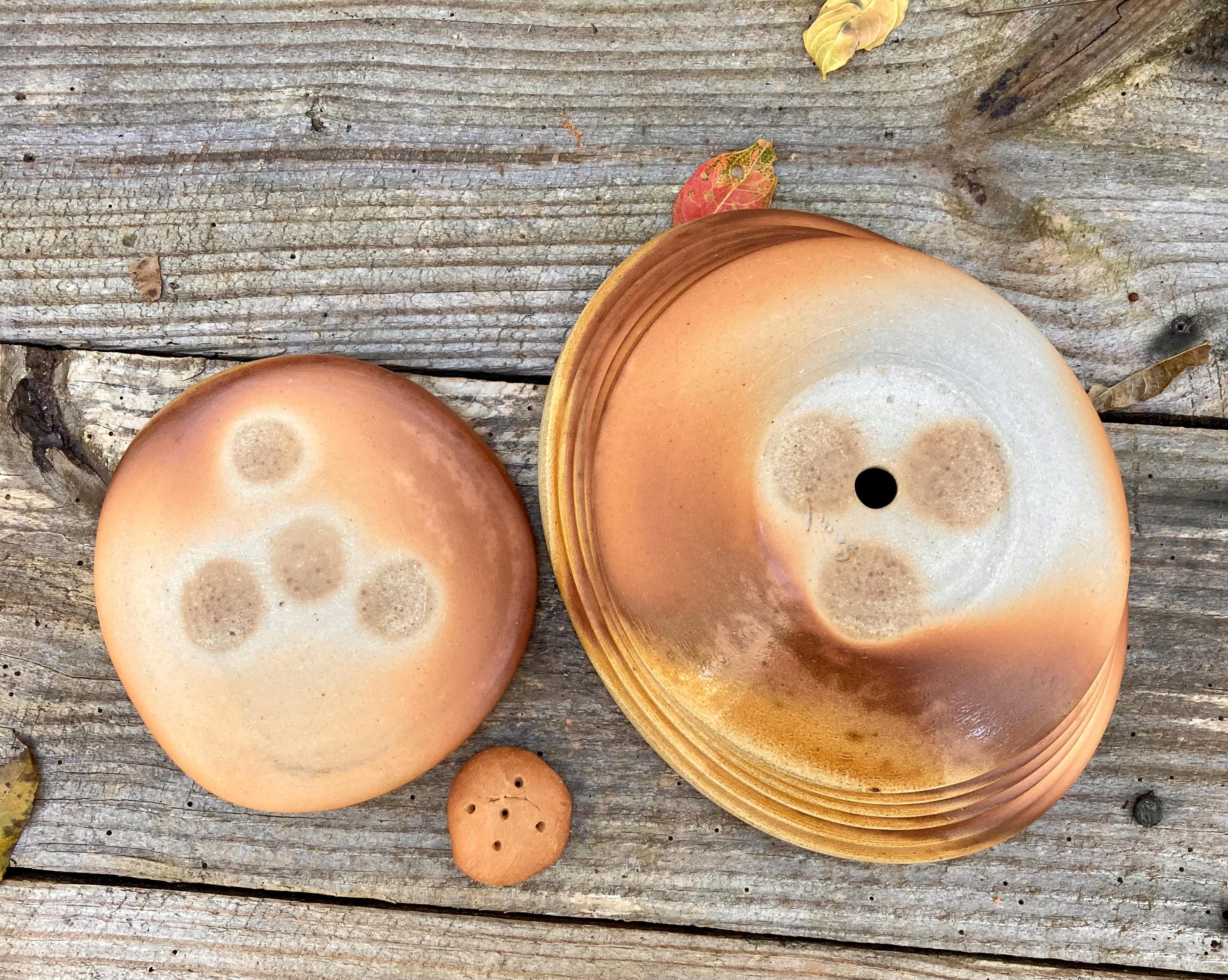 This long, labor-intensive firing gives the flames time to develop the incomparable colors and glaze of a long wood firing. The glazing and color flashing depends on how the flames and ash hit the pot so some parts will have have a shiny, slightly iridescent glaze ("juicy") and other parts will have little or no glaze ("dry") but will have more color variation and will feel satiny to slightly rough instead of glossy.