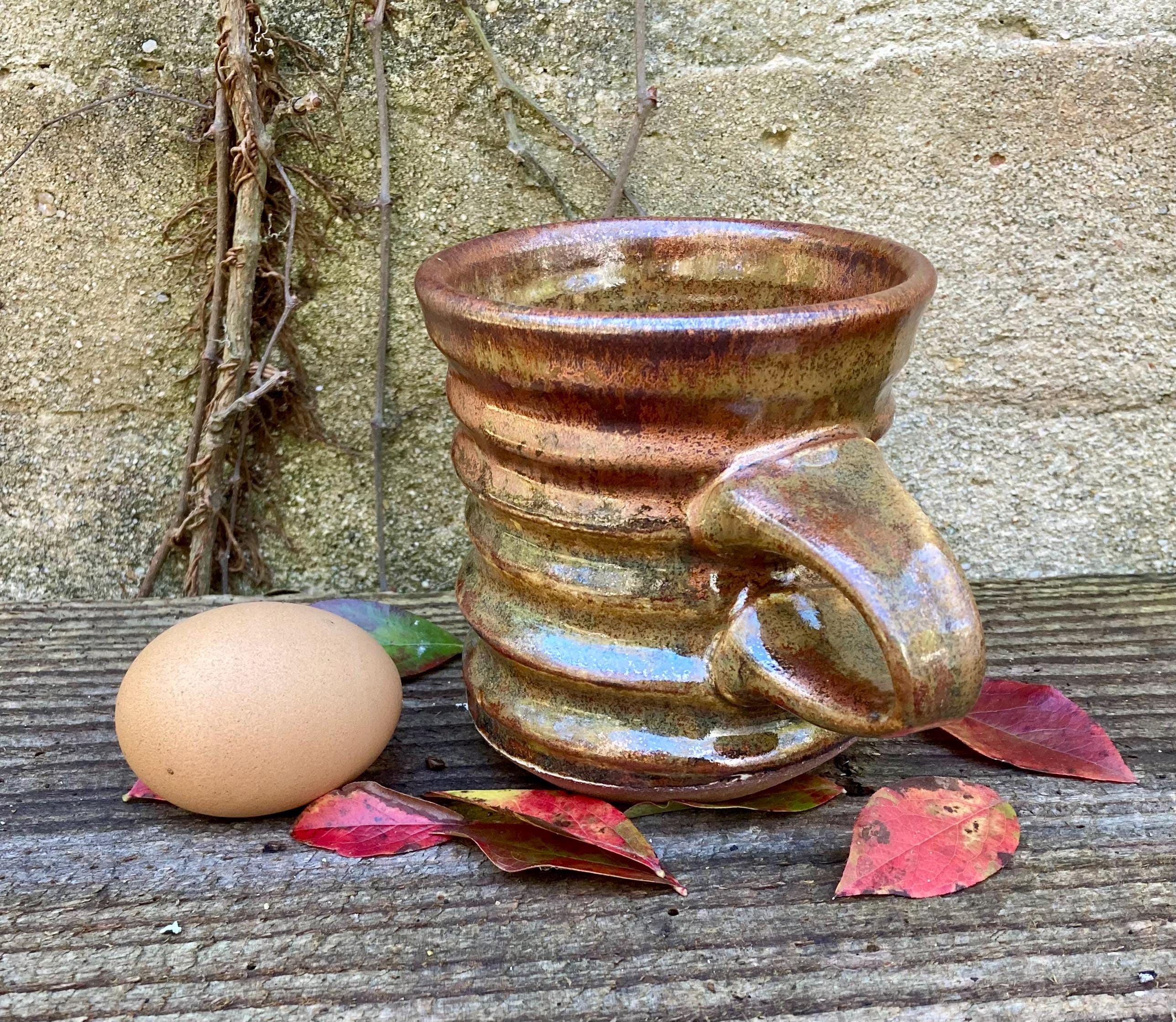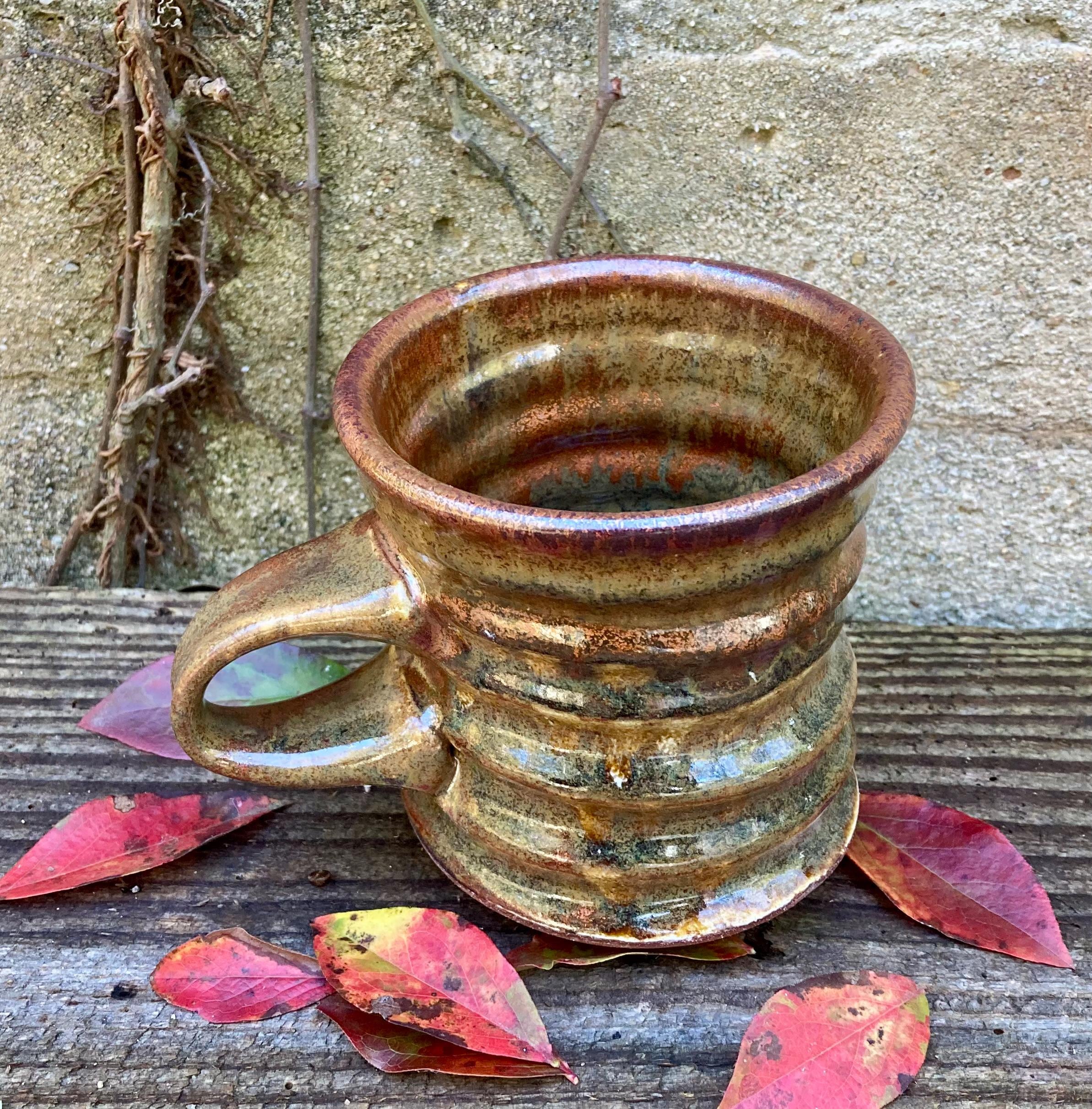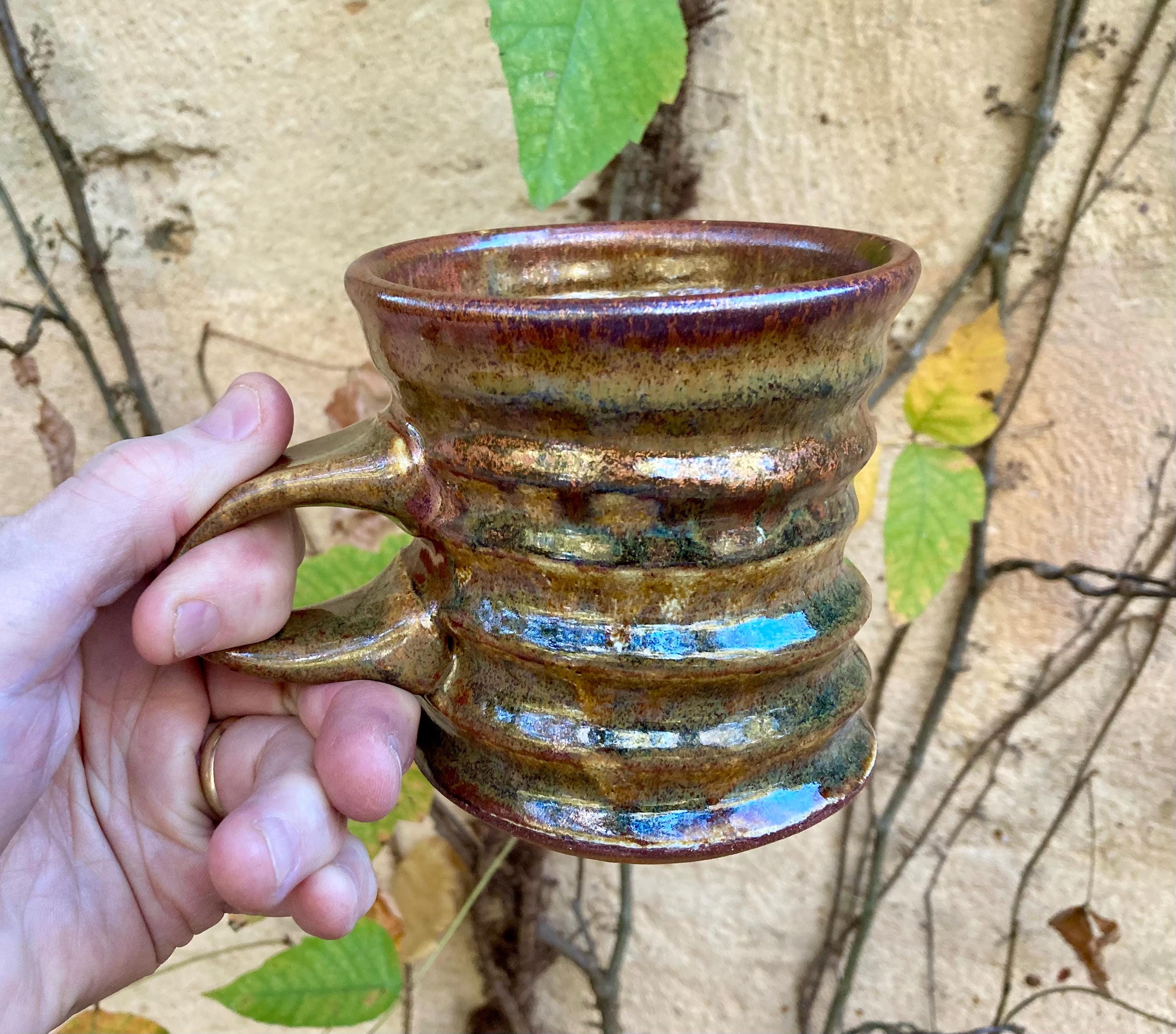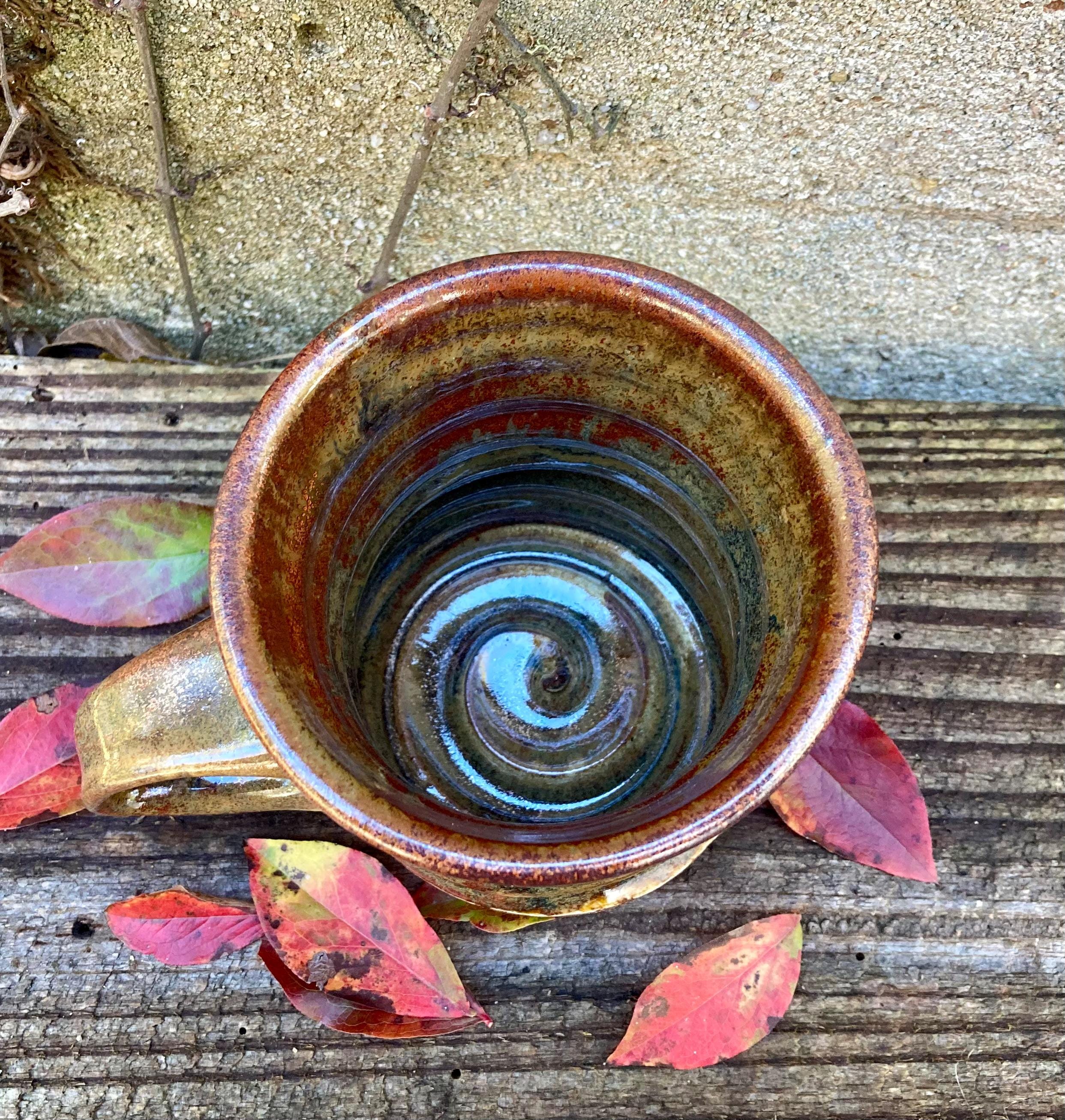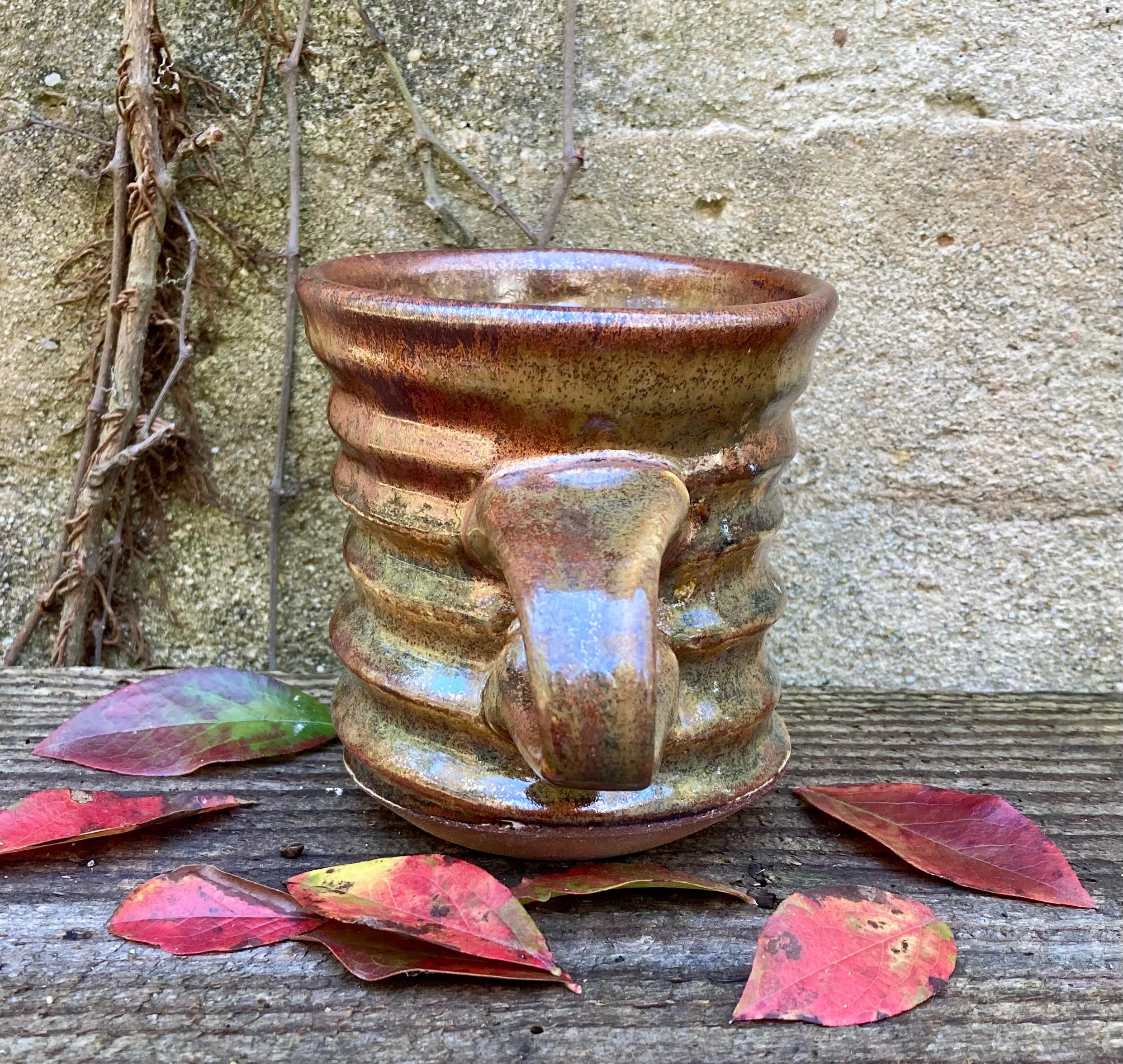 This stoneware coffee mug was wheel-thrown and fired to 2300 degrees for strength and durability. It was slow cooled to give the glaze time to develop depth and variation.