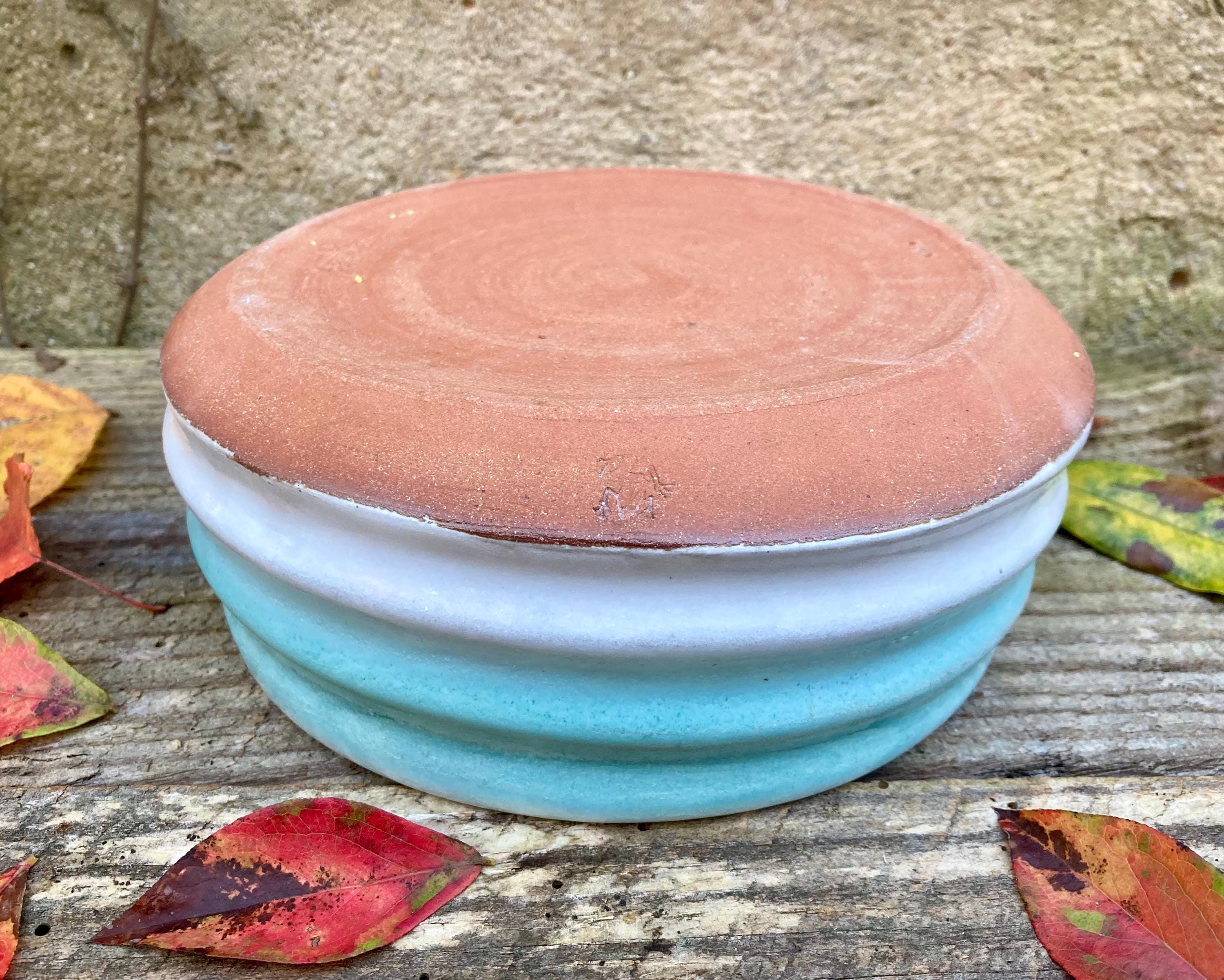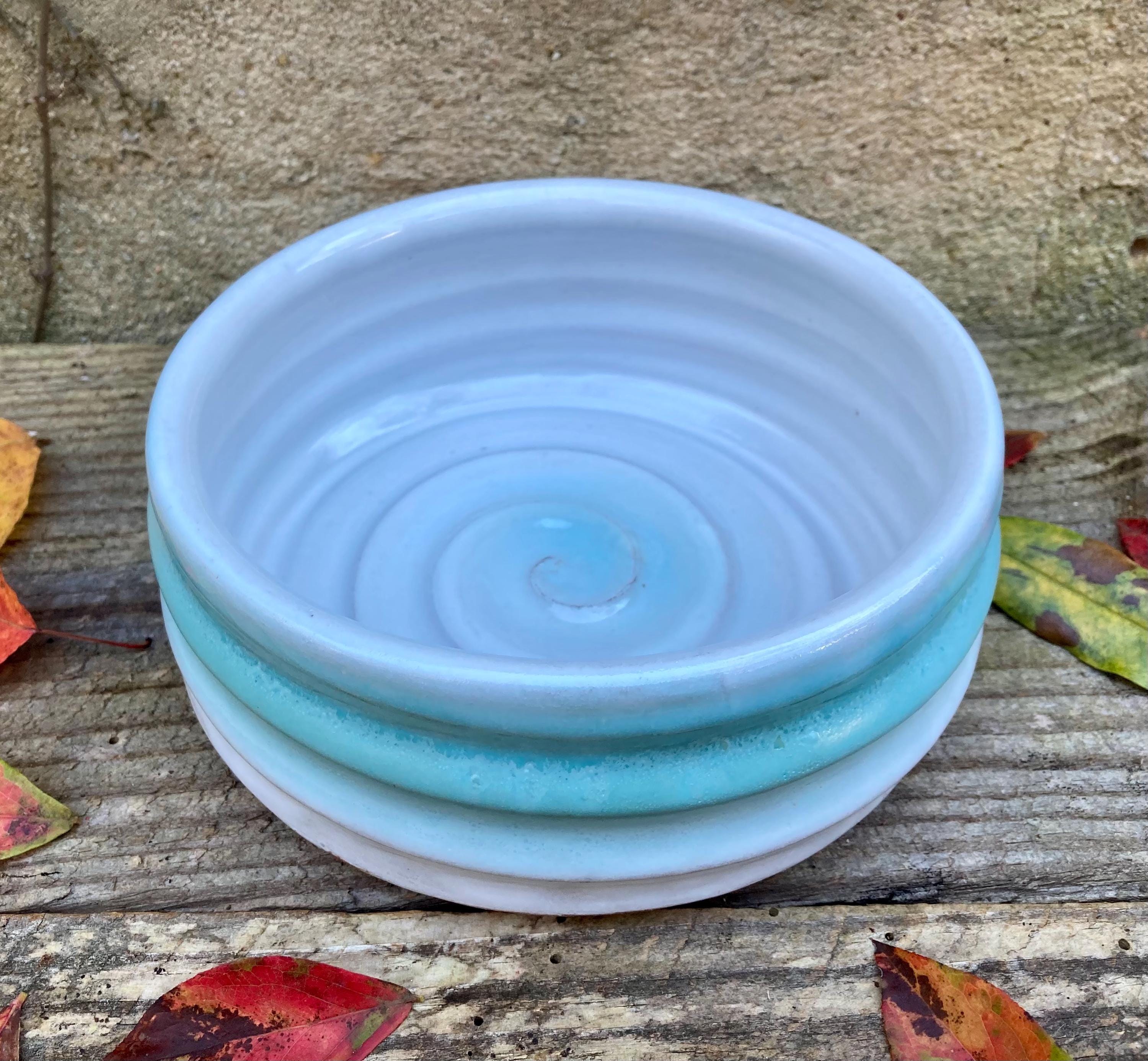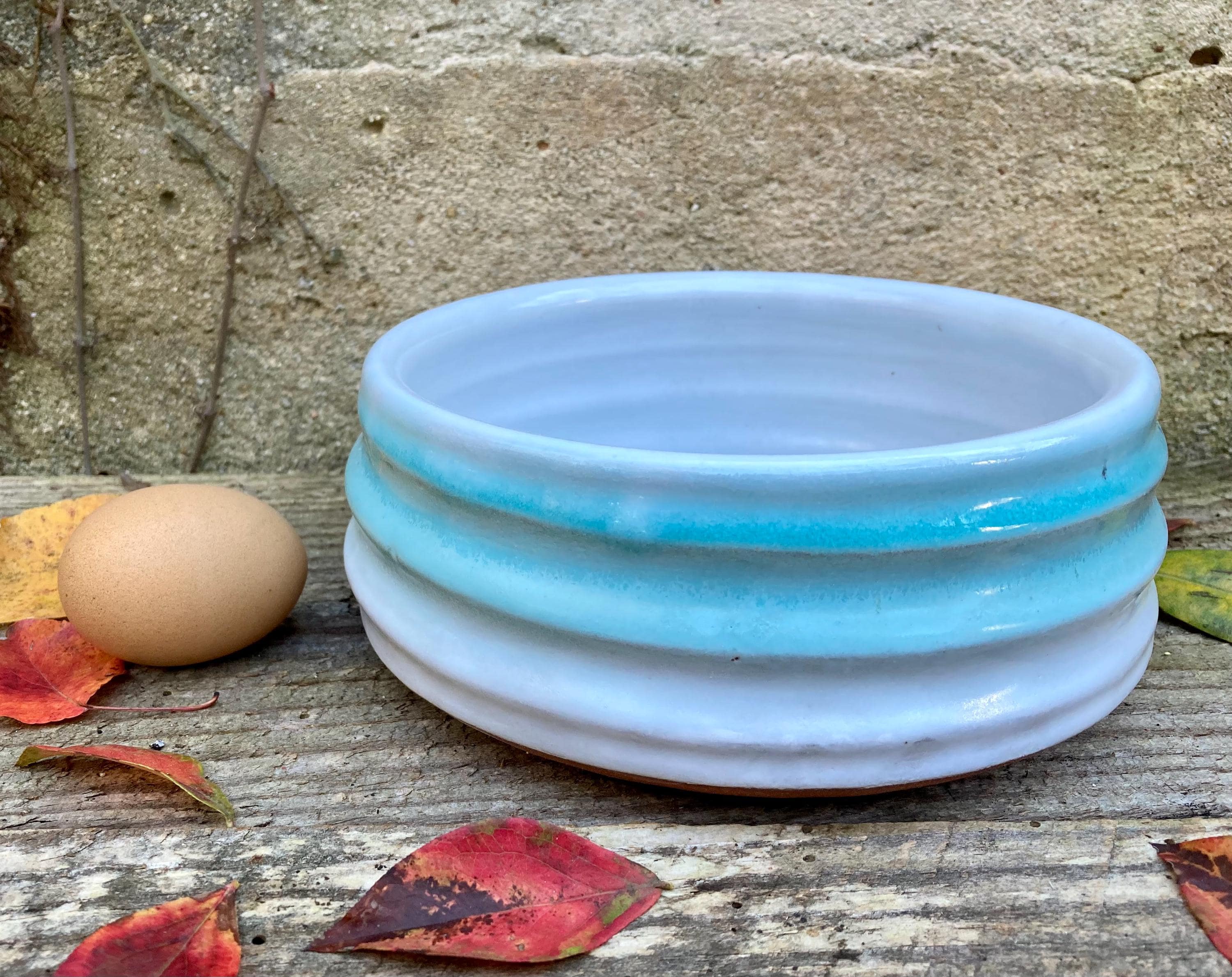 This stoneware dog bowl was wheel-thrown and fired to 2300 degrees for strength and durability. It was slow cooled to give the glazes time to run together and produce great-looking, subtle colors. Heavy enough to make it a little harder to push across the floor. Wider at the bottom so it is almost impossible to turn over. Makes a great water bowl. It also make a good baking and serving dish.
