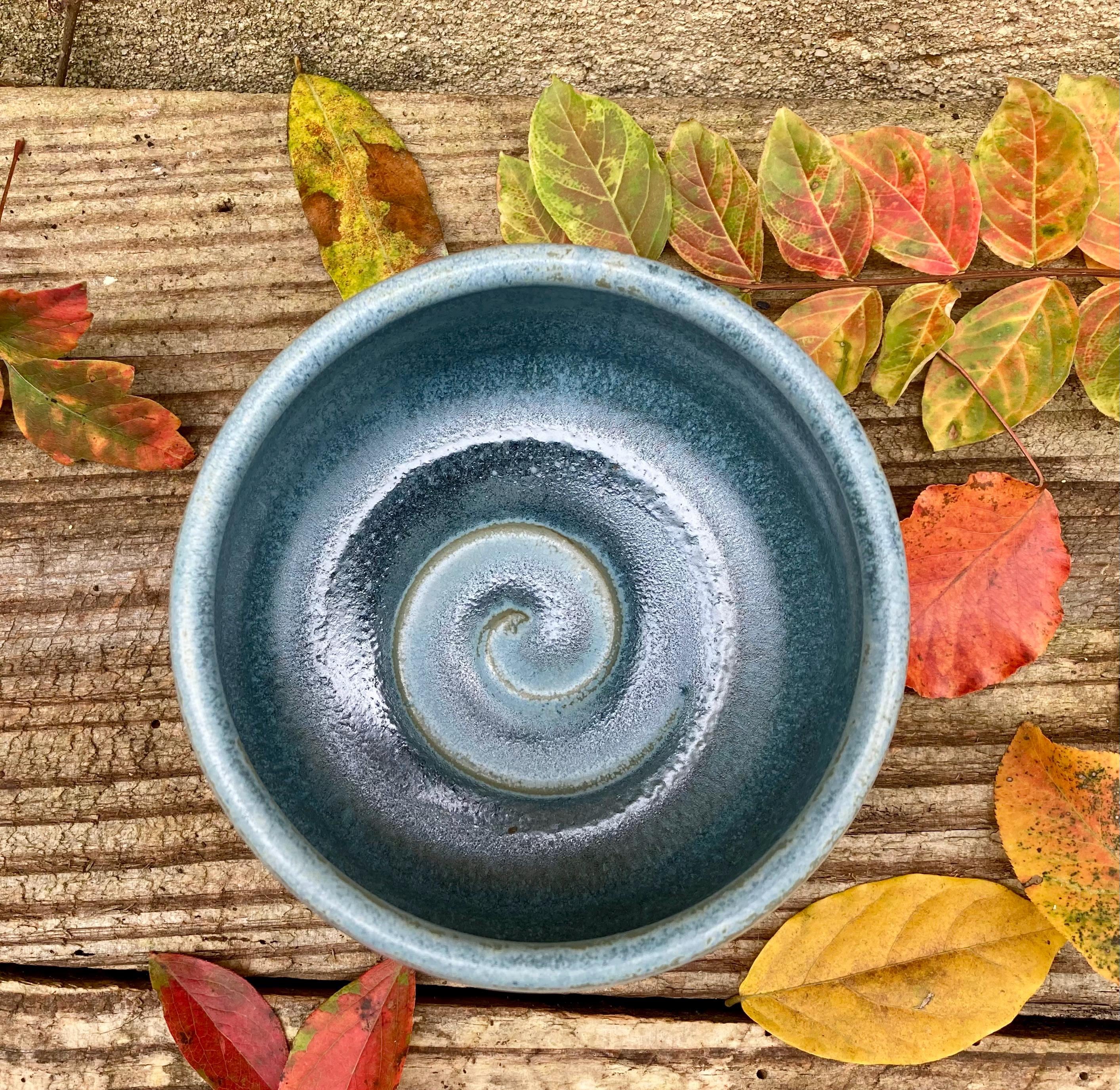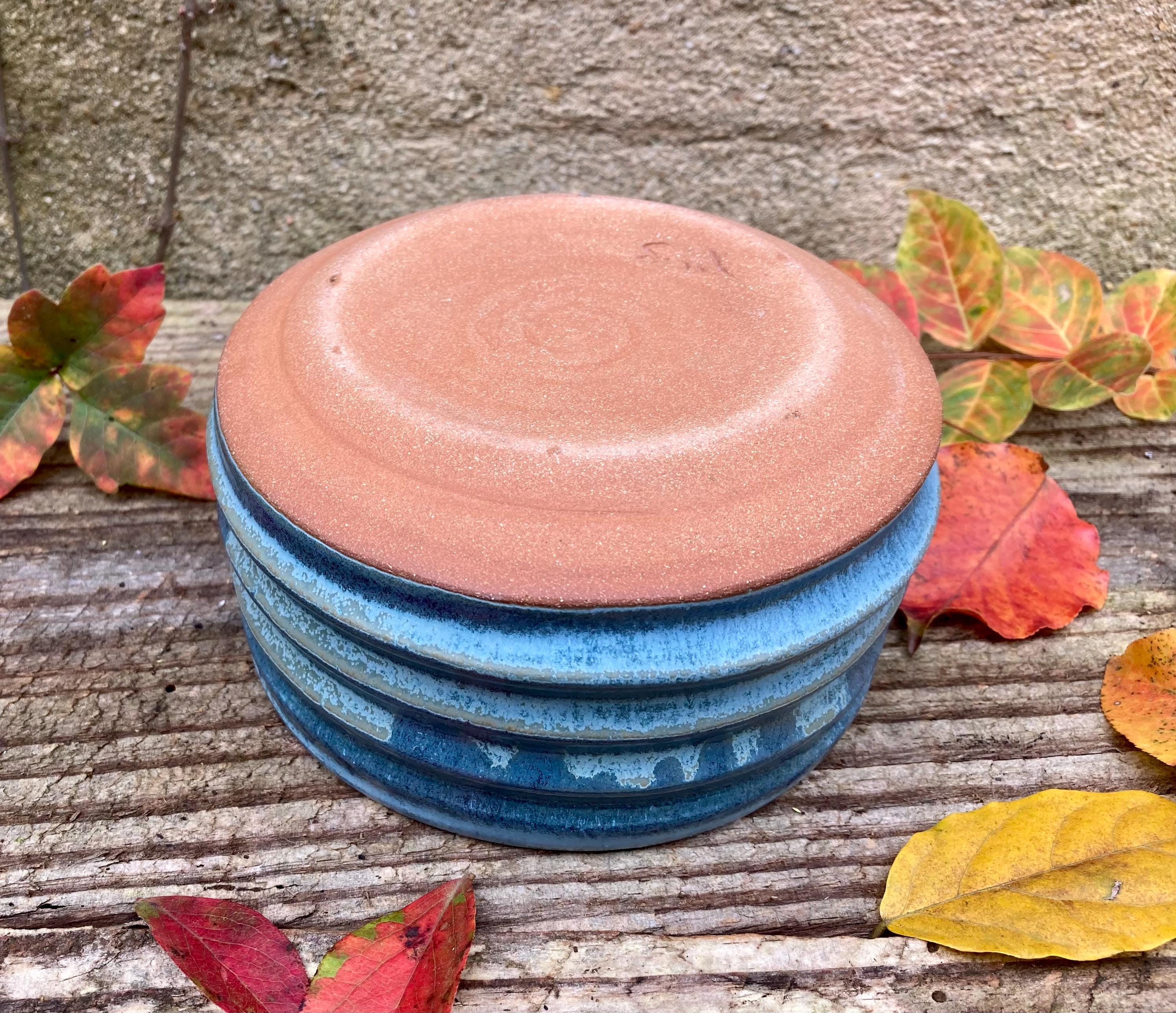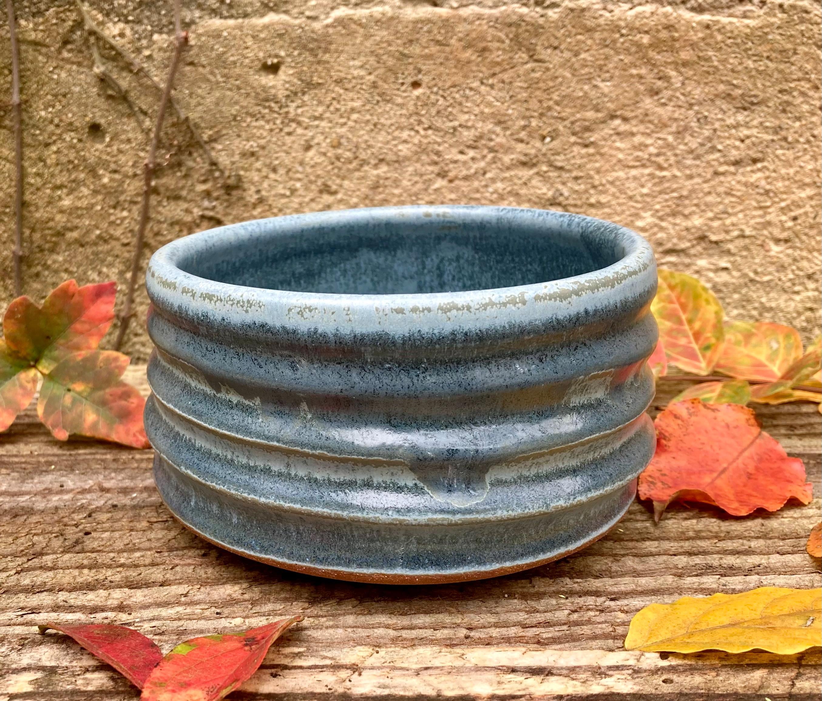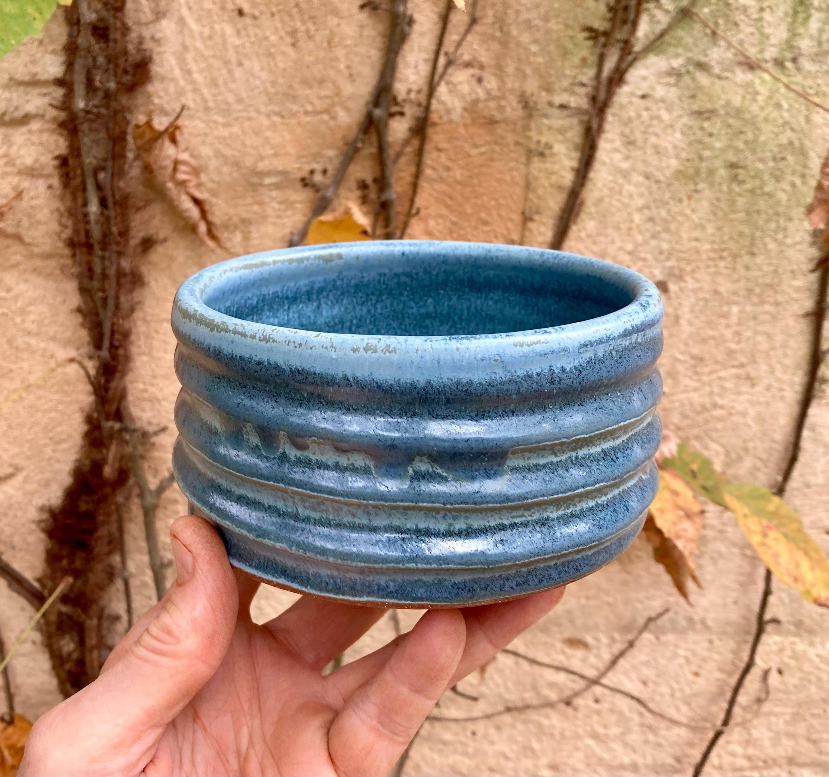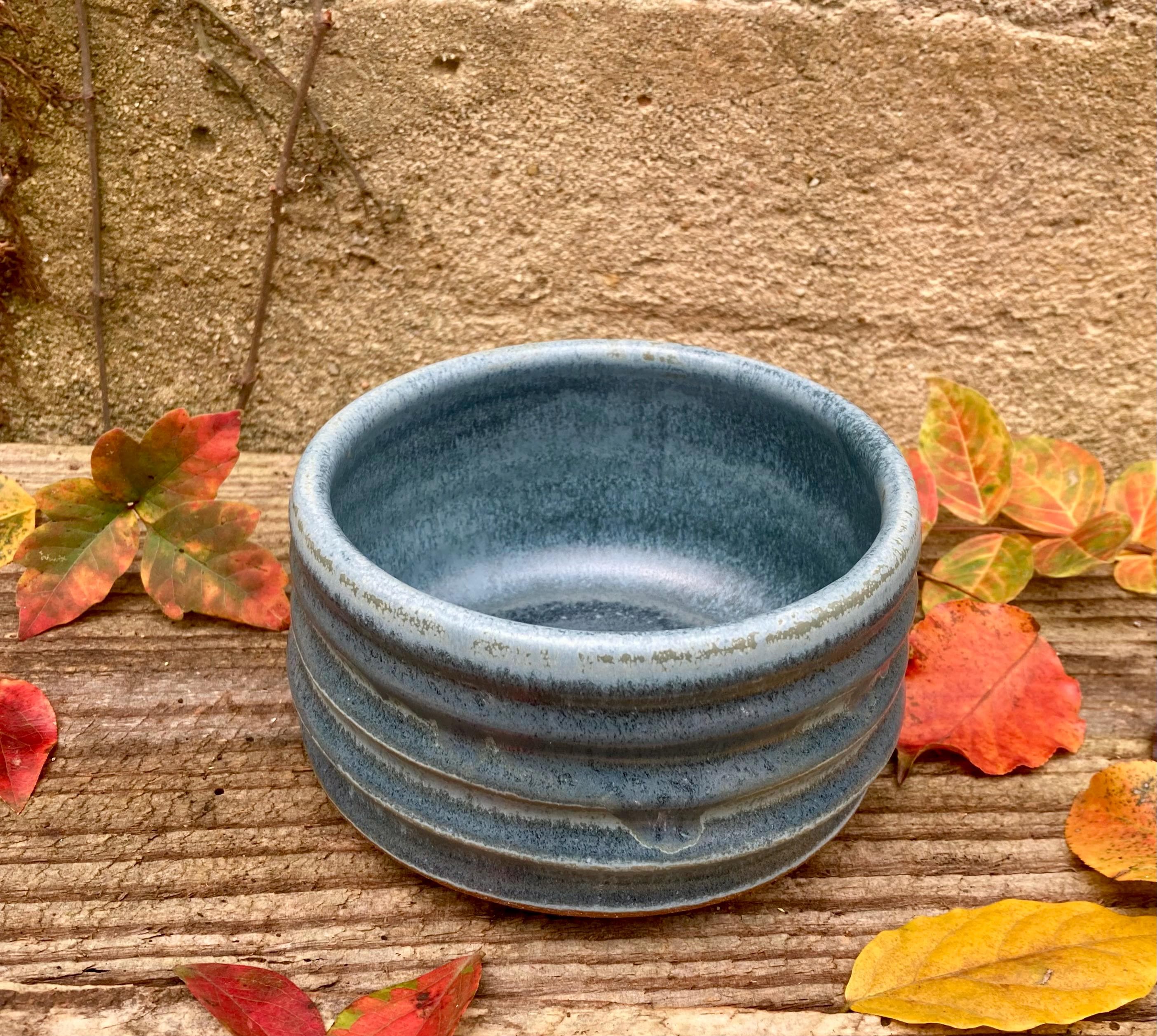 This stoneware dog or cat bowl was wheel-thrown and fired to 2300 degrees for strength and durability. It was slow cooled to give the glazes time to run, pool and develop nice color and patterns. The extra height makes it a good water dish for cats.