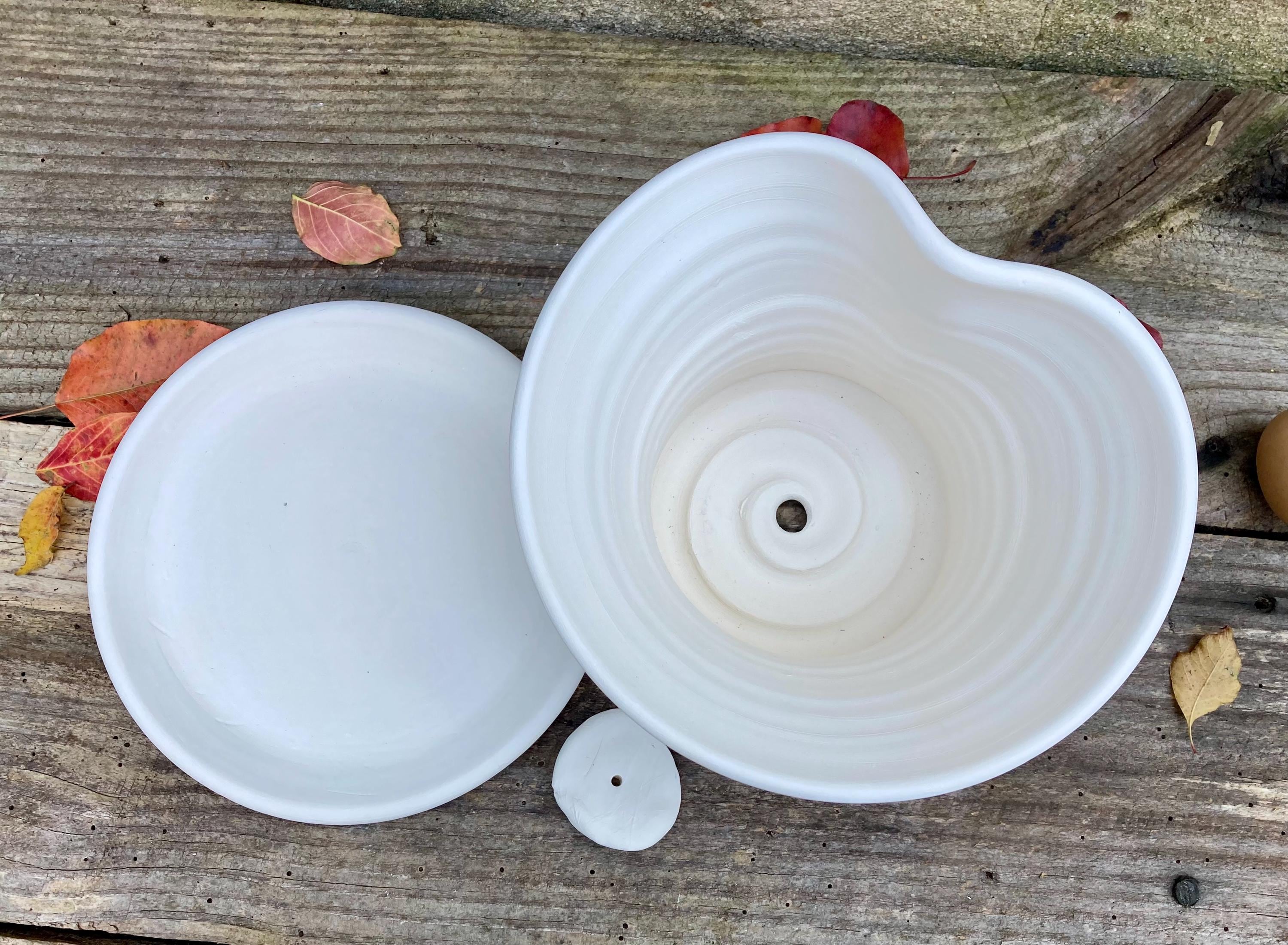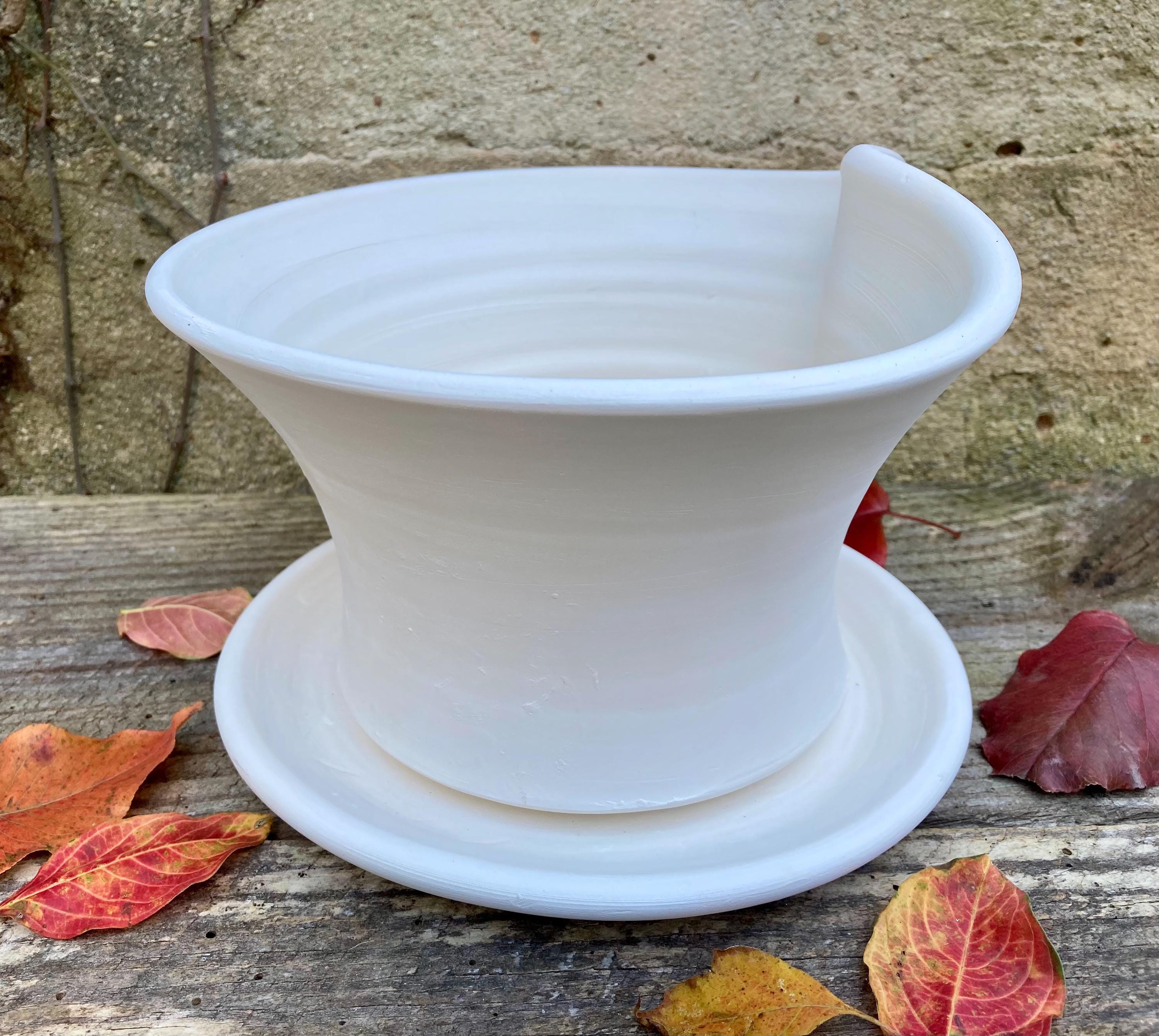 This large planter with saucer was made of white earthenware clay. Like terracotta it is porous. This allows air and water to flow through the pot which prevents root rot and soil disease.