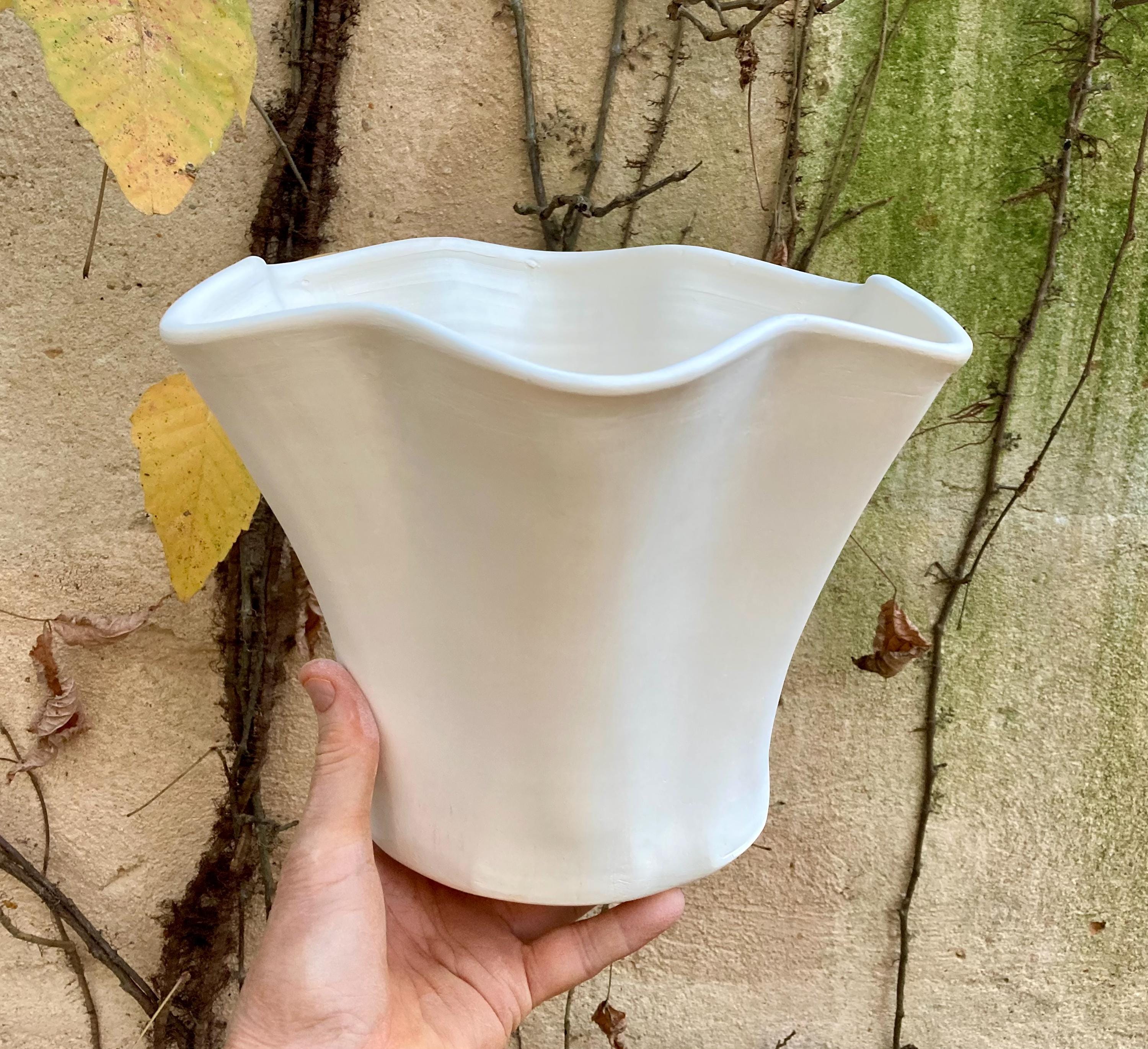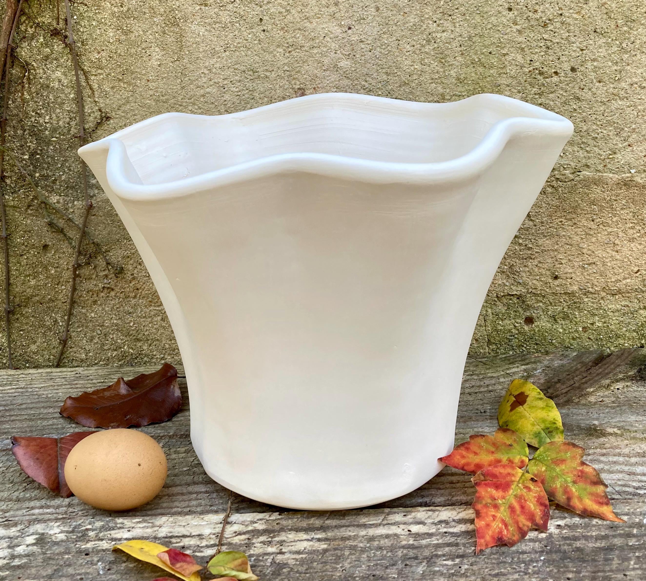 This large planter was made of white earthenware clay. Like terracotta it is porous. This allows air and water to flow through the pot which prevents root rot and soil disease.