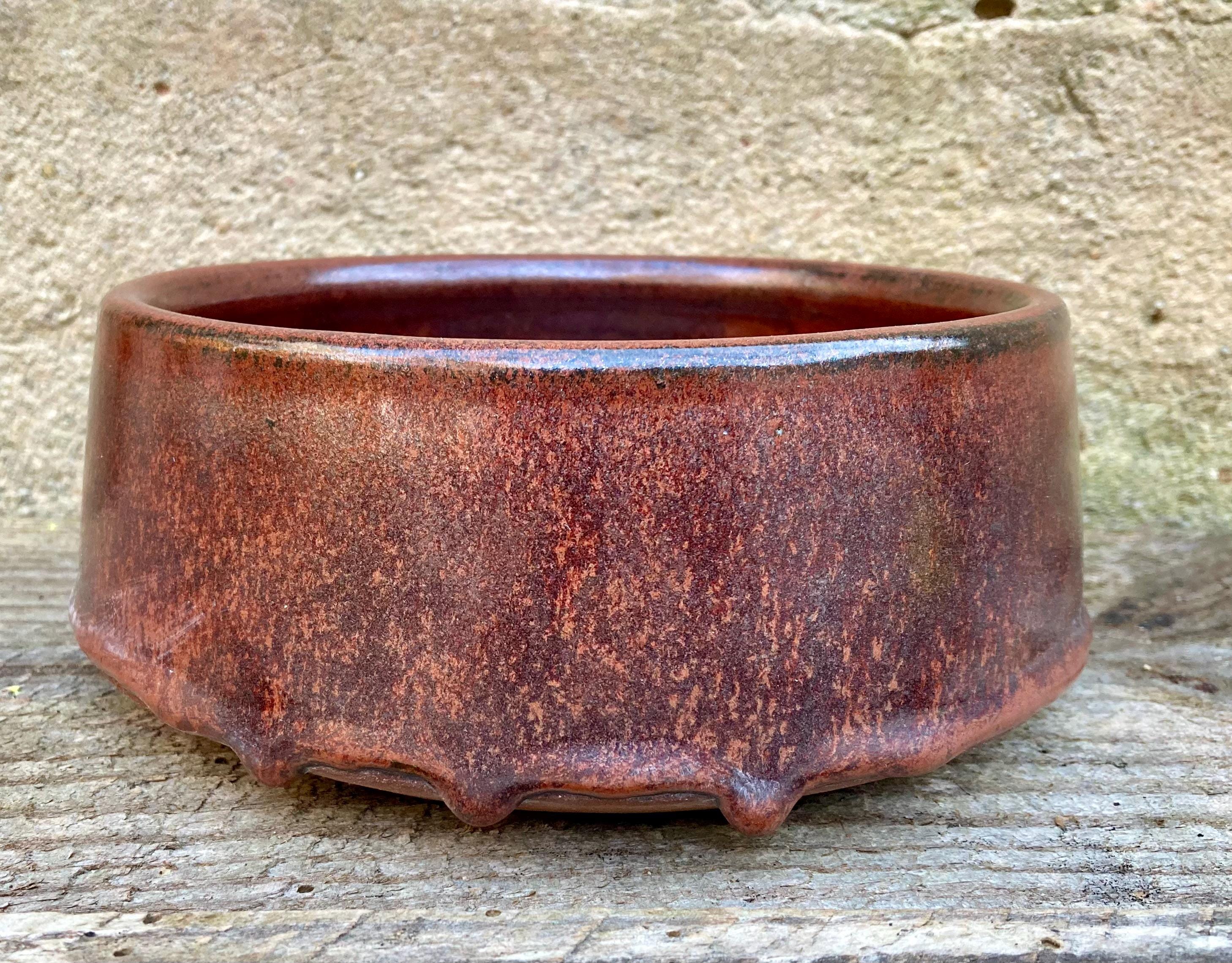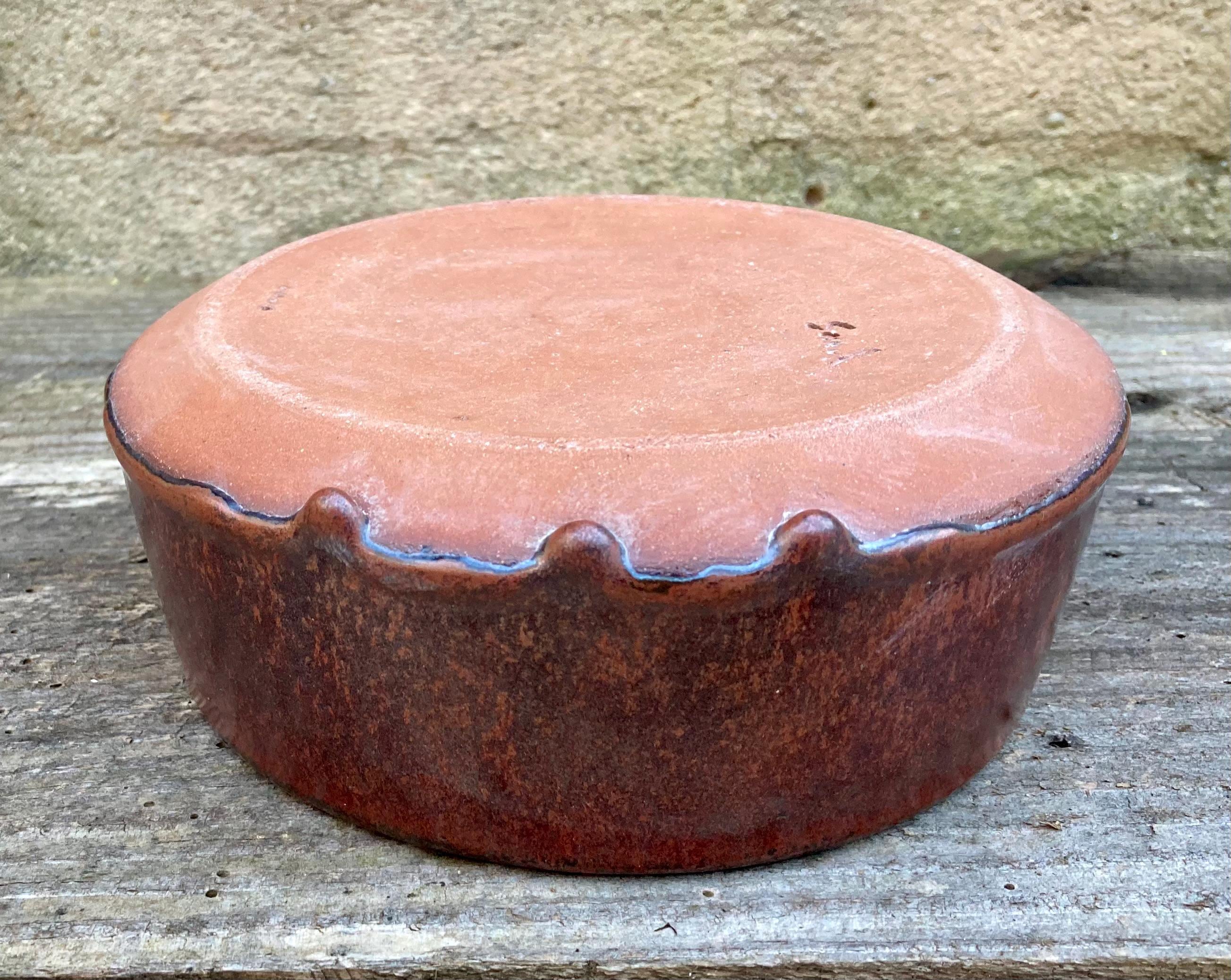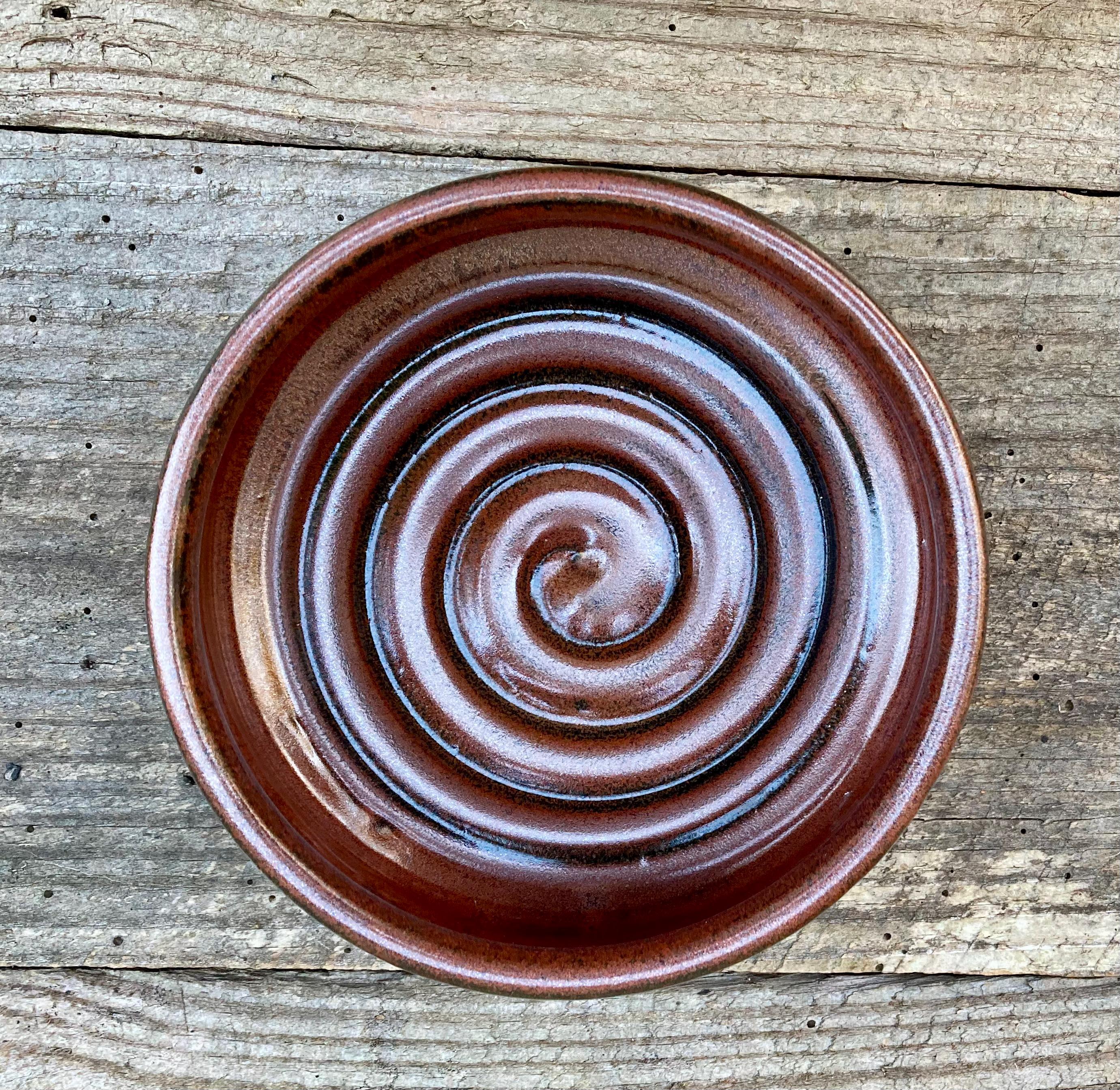 This stoneware dog bowl was wheel-thrown and fired to 2300 degrees for strength and durability. It was slow cooled to give the glaze time to develop depth and variation. The drips on one side look good, too. Heavy enough to make it a little harder to push across the floor. Wider at the bottom so it is almost impossible to turn over. It also make a good baking and serving dish.