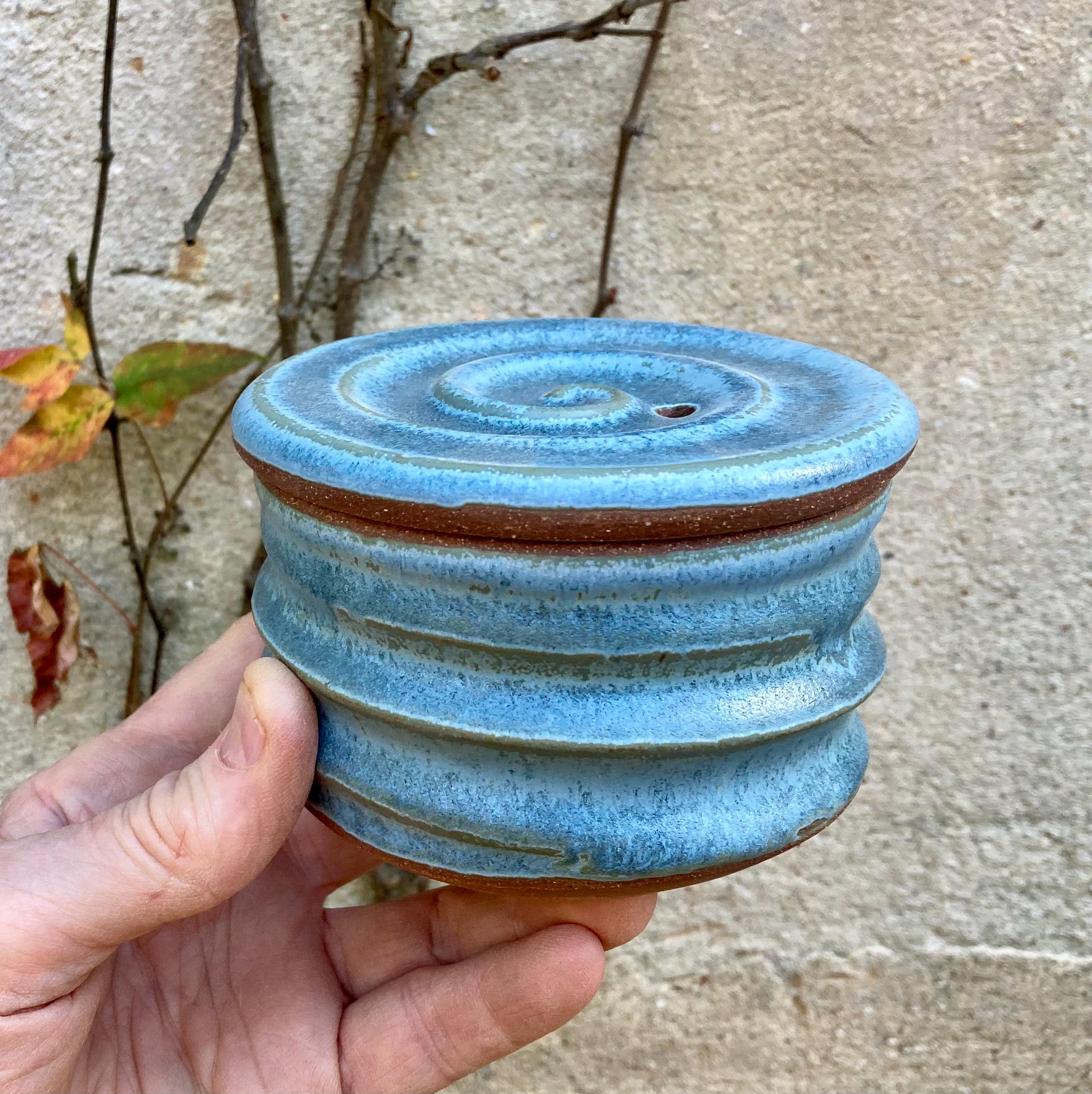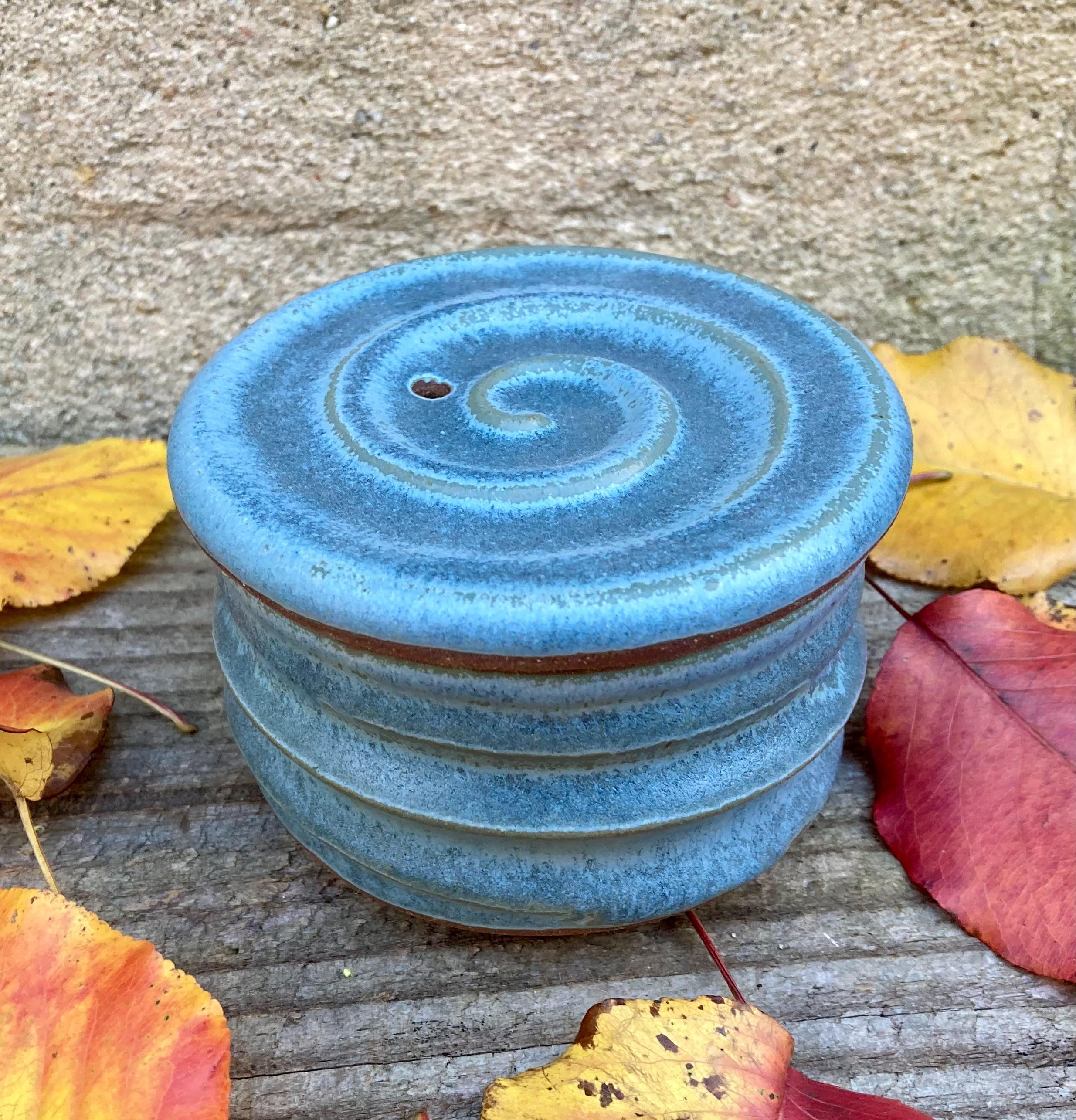 This stoneware egg poacher was wheel-thrown and fired to 2300 degrees for strength and durability. It was slow-cooled to give the glaze time to develop depth and variation.