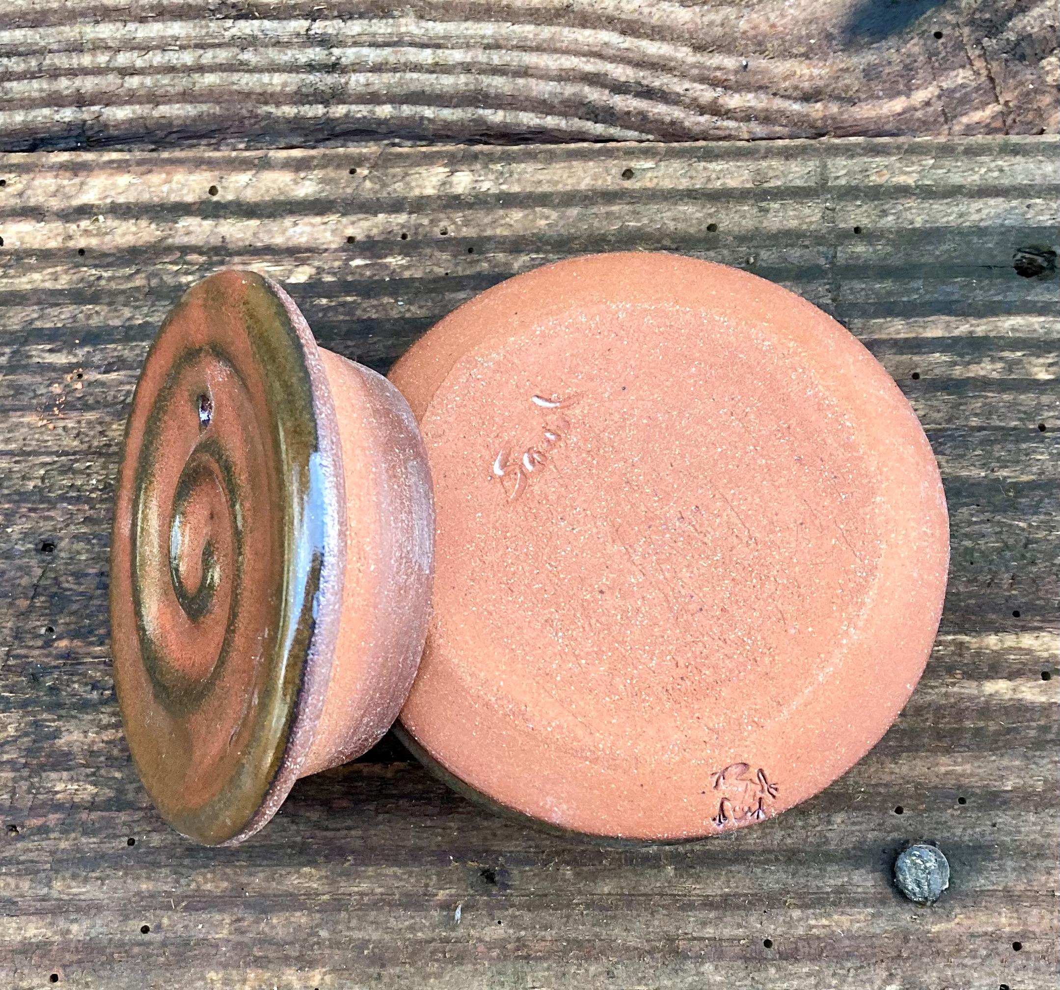 This stoneware egg poacher was wheel-thrown and fired to 2300 degrees for strength and durability. It was slow-cooled to give the glaze time to develop depth and variation.