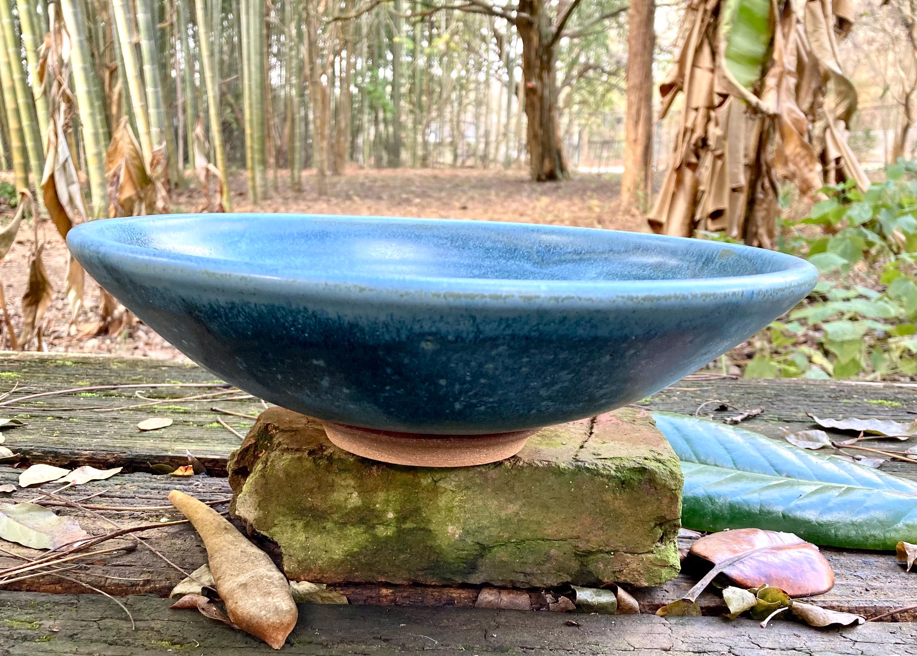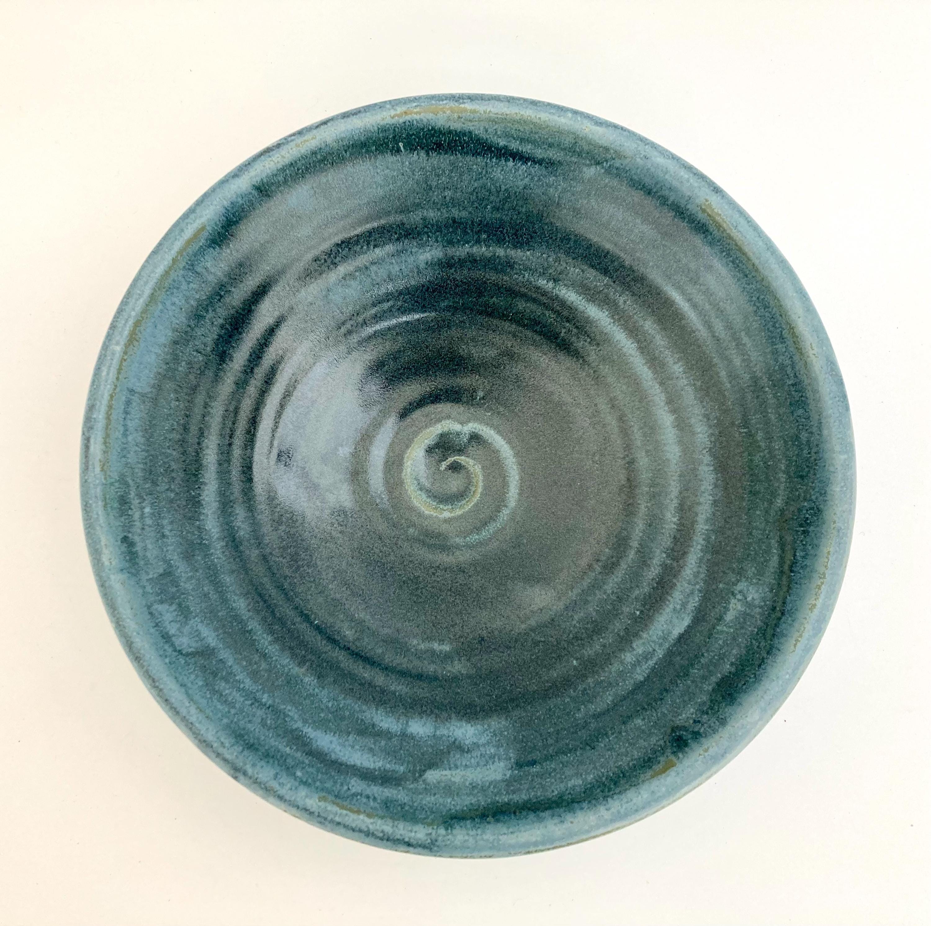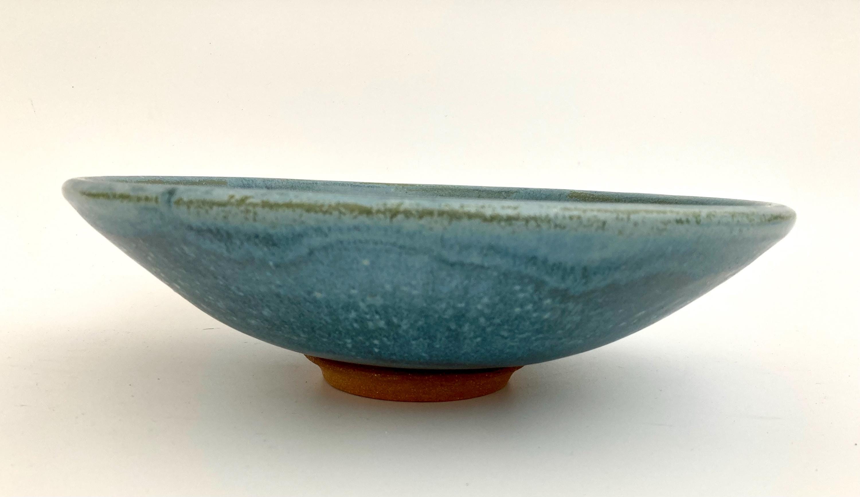 This stoneware bowl was thrown on the wheel and fired to vitrification for strength and durability. It was slow cooled to give the glaze time to develop depth and variation.
