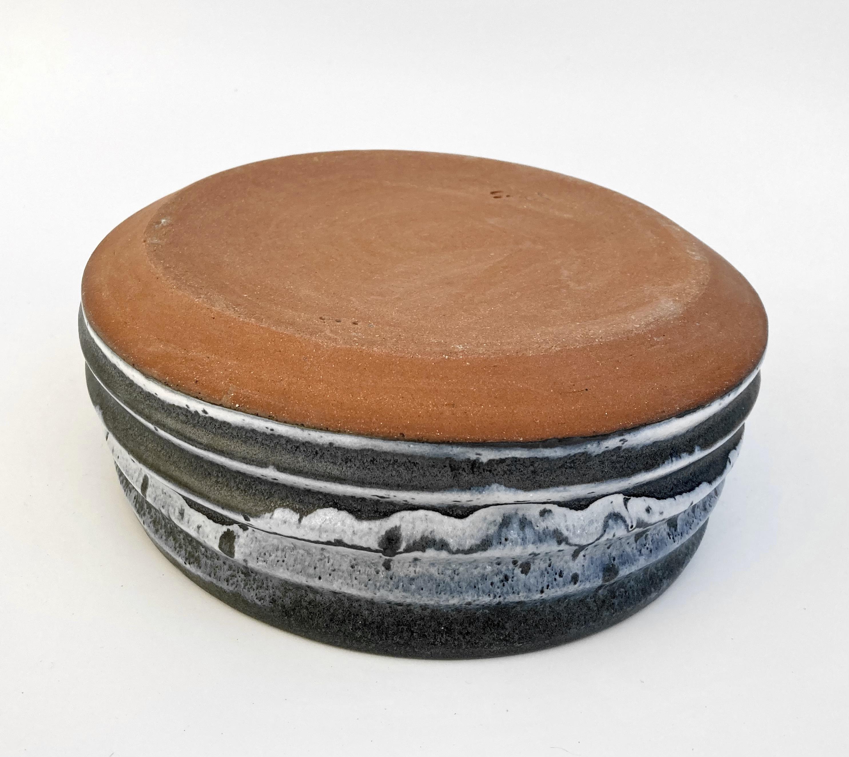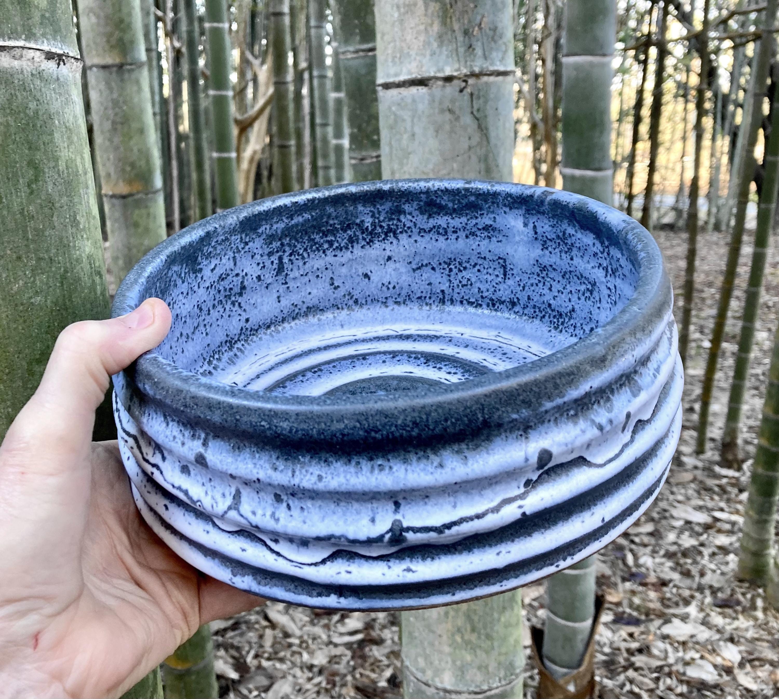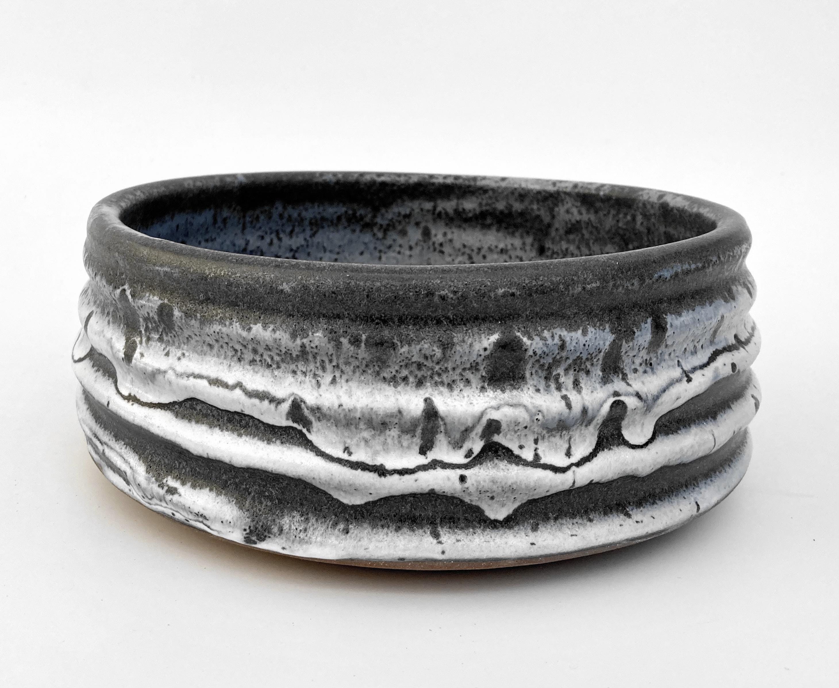 This large, stoneware dog bowl was wheel-thrown and fired to 2300 degrees for strength and durability. It was slow cooled to give the glazes time to run, pool, merge and form interesting patterns. Heavy enough to make it a little harder to push across the floor. Wider at the bottom so it is almost impossible to turn over. Makes a great water bowl. It also make a good baking and serving dish.