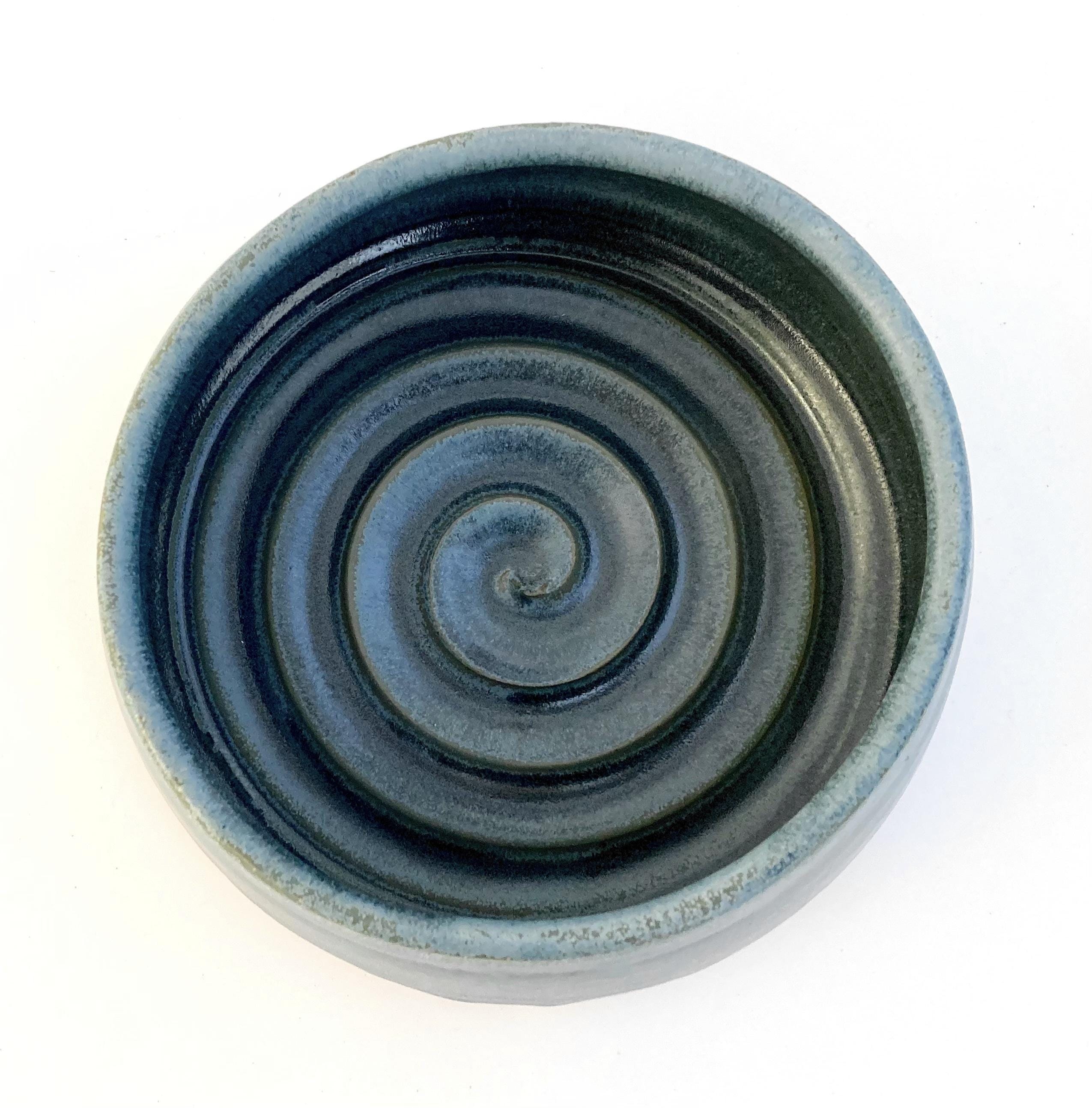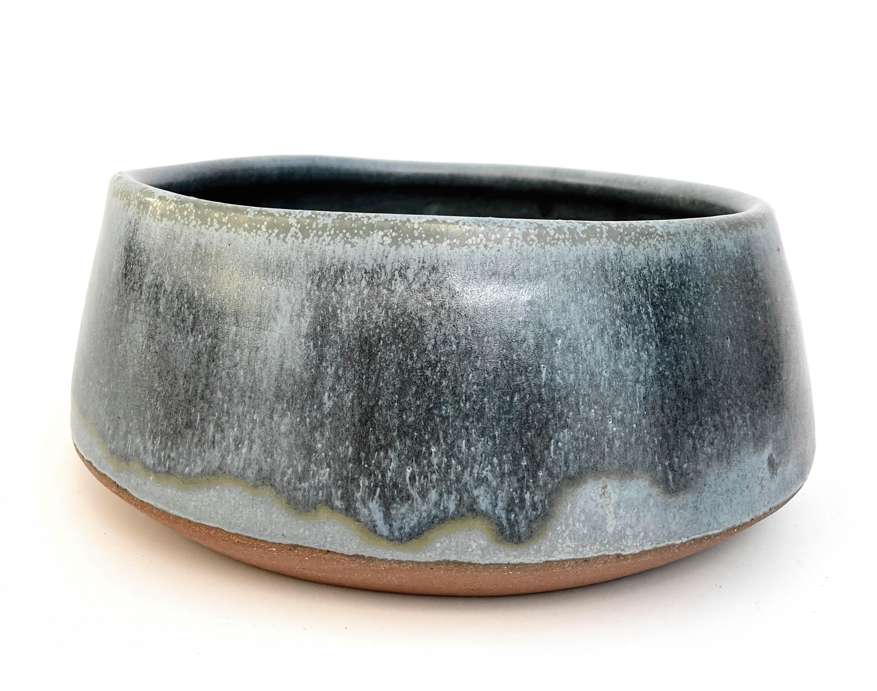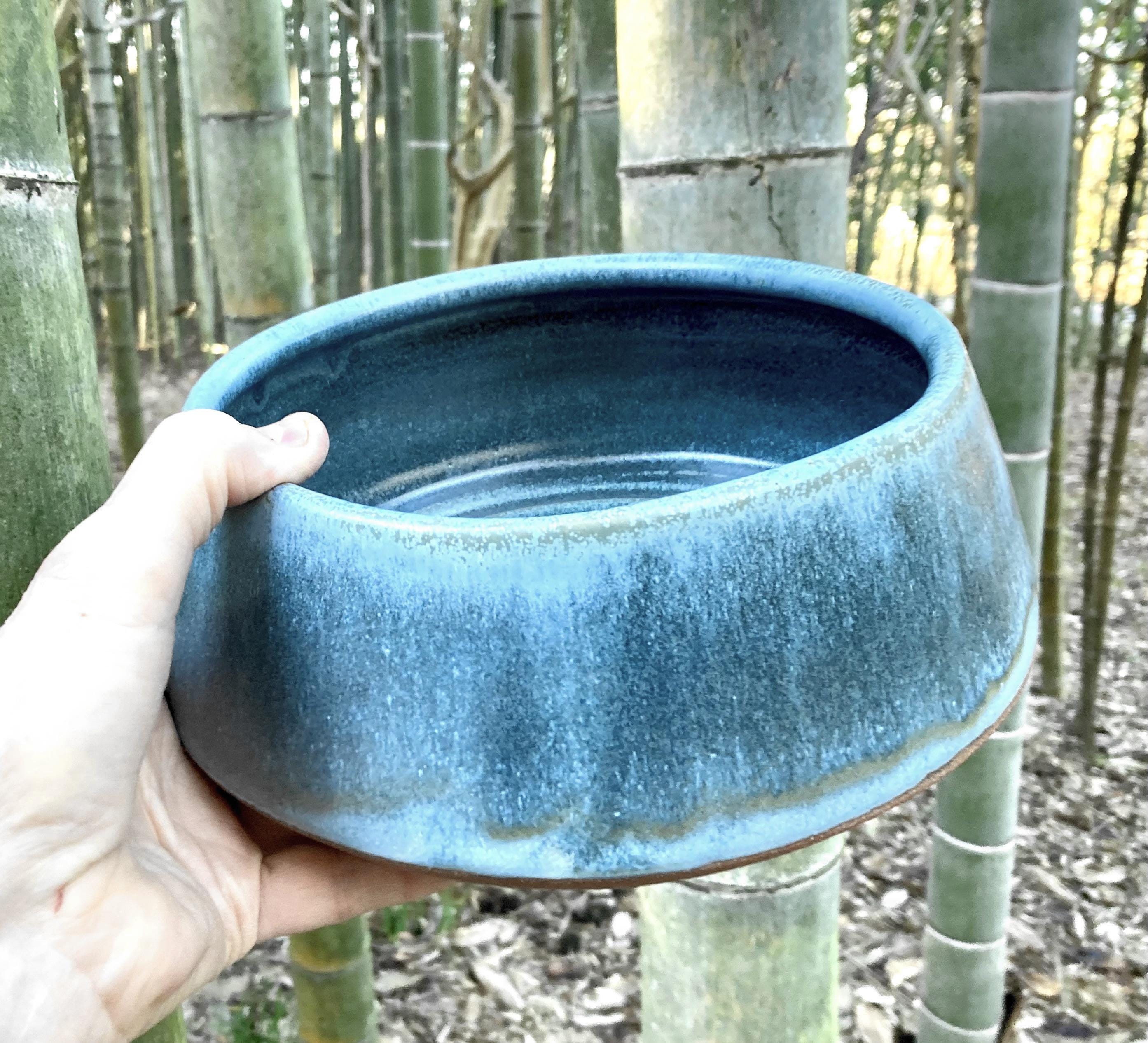 This large, stoneware dog bowl was wheel-thrown and fired to 2300 degrees for strength and durability. It was slow cooled to give the glaze time to develop depth and variation. Heavy enough to make it a little harder to push across the floor. Wider at the bottom so it is almost impossible to turn over. Makes a great water bowl. It also make a good baking and serving dish.