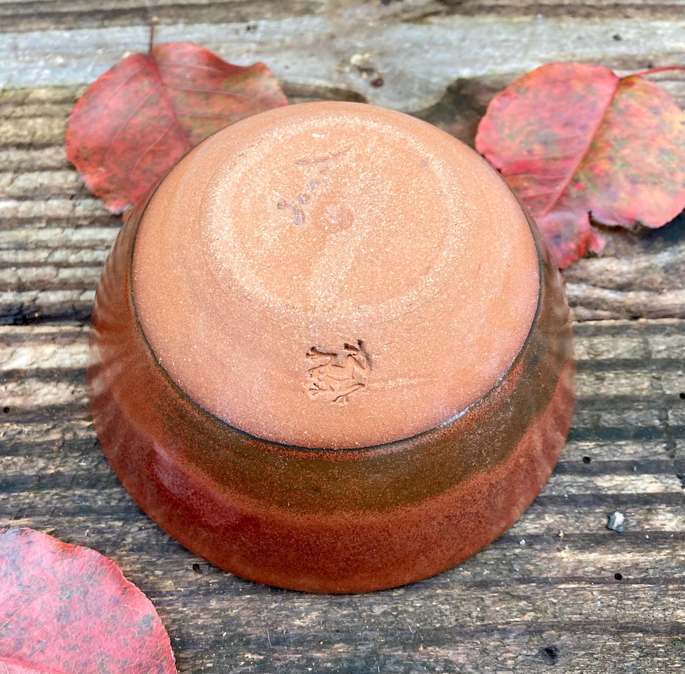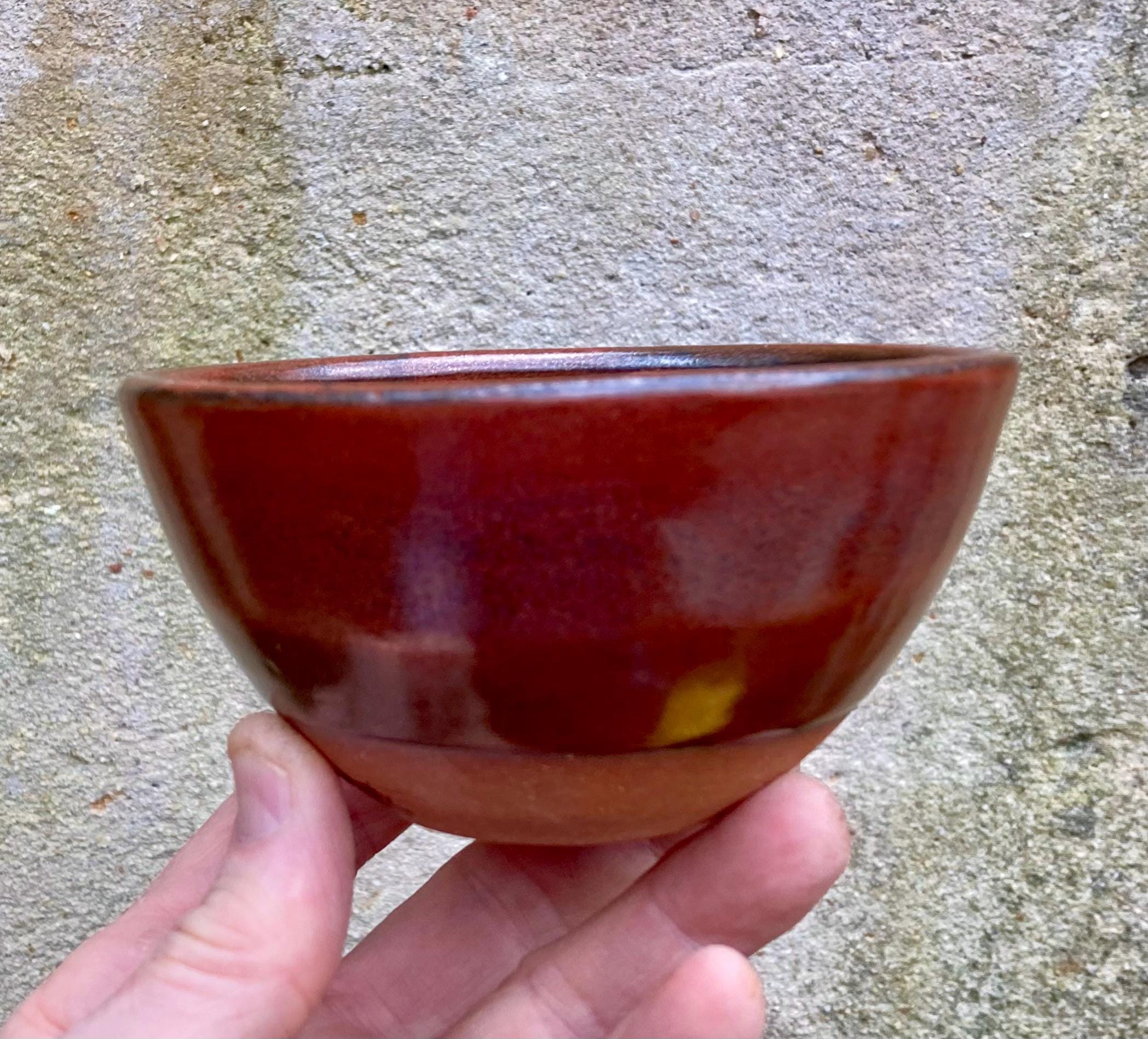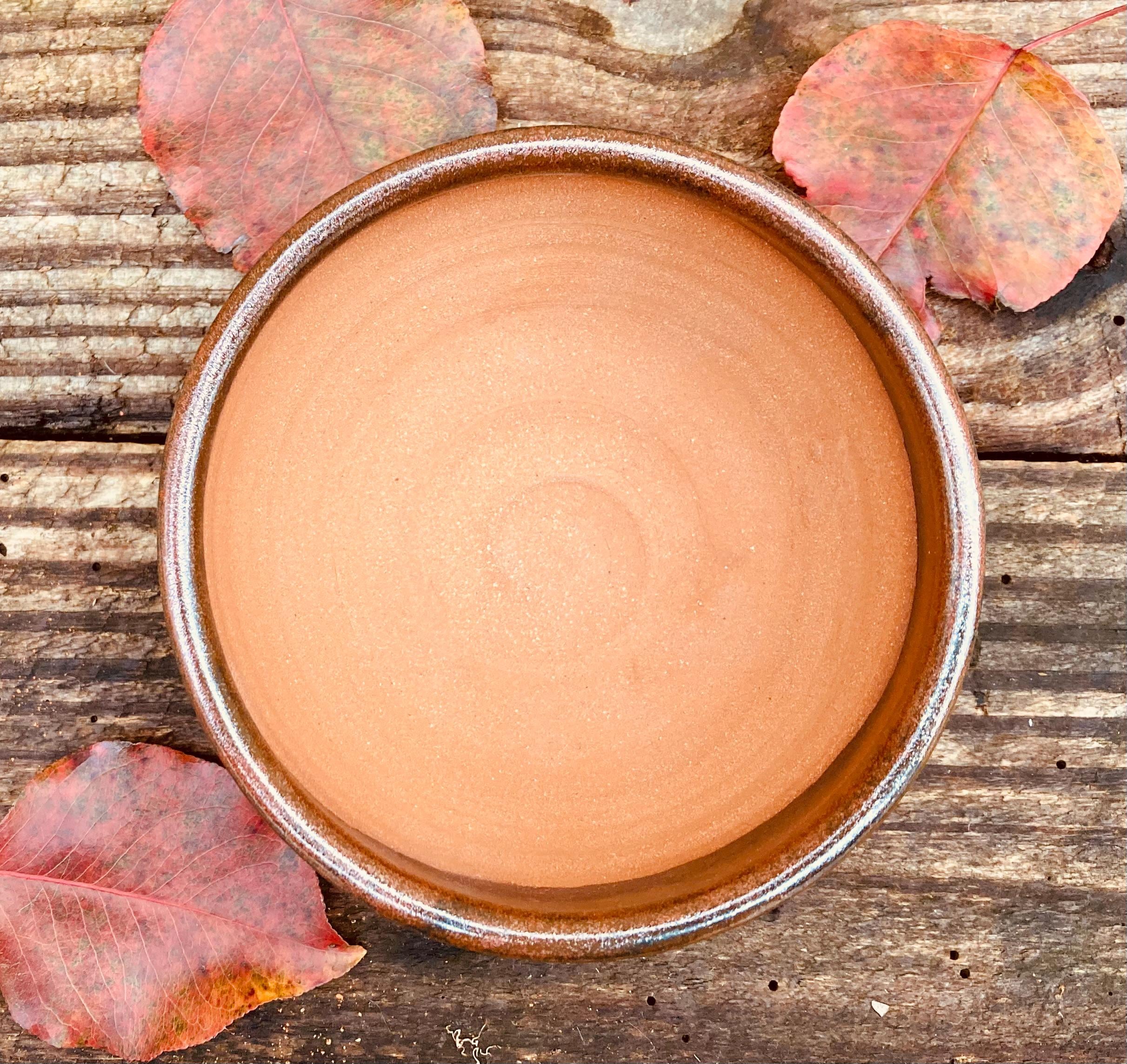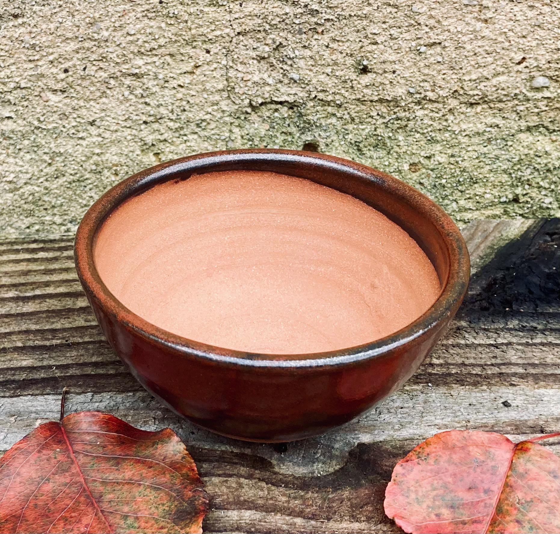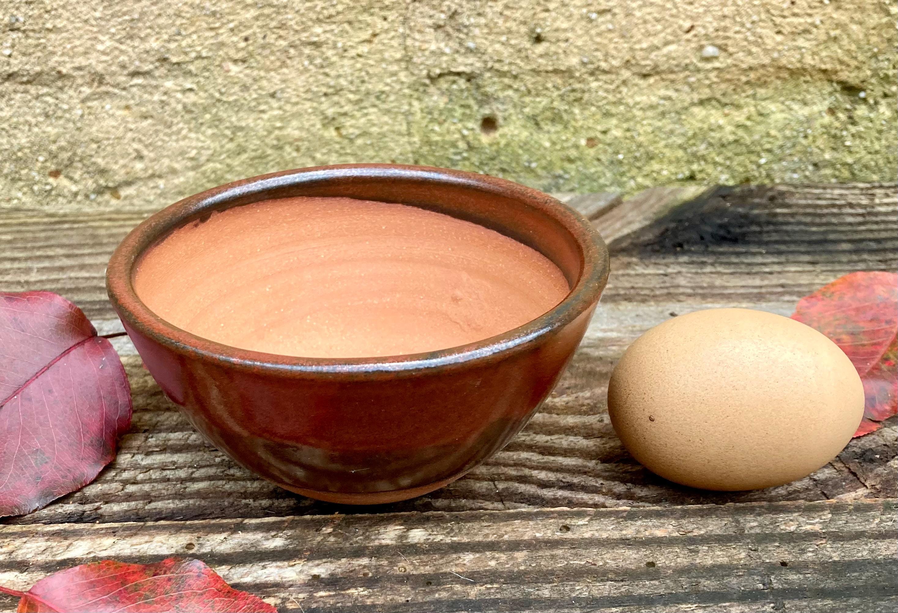 Simplicity at its best. Just a small bowl that fits comfortably in the palm of your hand while you whip up lather. The inside of the bowl is left unglazed so that the slightly rough texture of the stoneware clay makes it easy to whip up lather. The picture with brush and lather is of another bowl.