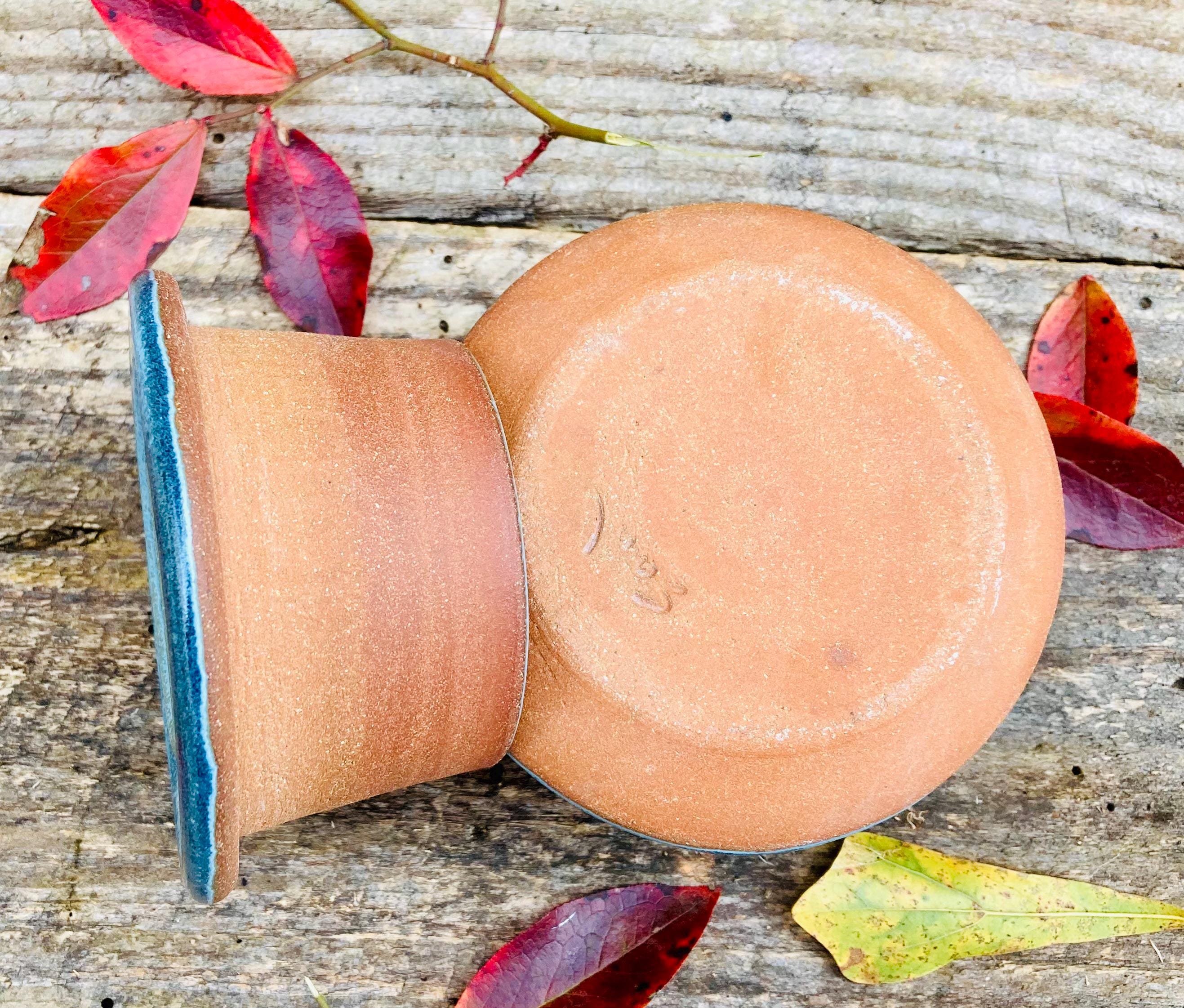 This stoneware butter keeper was wheel-thrown and fired to 2300 degrees for strength and durability. It was slow cooled to give the glaze time to develop depth and variation.