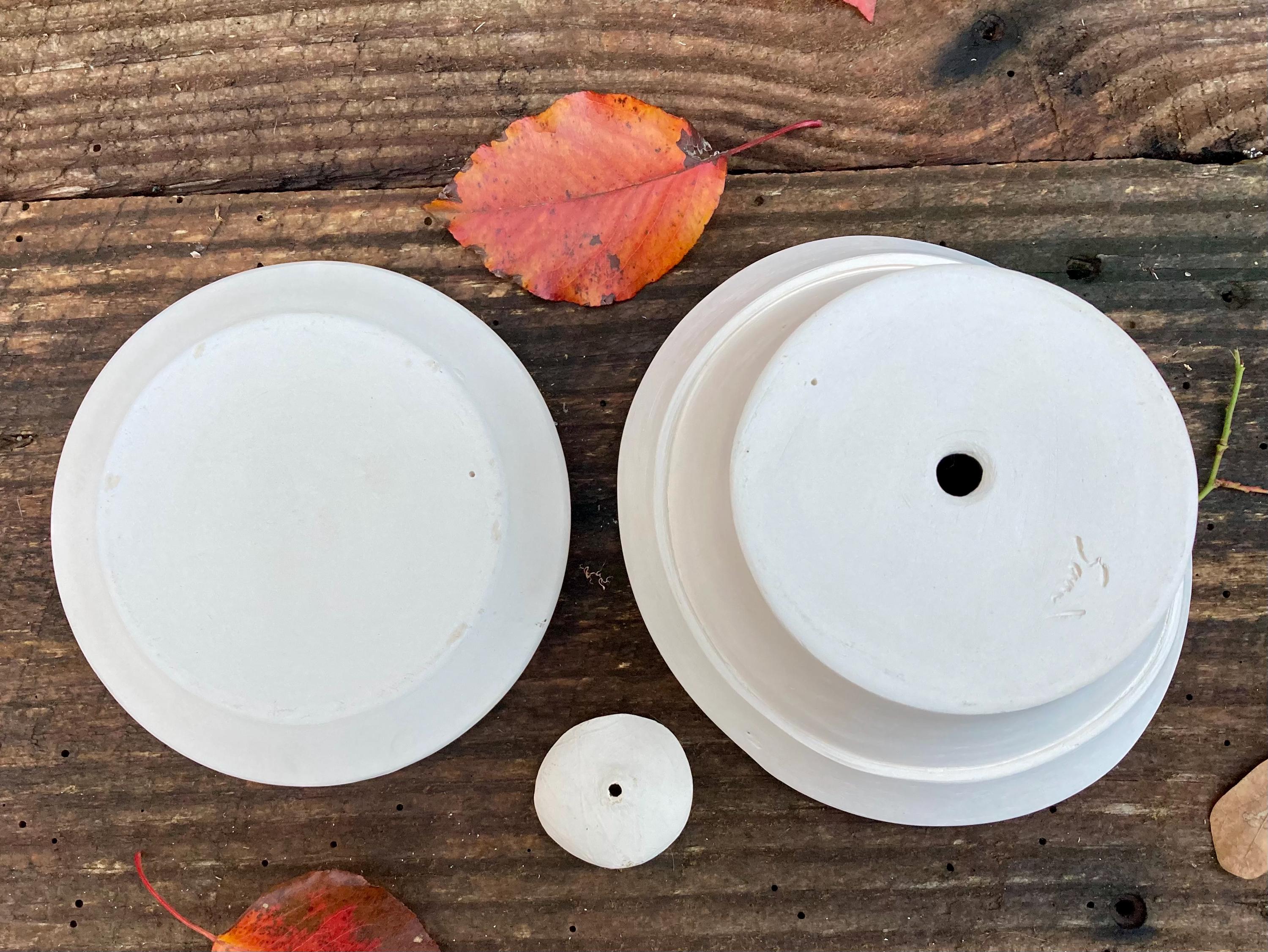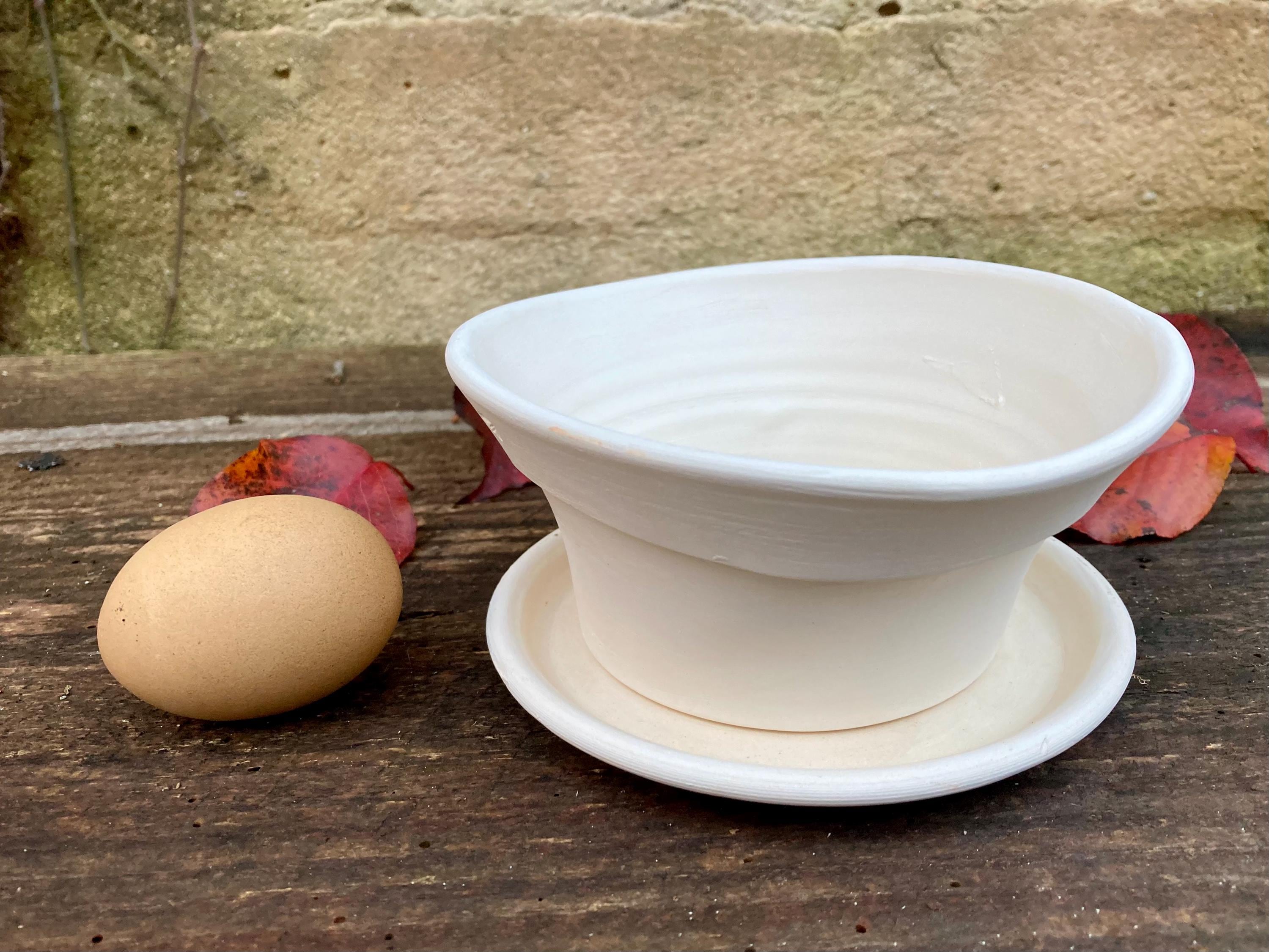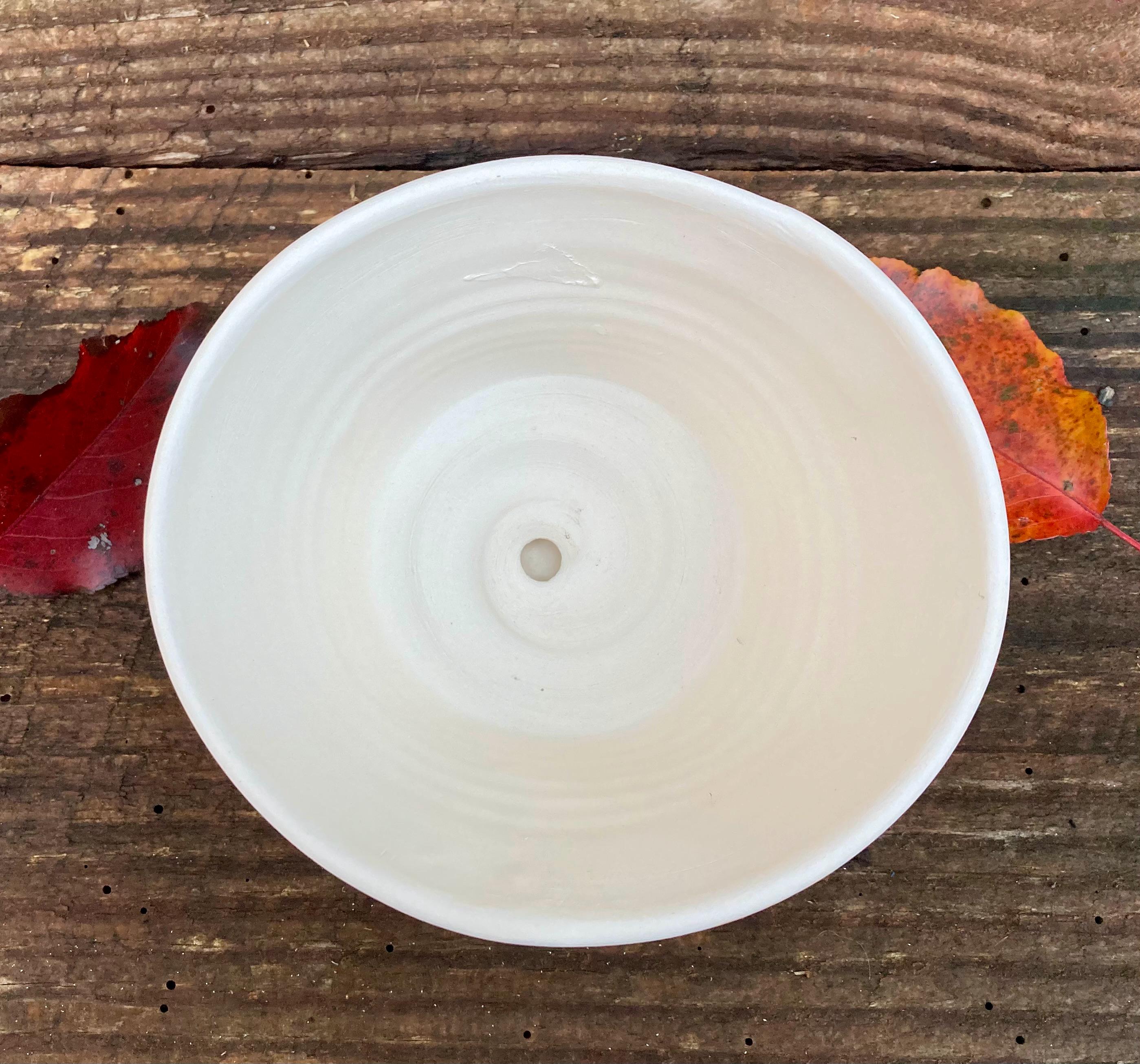 This small planter with saucer is made of white earthenware clay. Like terracotta it is porous. This allows air and water to flow through the pot which prevents root rot and soil disease.