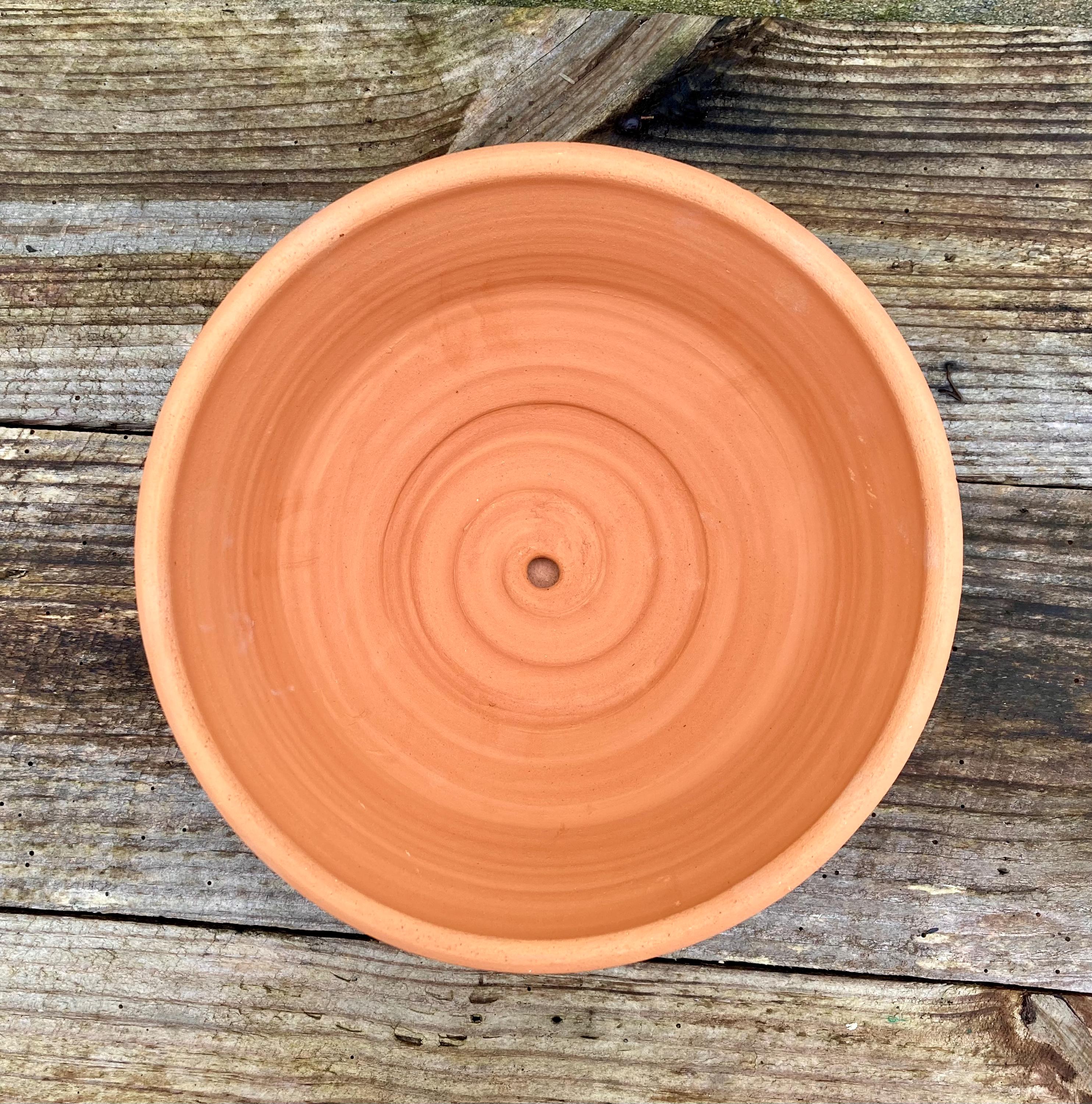 This terracotta planter was made of wheel-thrown, locally dug clay that when fired to the right temperature comes out a nice terracotta color and is porous. This allows air and water to flow through the pot which prevents root rot and soil disease.