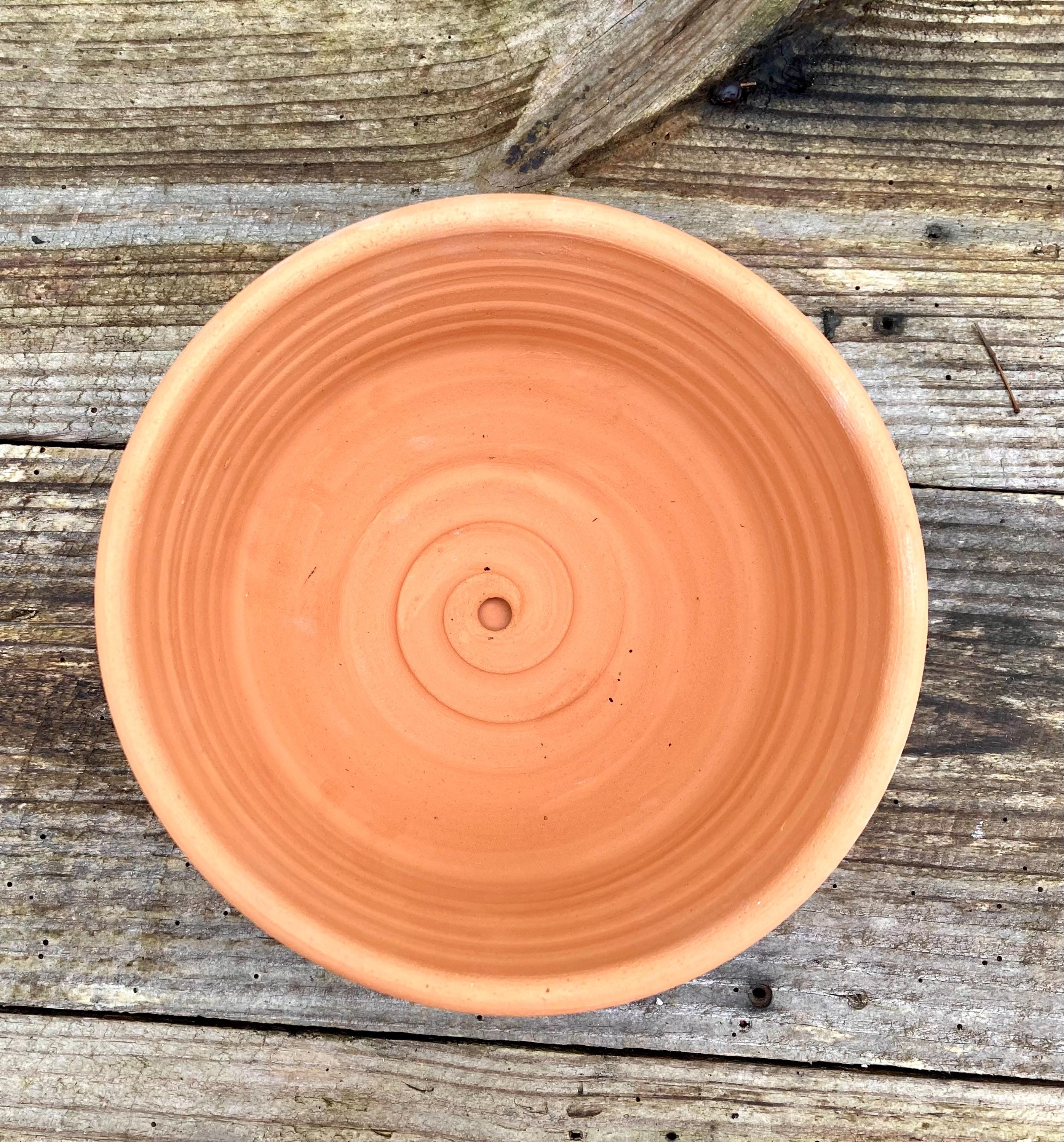 This terracotta planter was made of wheel-thrown, locally dug clay that when fired to the right temperature comes out a nice terracotta color and is porous. This allows air and water to flow through the pot which prevents root rot and soil disease.