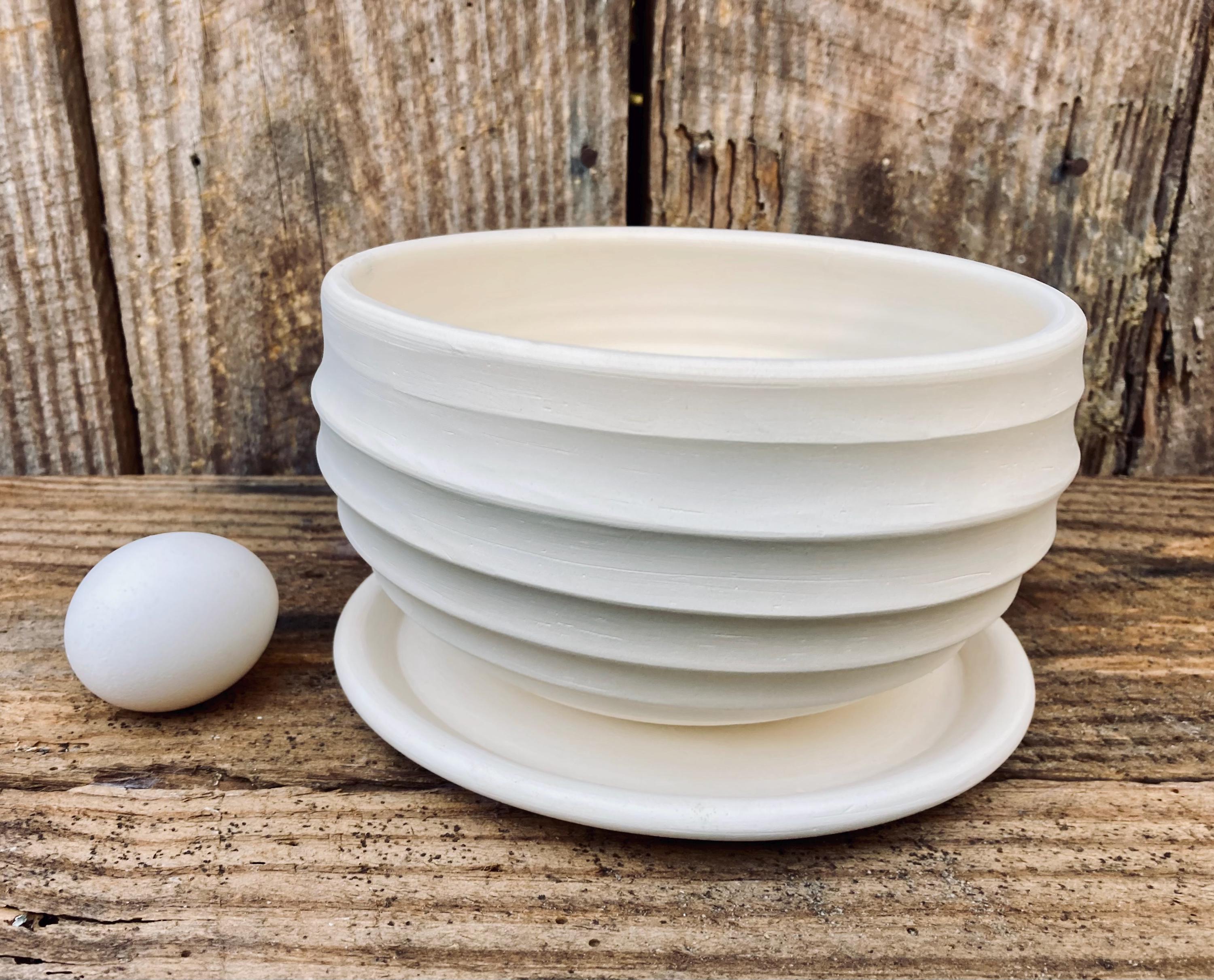 This planter with saucer was made of white earthenware clay. Like terracotta it is porous. This allows air and water to flow through the pot which prevents root rot and soil disease.
