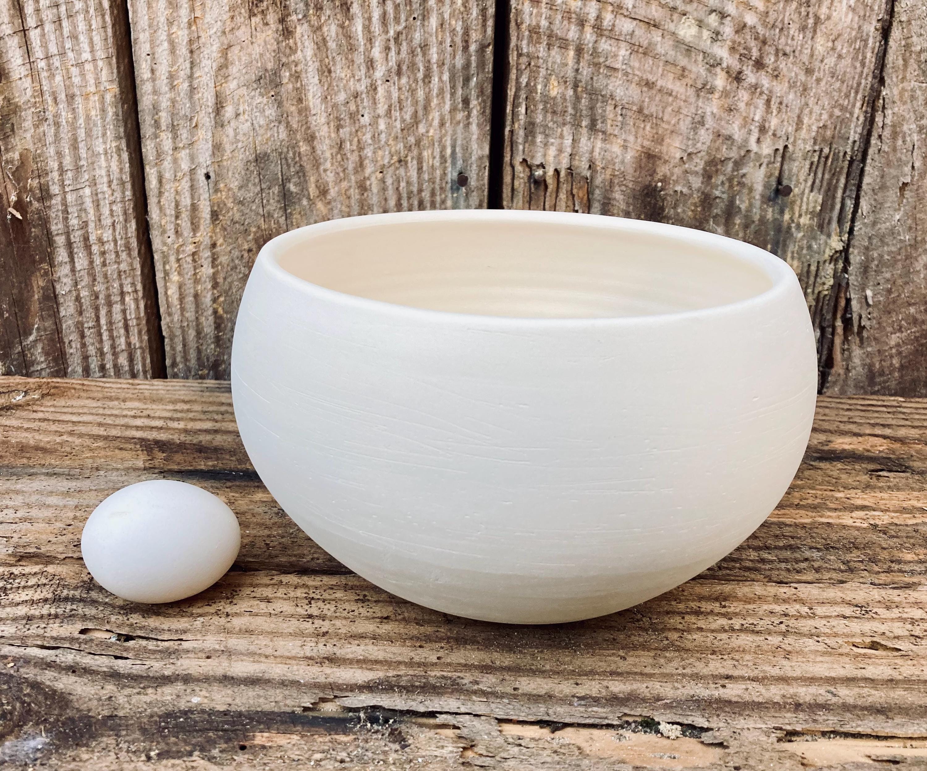 This round planter was made of white earthenware clay. Like terracotta it is porous. This allows air and water to flow through the pot which prevents root rot and soil disease.