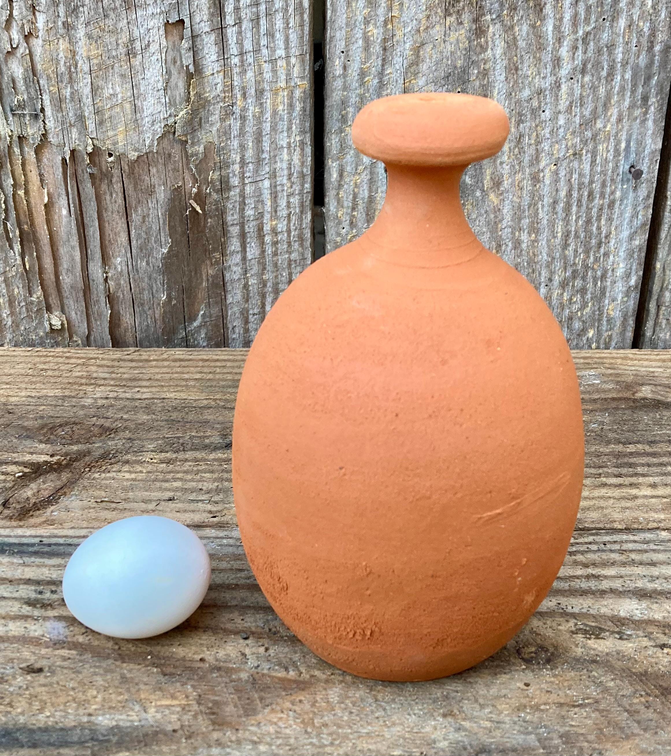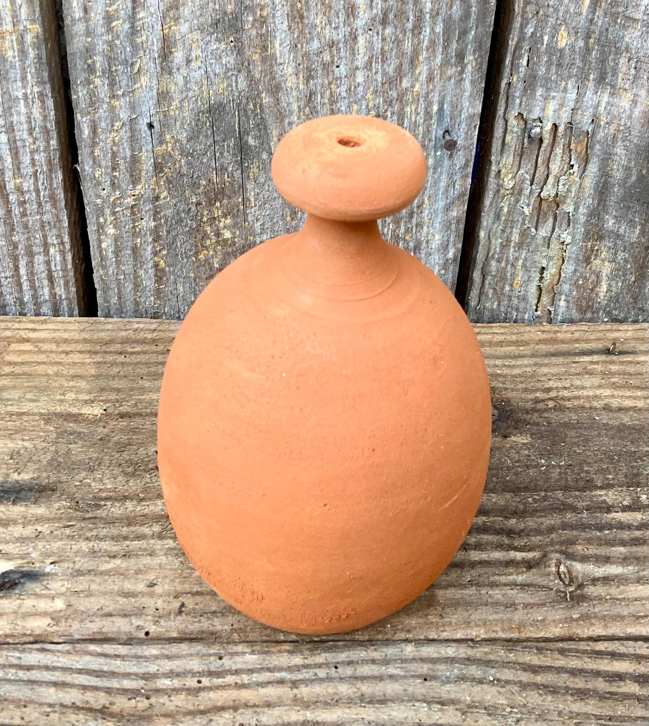 This large, terracotta watering bell was made of locally dug clay that when fired to the right temperature comes out a nice terracotta color. It is fired higher than most terracotta pottery so is much stronger and more durable.