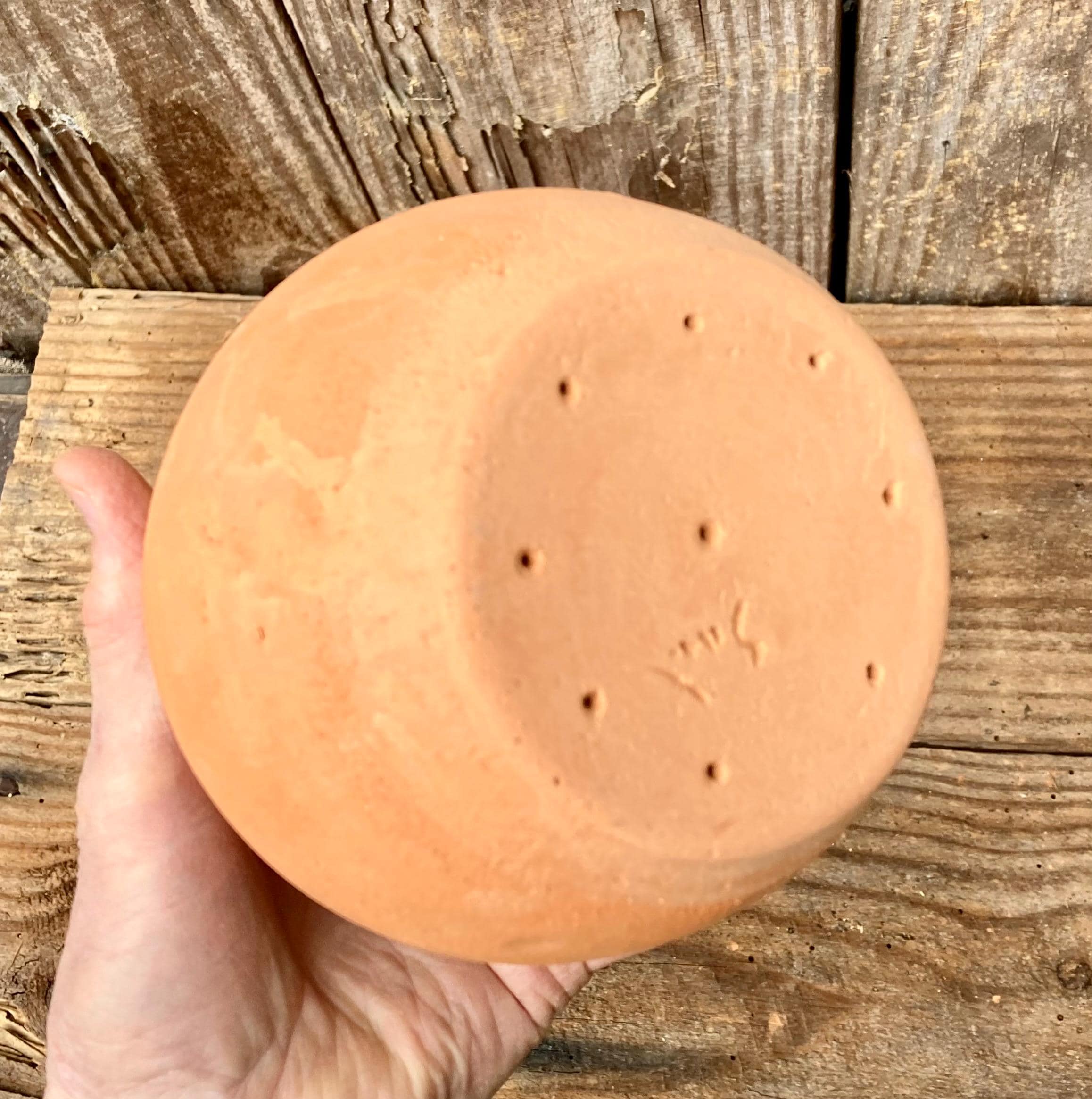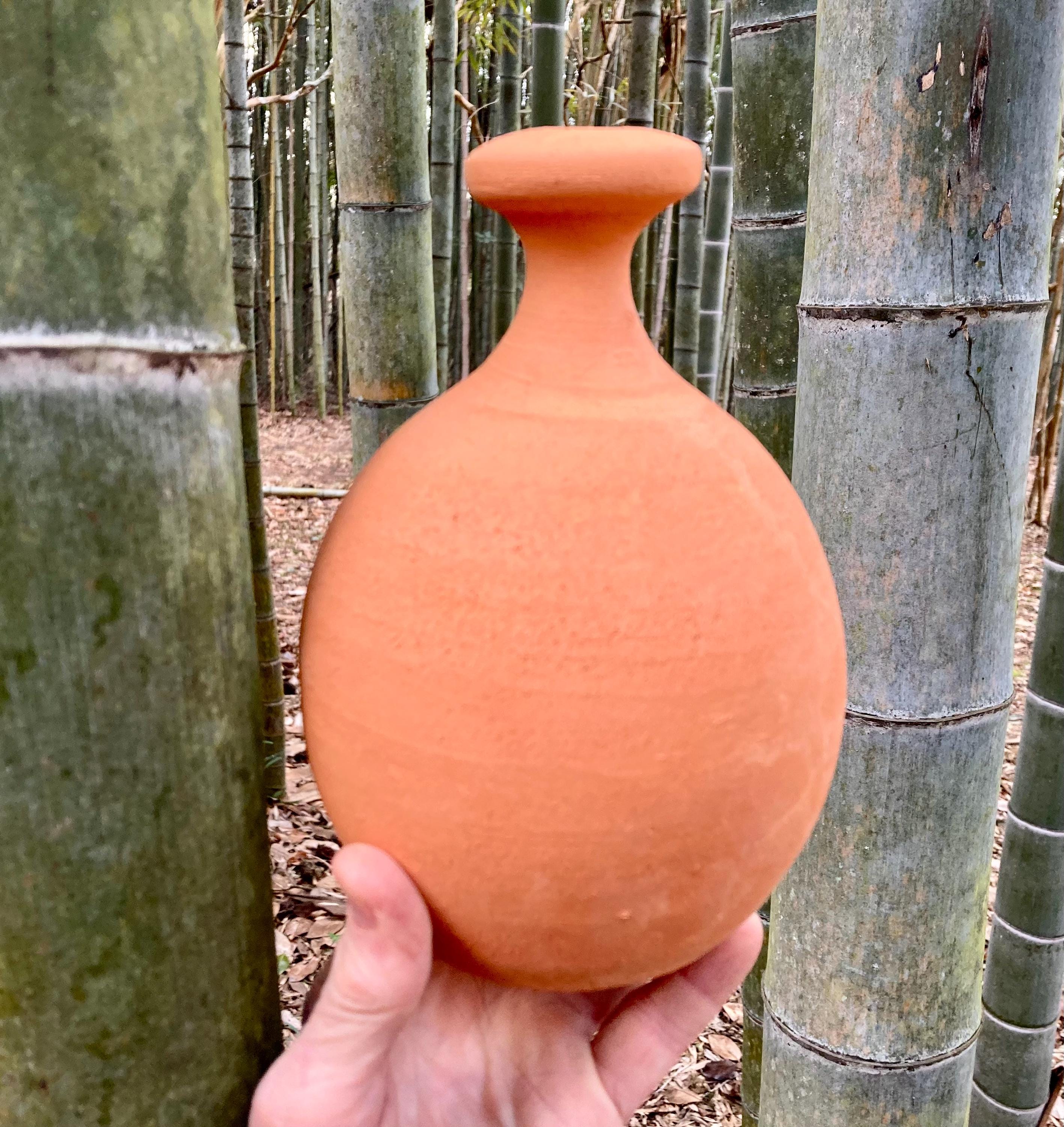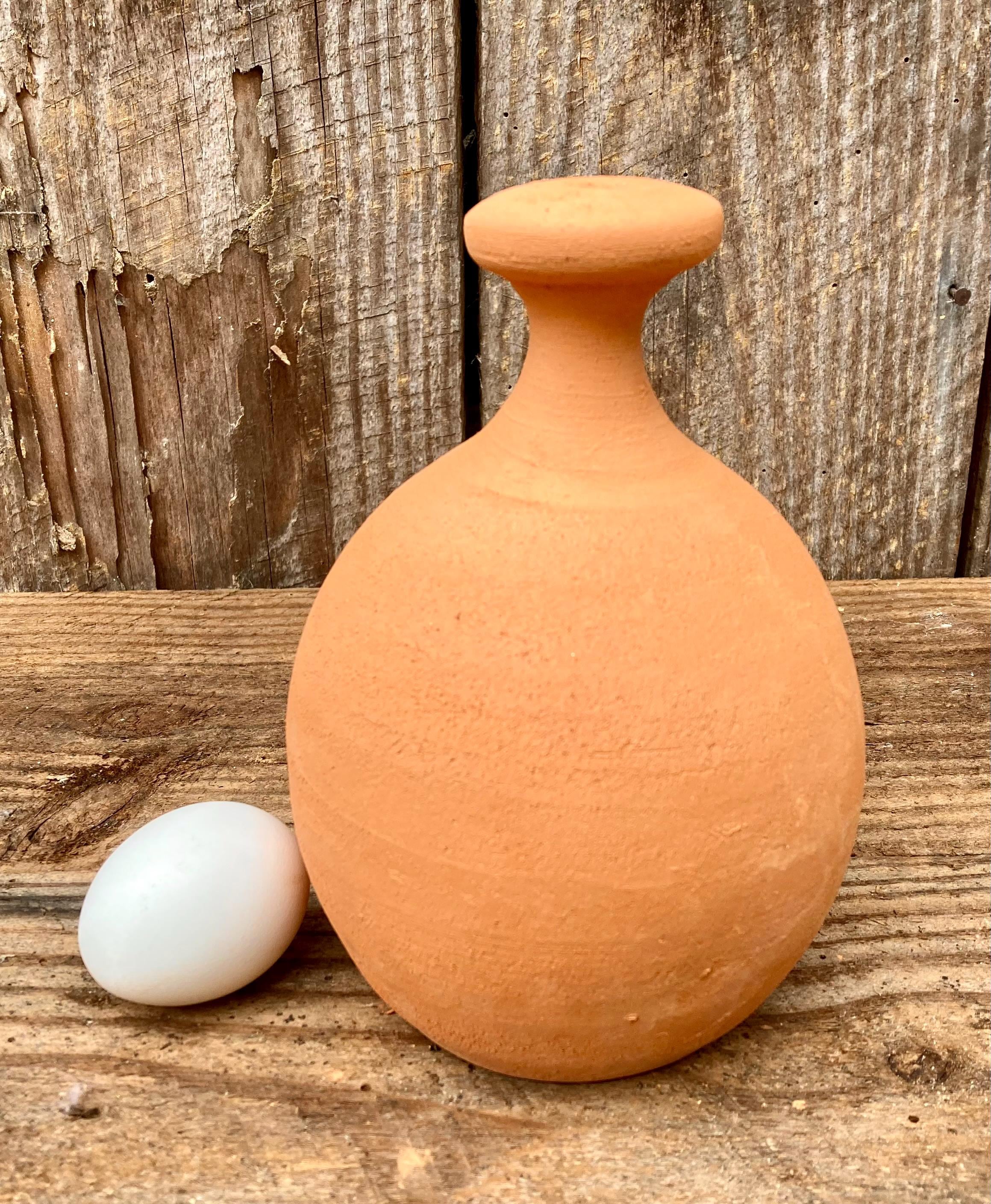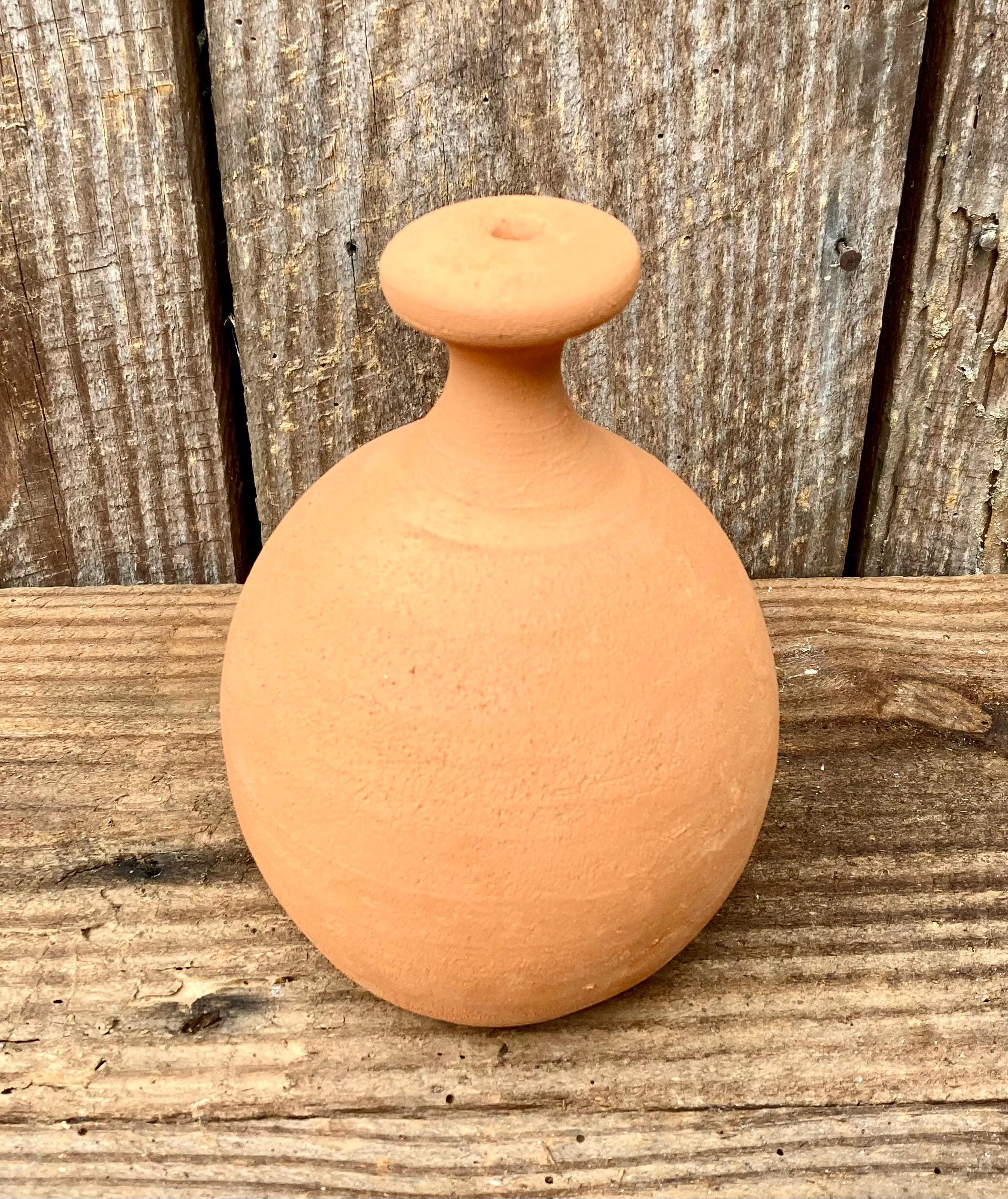 This large, terracotta watering bell was made of locally dug clay that when fired to the right temperature comes out a nice terracotta color. It is fired higher than most terracotta pottery so is much stronger and more durable.
