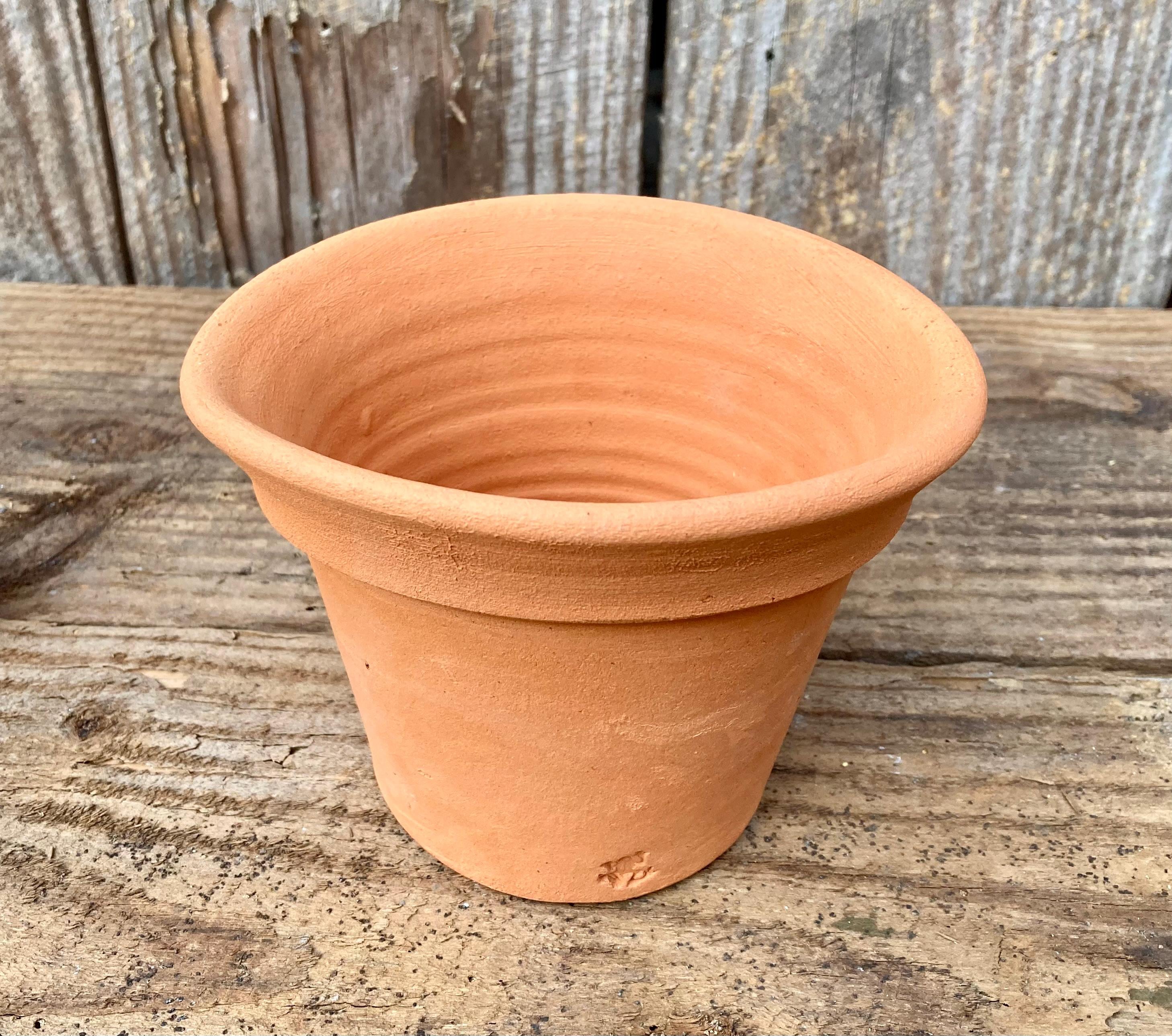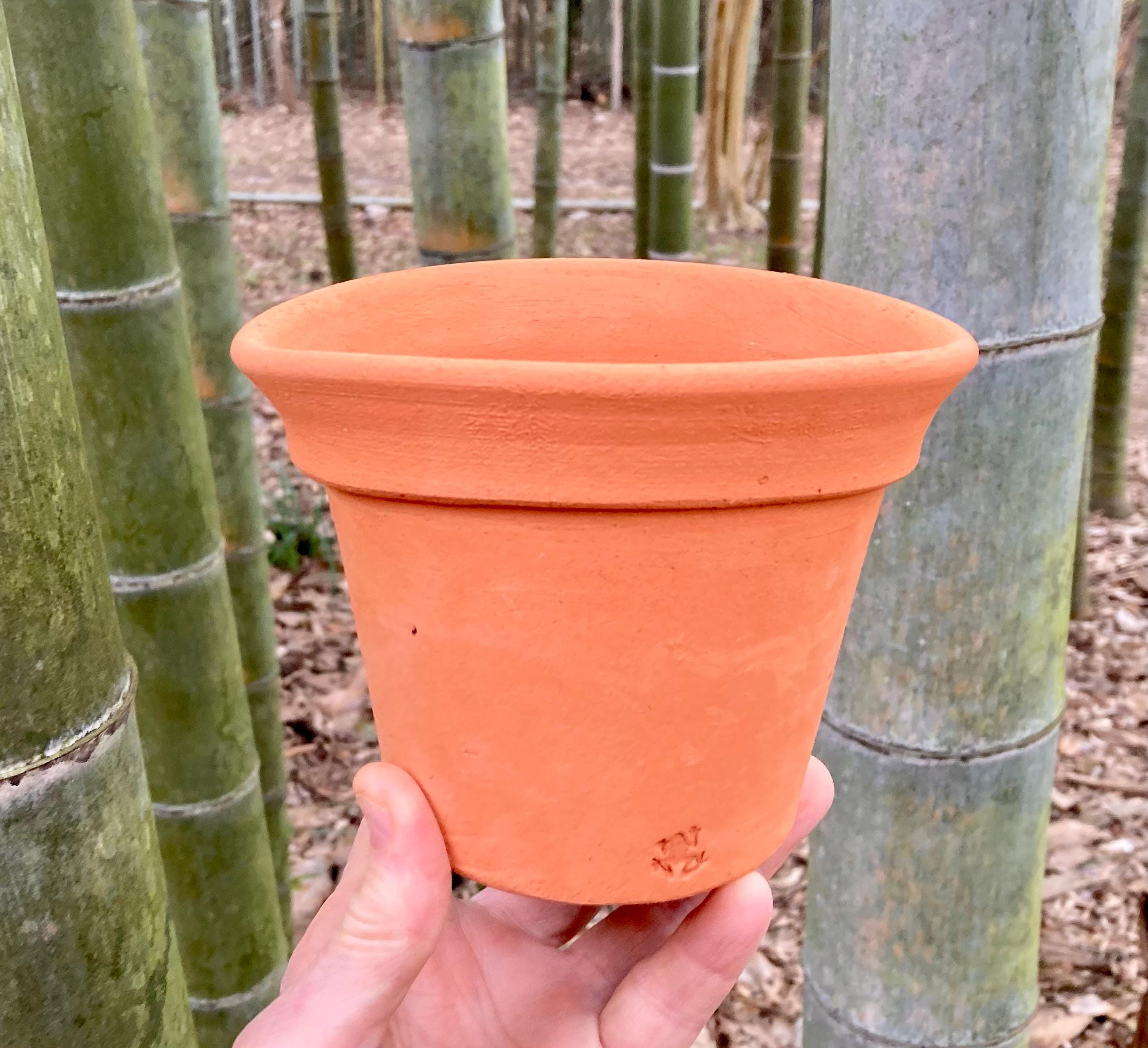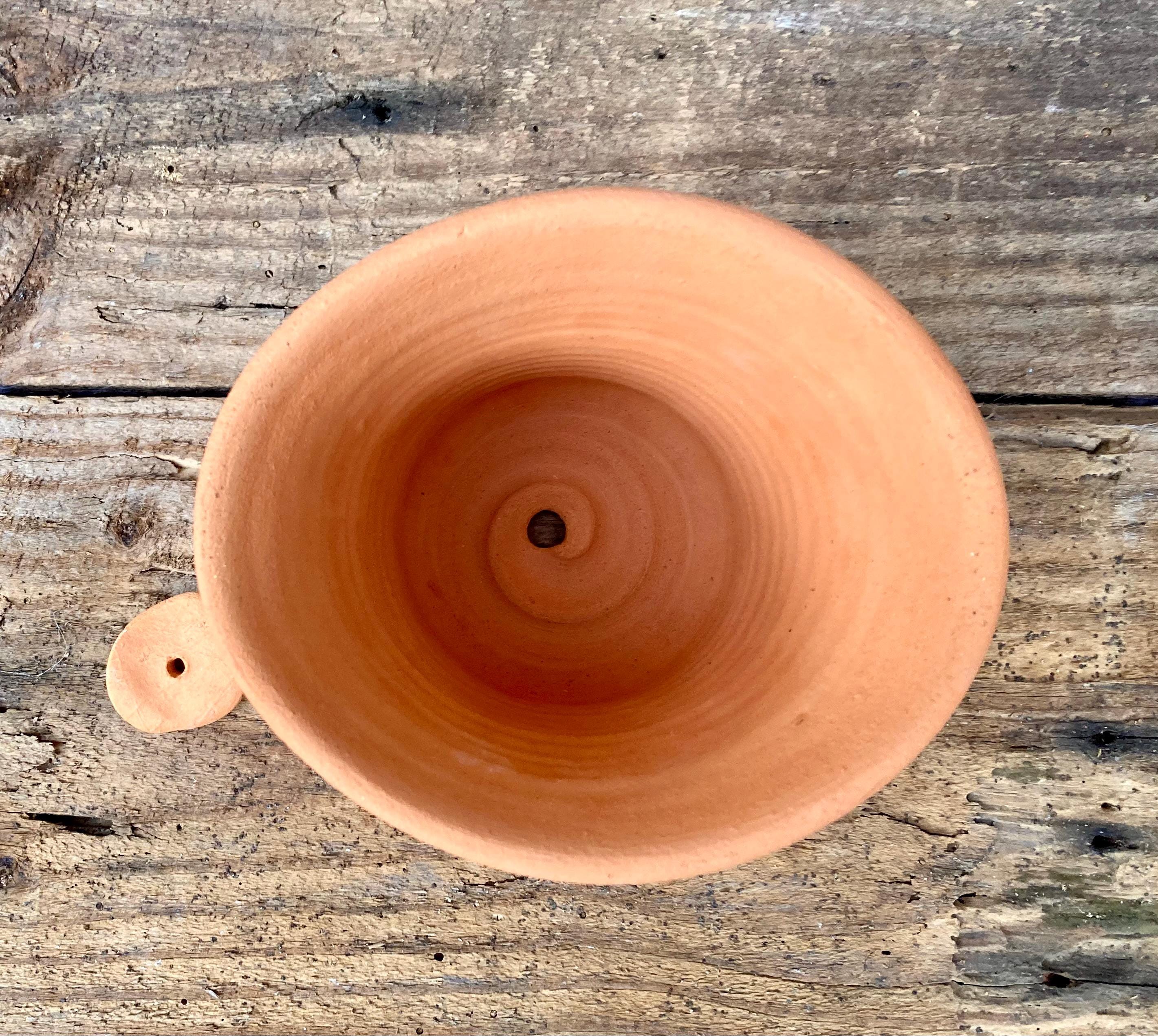 It was made of locally dug clay that when fired to the right temperature comes out a nice terracotta color and is porous. This allows air and water to flow through the pot which prevents root rot and soil disease.