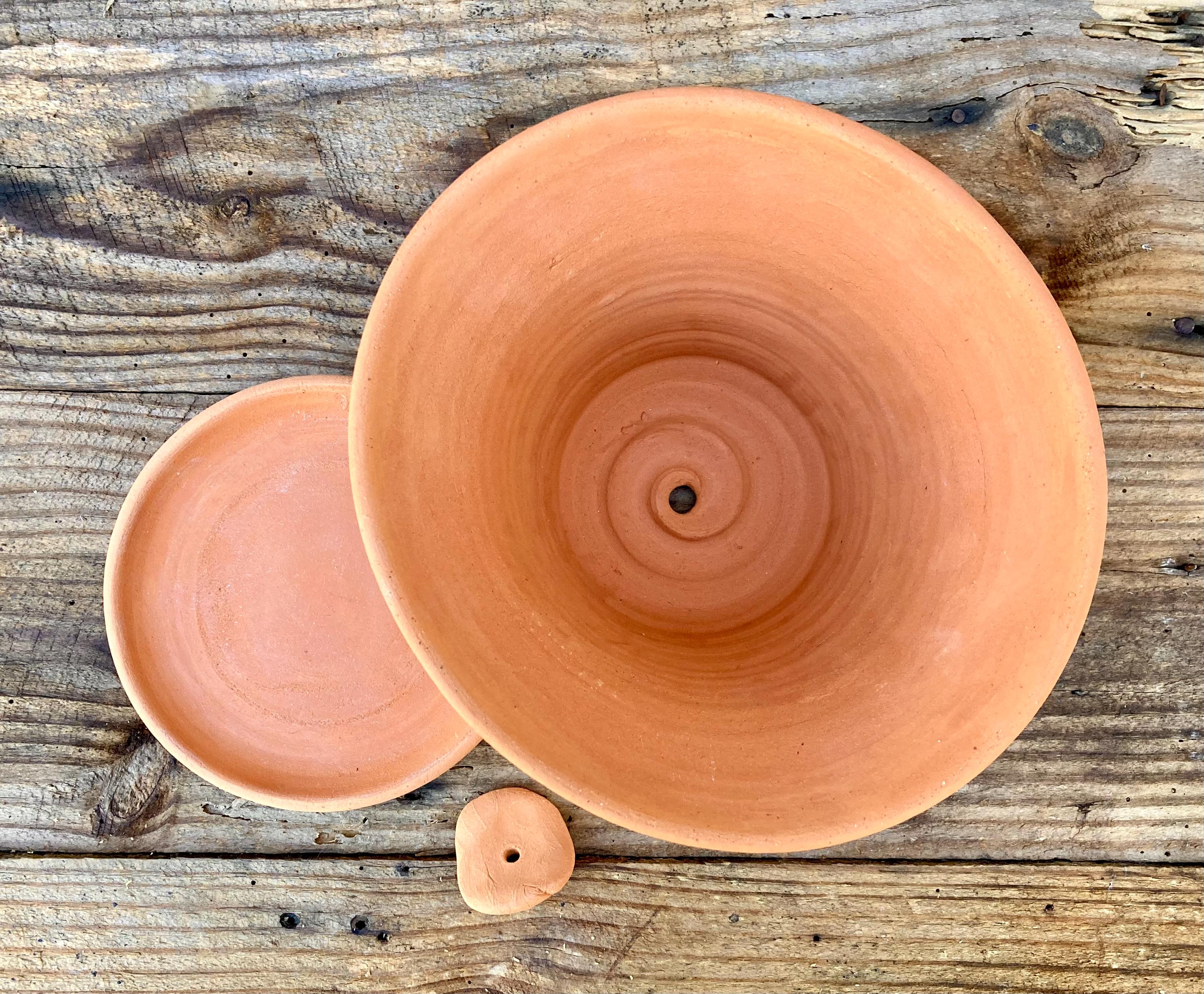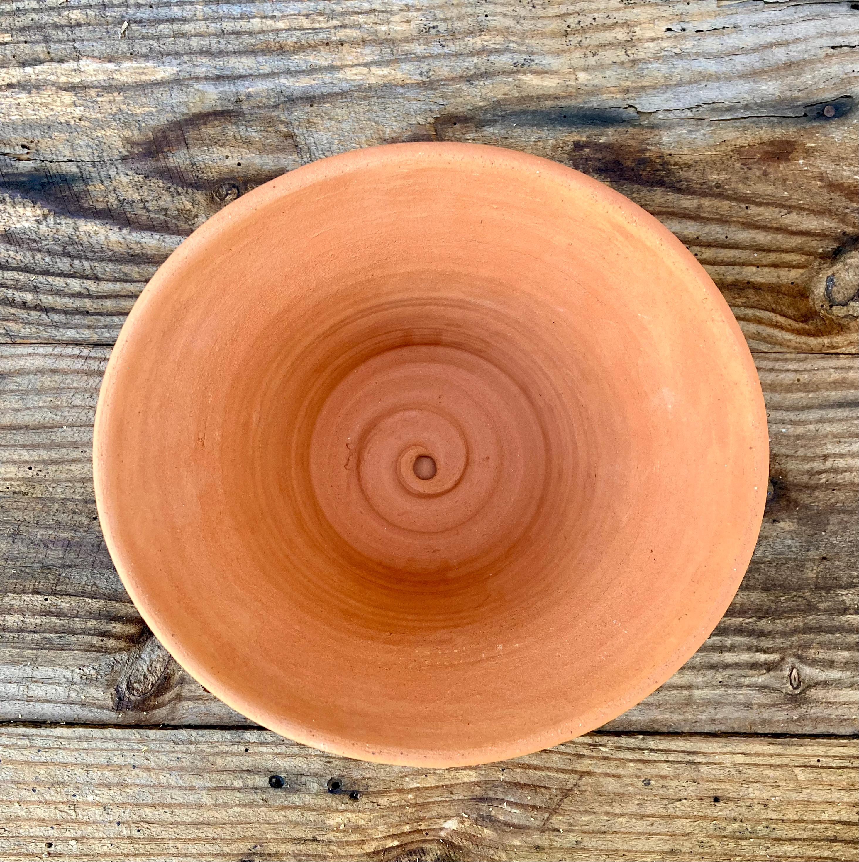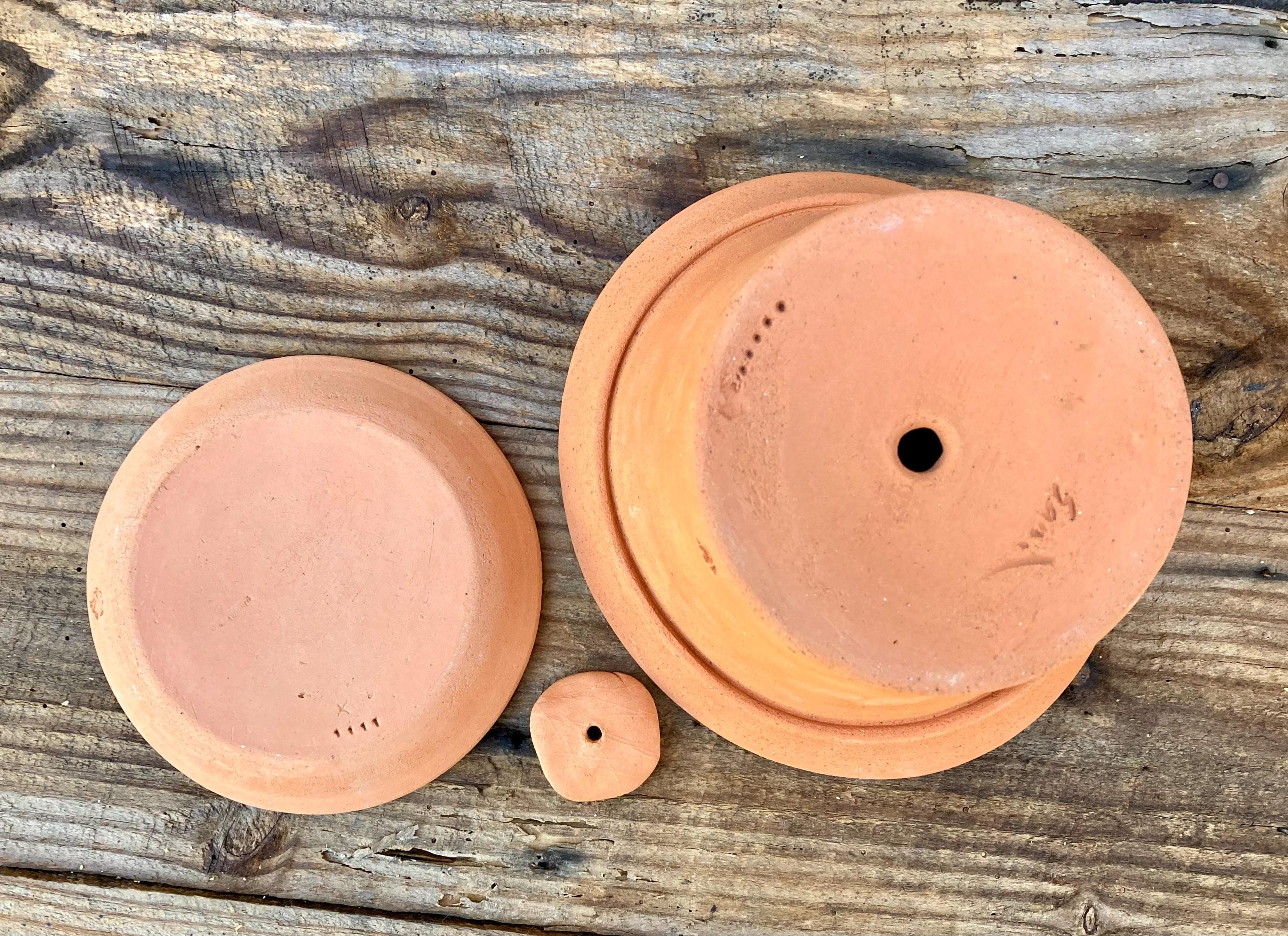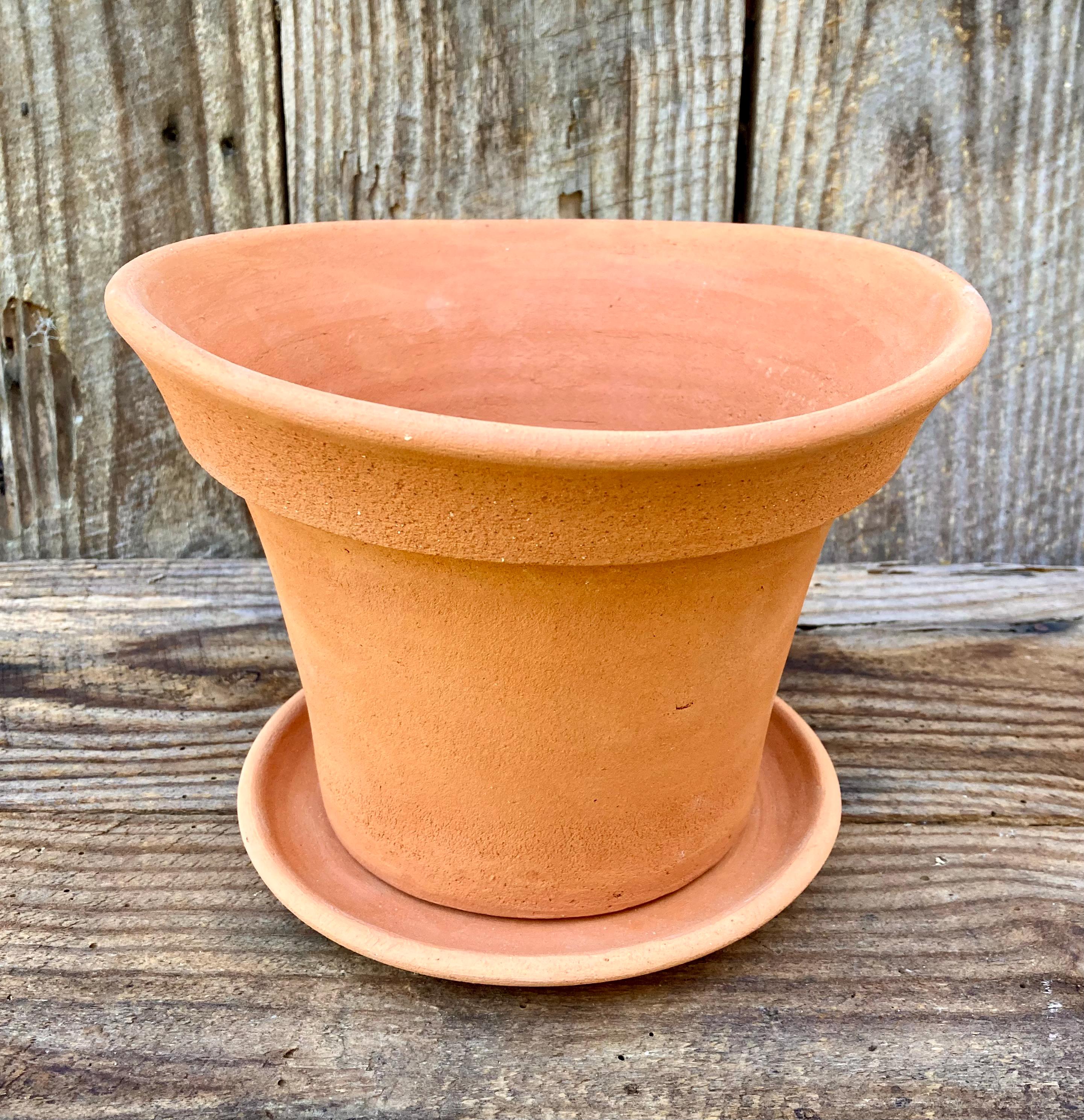 It is fired high enough to be much stronger and more durable than most terracotta pots (many of which aren't real terracotta). It has a small hole for drainage, a saucer that has been treated with a sealant to prevent leaking, and a shard to keep the soil from falling out or the hole becoming clogged.