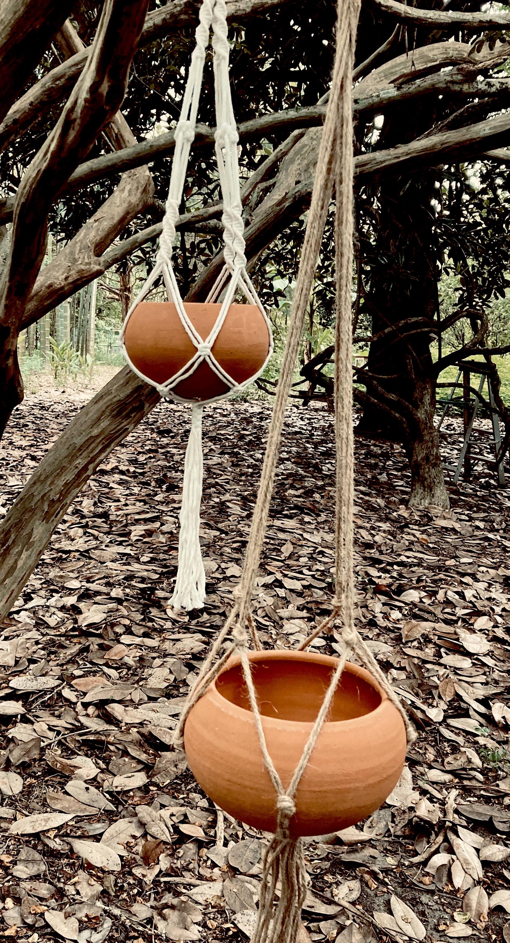 It is fired high enough to be much stronger and more durable than most terracotta pots. (Many of which aren't real terracotta.) It has a small hole for drainage and a saucer that has been treated with a sealant to prevent leaking. It does not come with the macrame used in the last picture to show that round planters also work well as hanging planters.