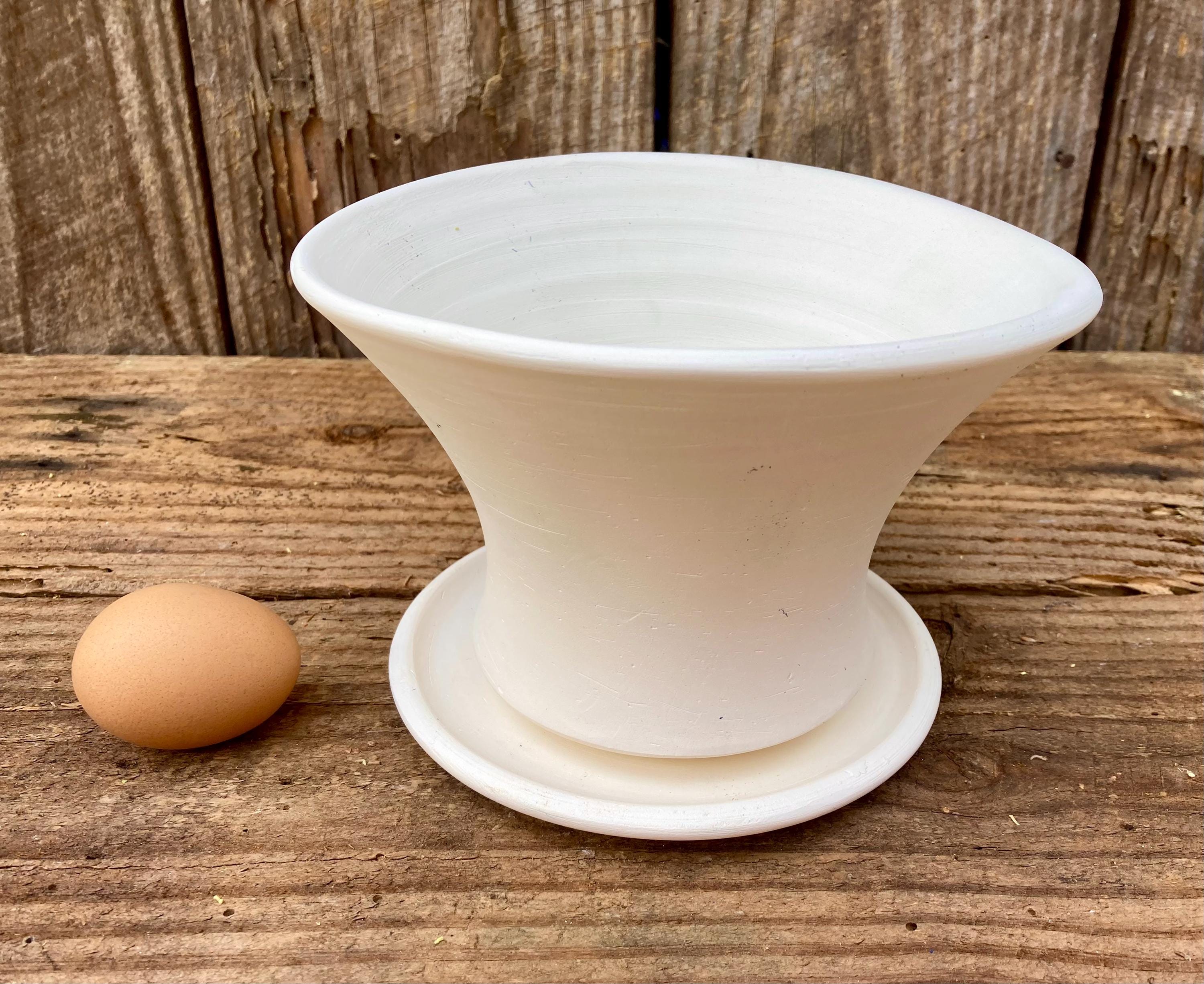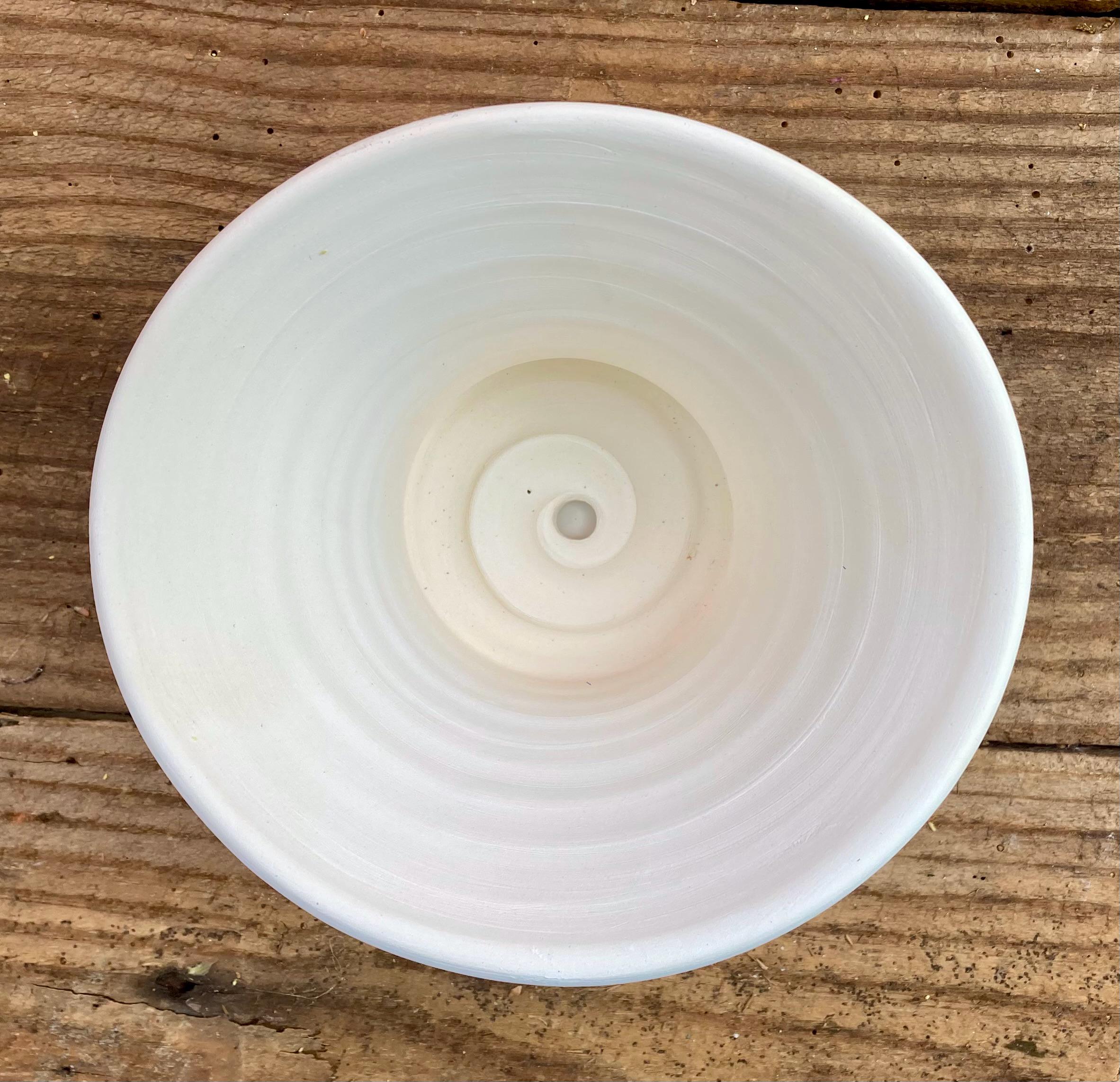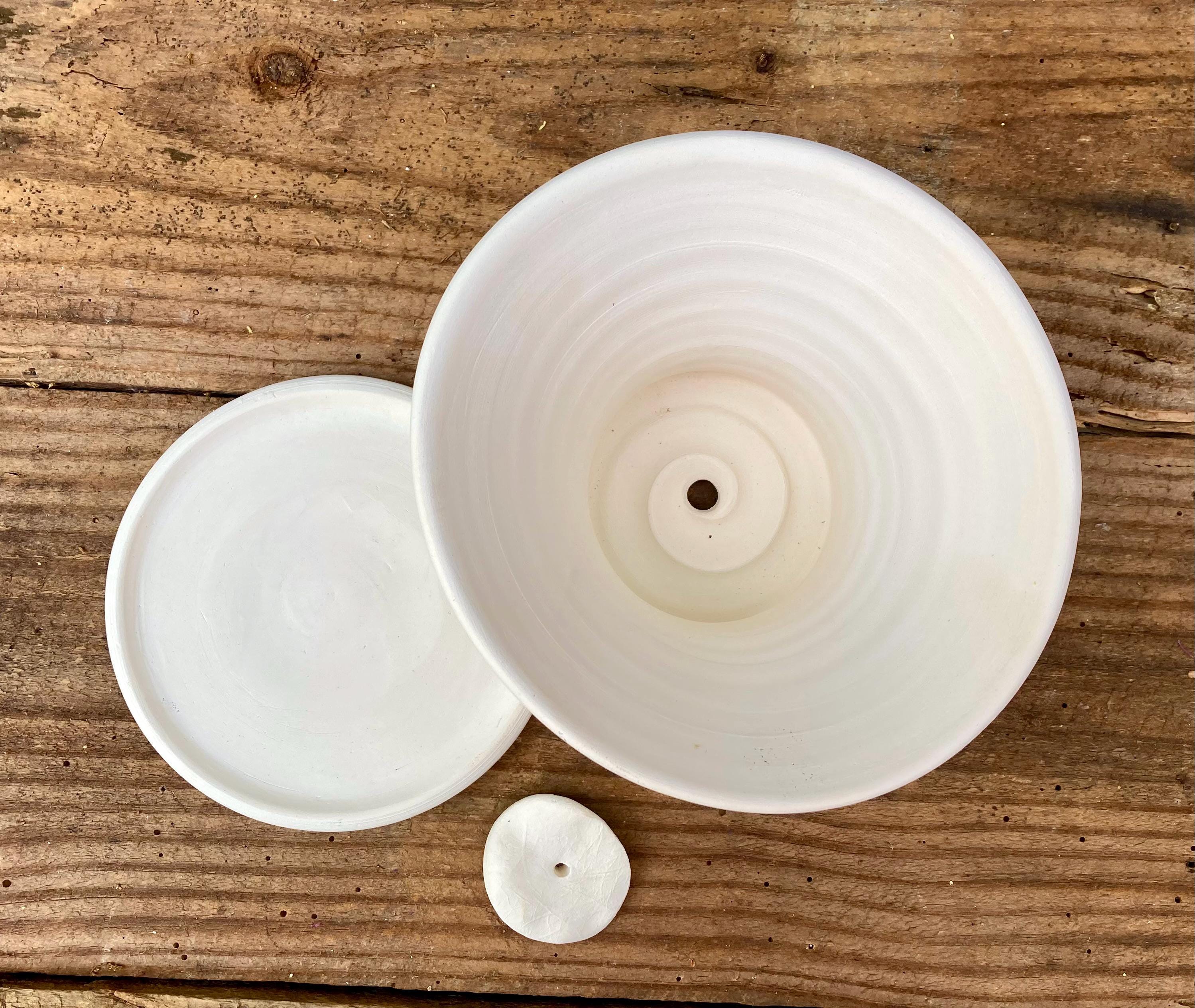 It is fired high enough to be much stronger and more durable than mass produced earthenware pots. It has a small hole for drainage and a saucer that has been treated with a sealant to keep it from leaking. It also has a small shard to keep the soil from falling out or the hole becoming clogged.