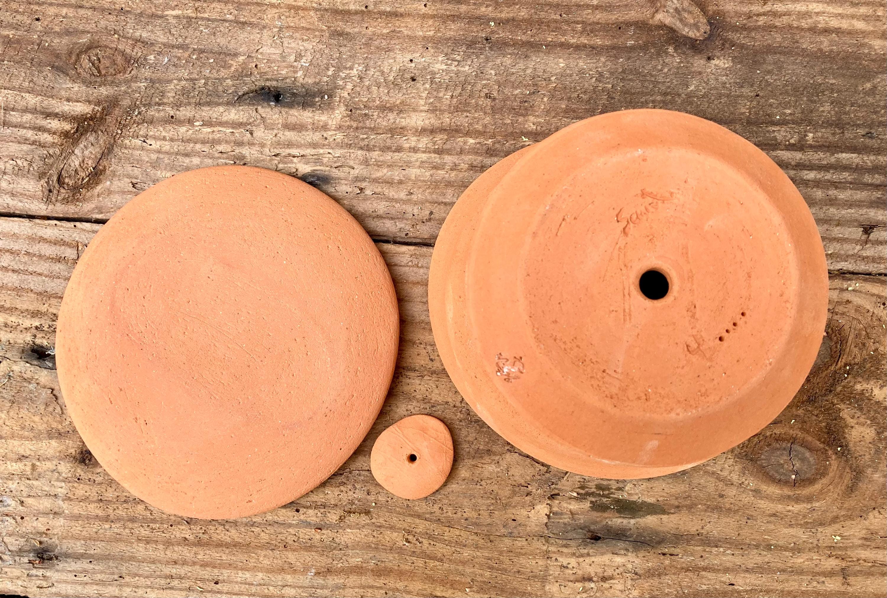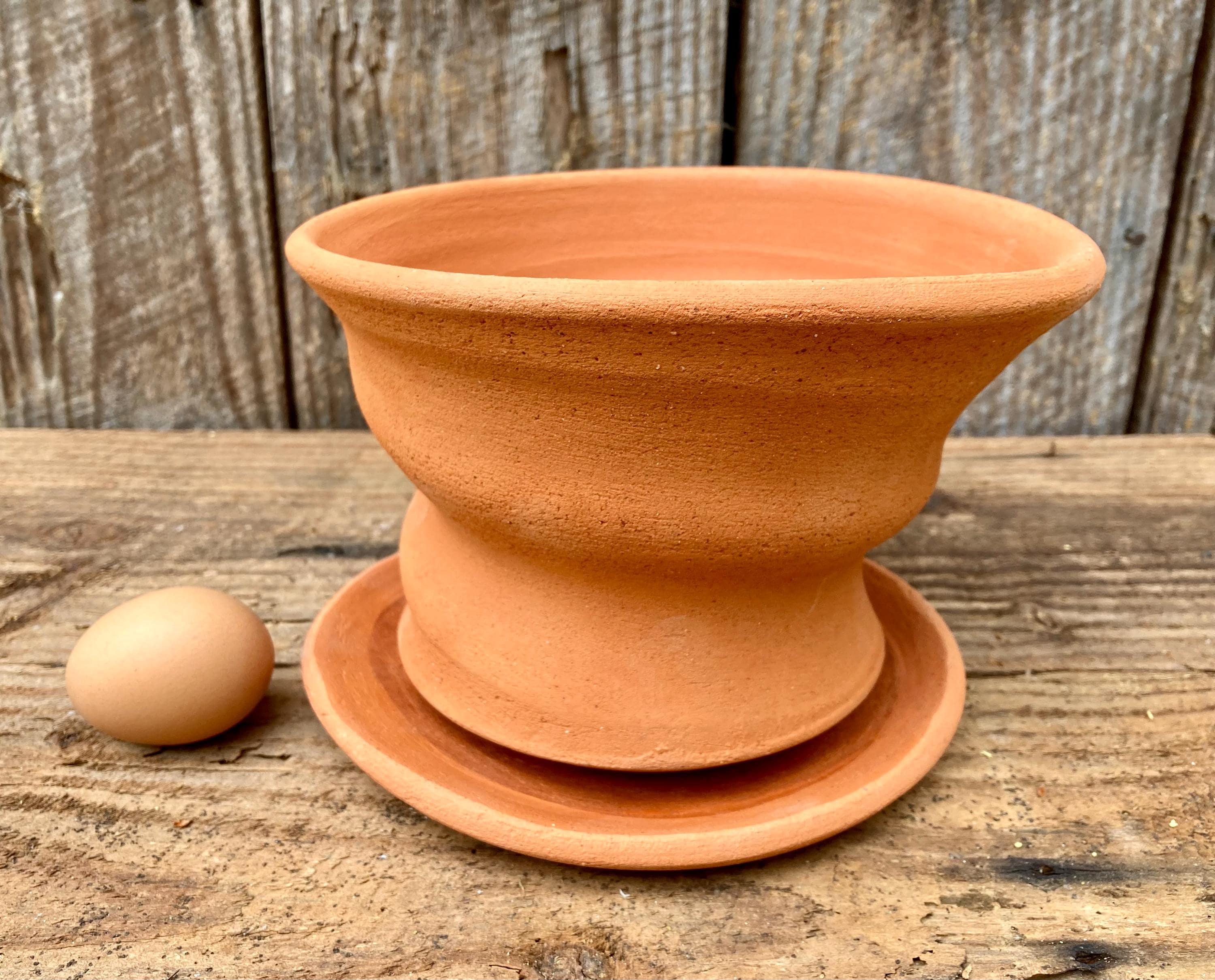 It is fired high enough to be much stronger and more durable than mass produced terracotta pots. (Which are usually not real terracotta.) It has a small hole for drainage and a shallow saucer that has been treated with a sealant to keep it from leaking. It also comes with a small shard to keep the soil from falling out or the hole becoming clogged. Okay indoors or outdoors.