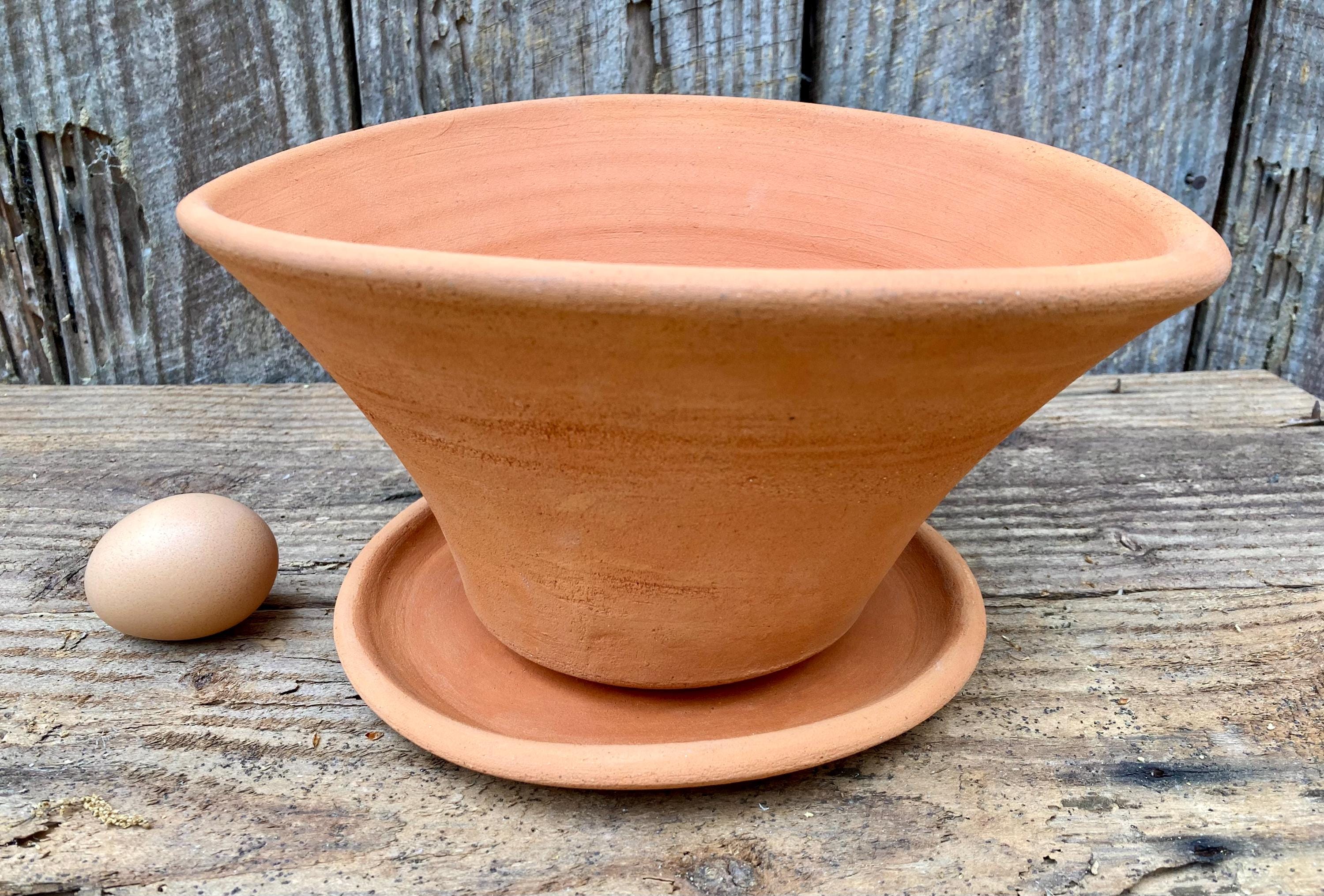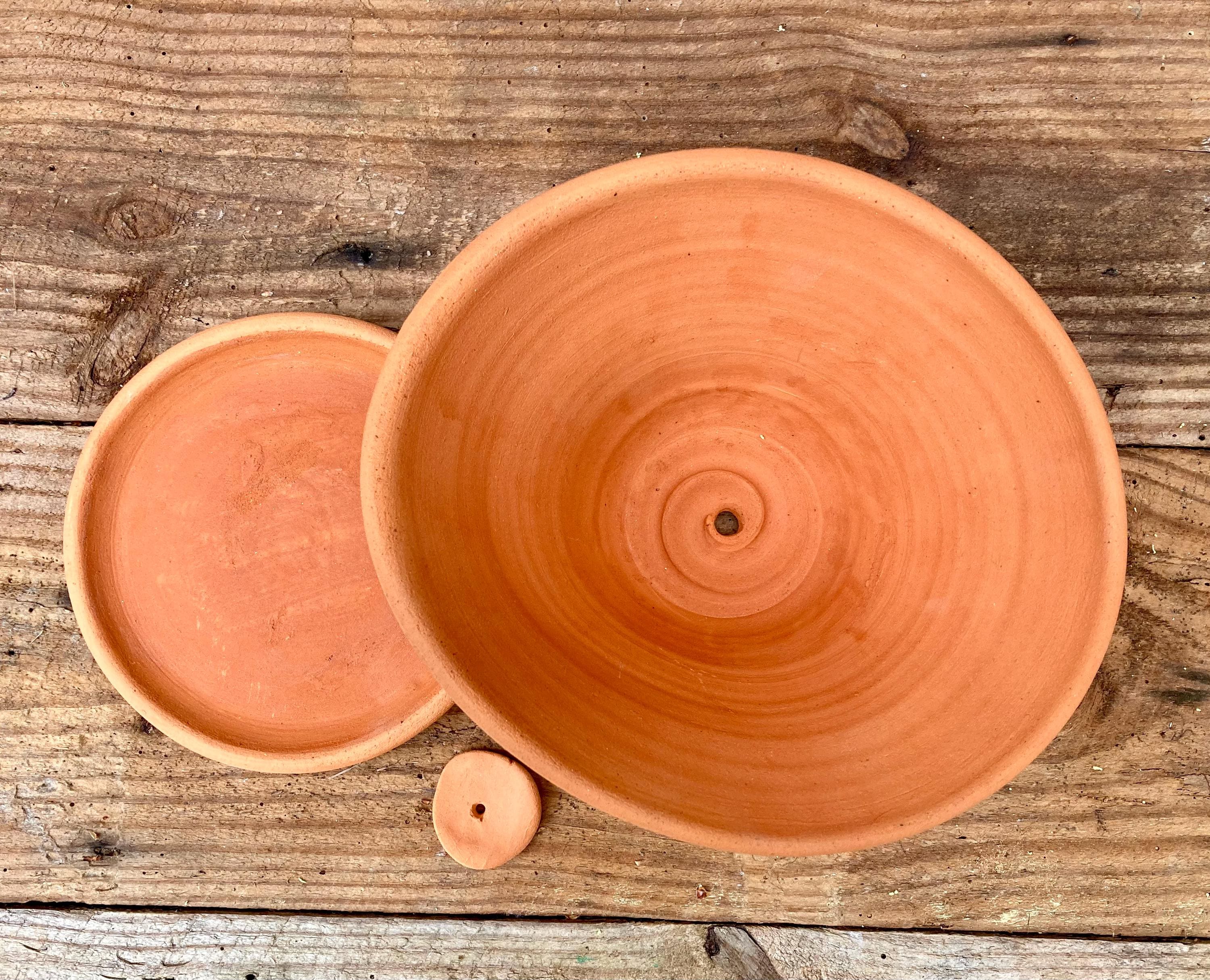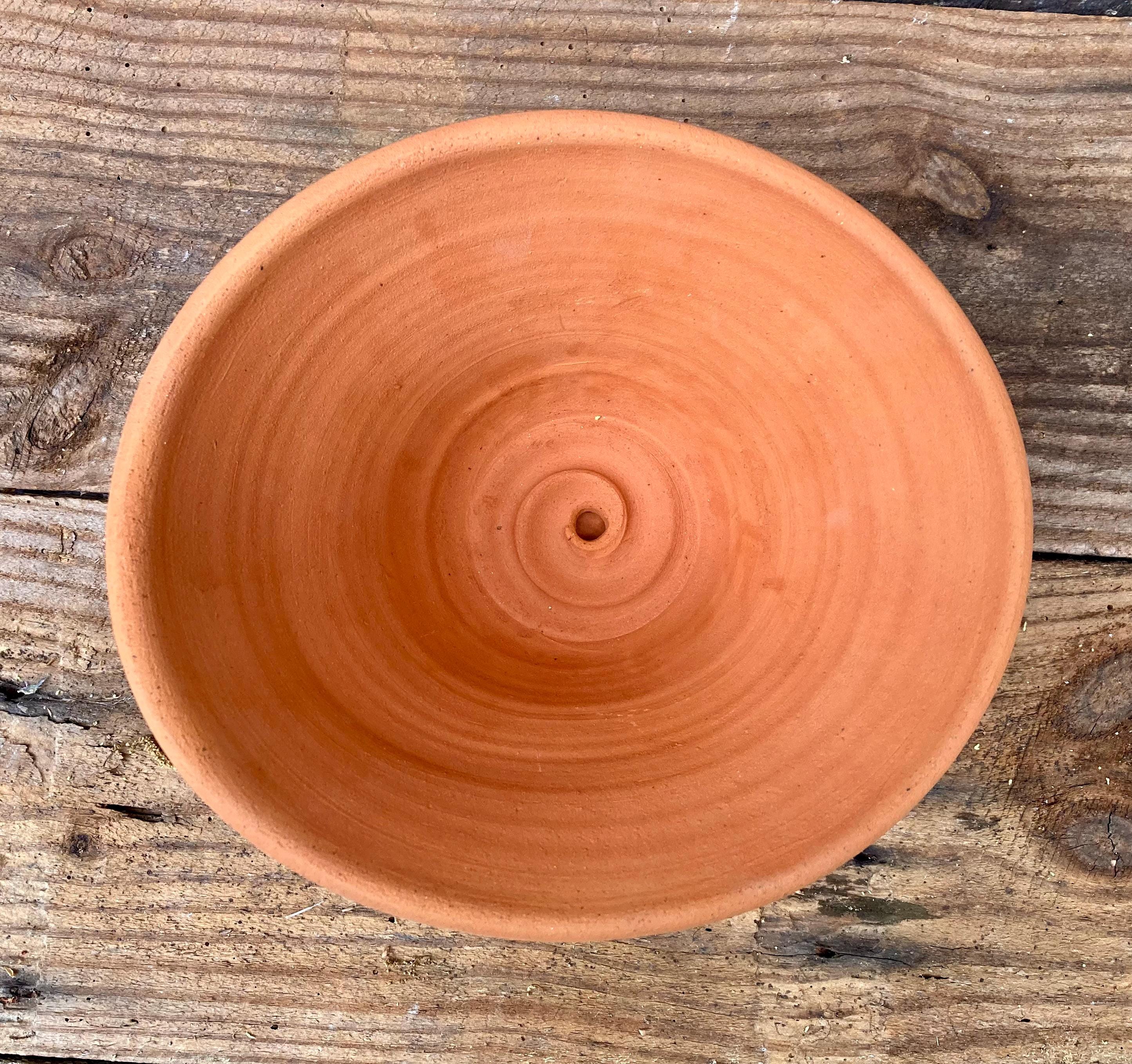 It is made of locally dug clay that when fired to the right temperature comes out a nice terracotta color and is porous. This allows air and water to flow through the pot which prevents root rot and soil disease.