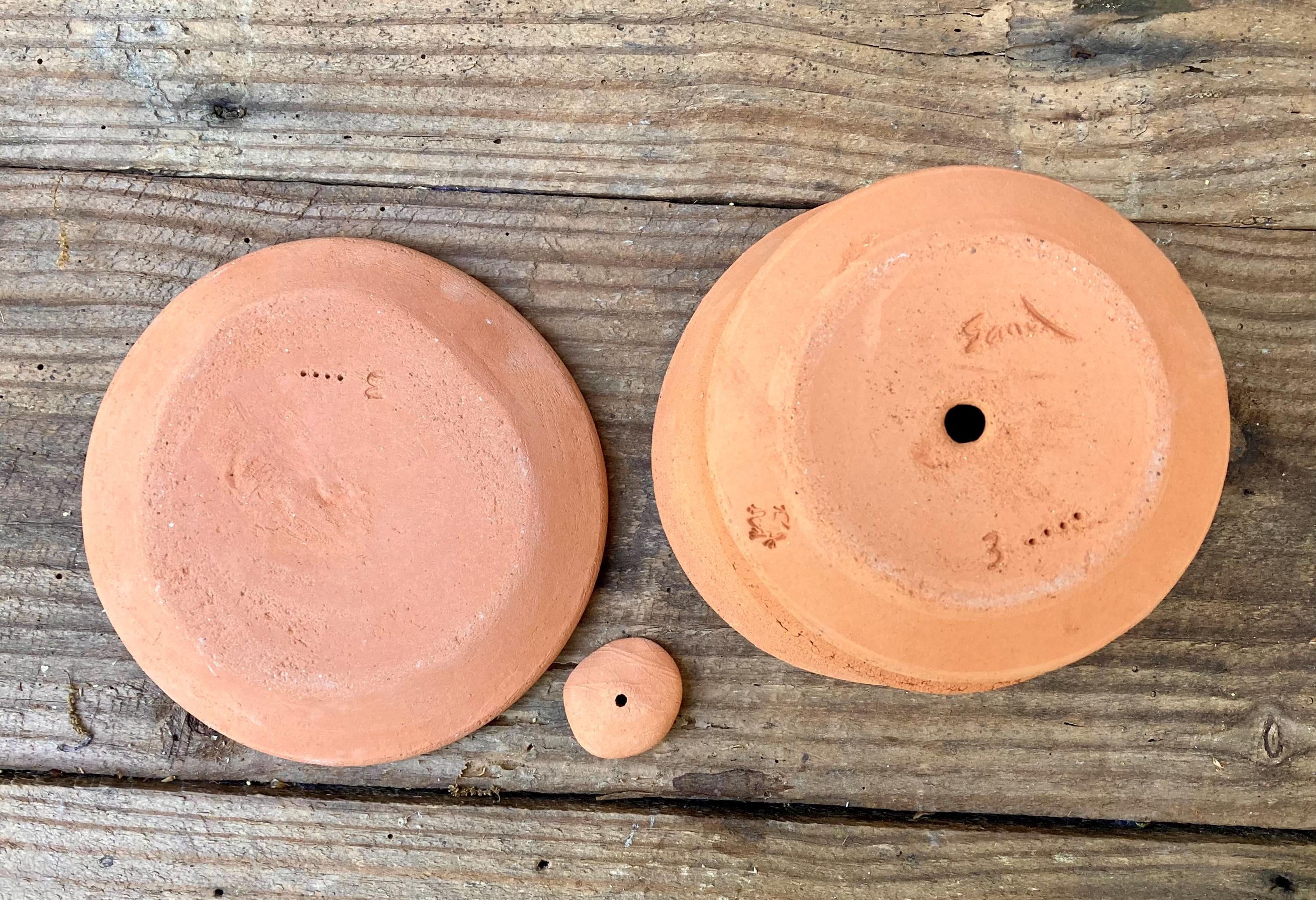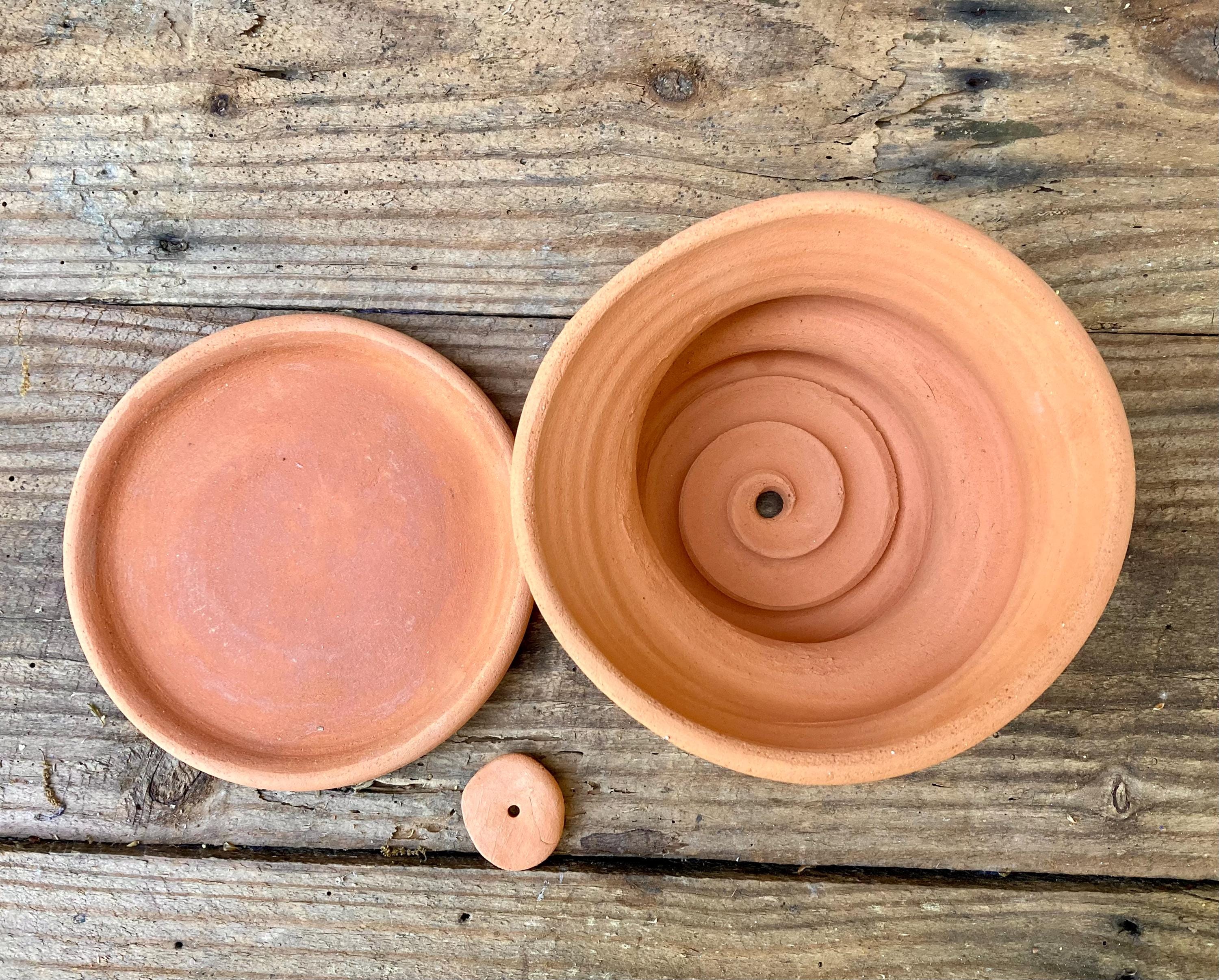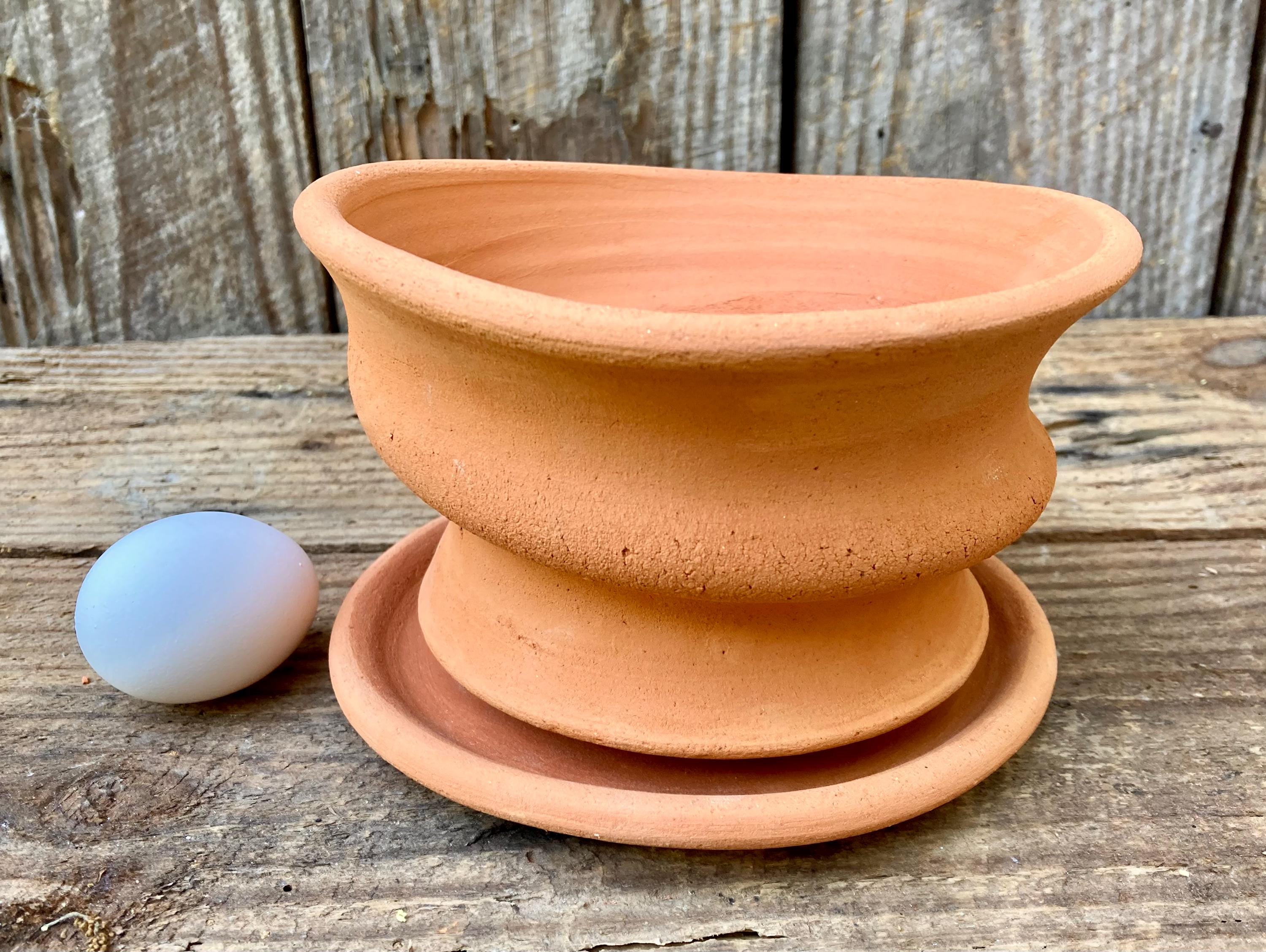 It is fired high enough to be much stronger and more durable than mass produced terracotta pots. (Which are usually not real terracotta.) It has a small hole for drainage and a shallow saucer that has been treated with a sealant to keep it from leaking. It also comes with a small shard to keep the soil from falling out or the hole becoming clogged. Okay indoors or outdoors.
