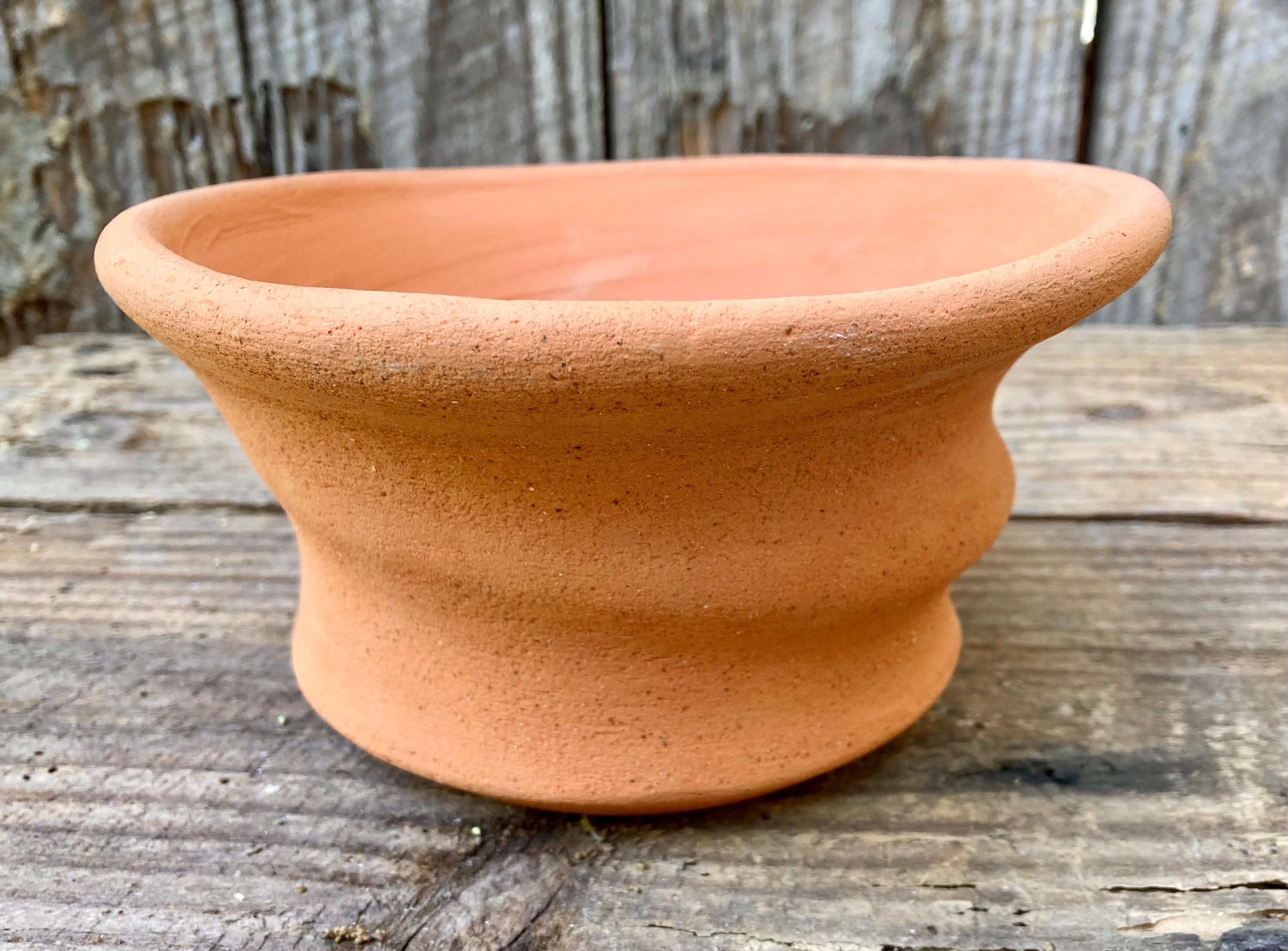 It was made of locally dug clay that when fired to the right temperature comes out a nice terracotta color and is porous. This allows air and water to flow through the pot which prevents root rot and soil disease.