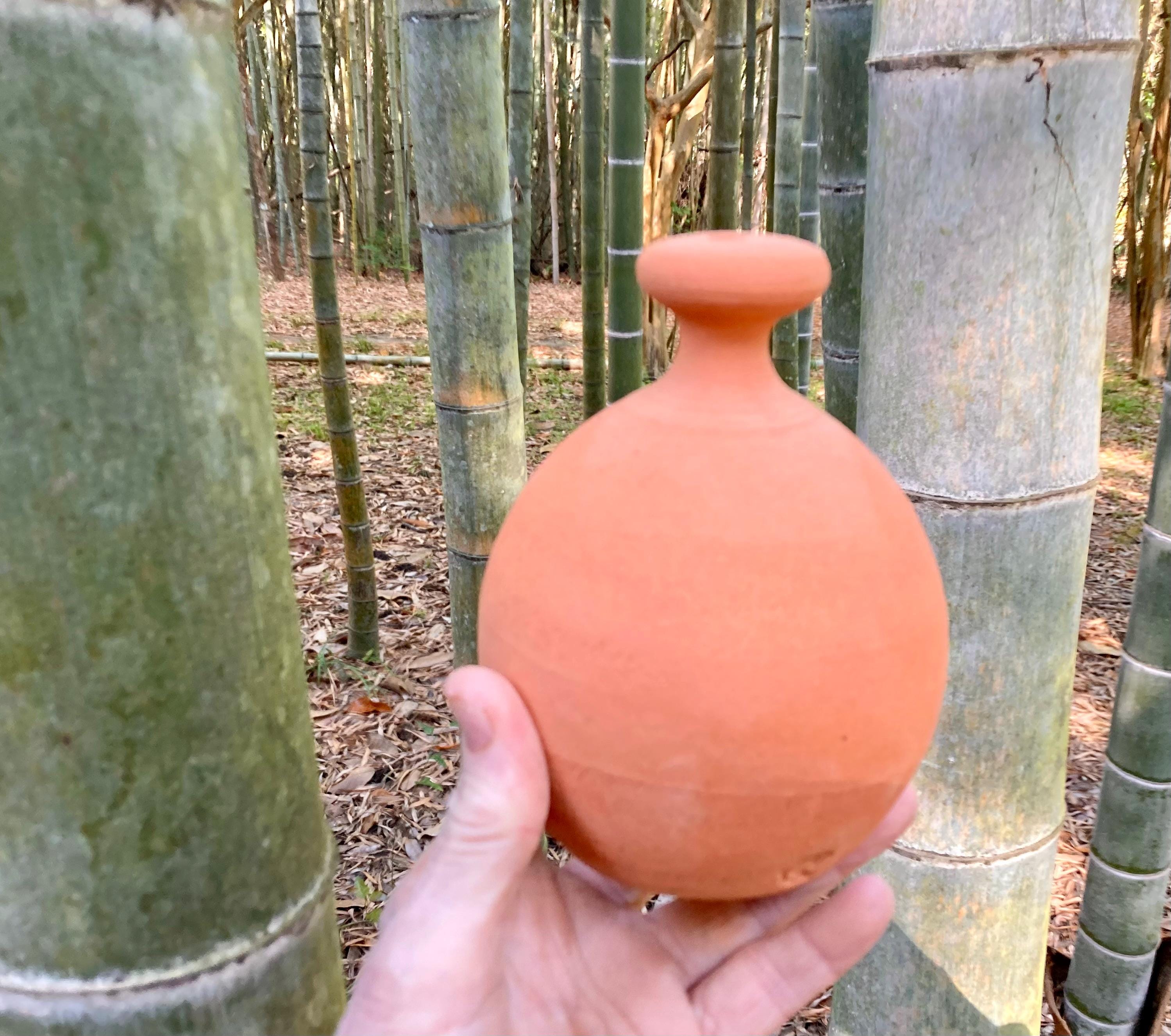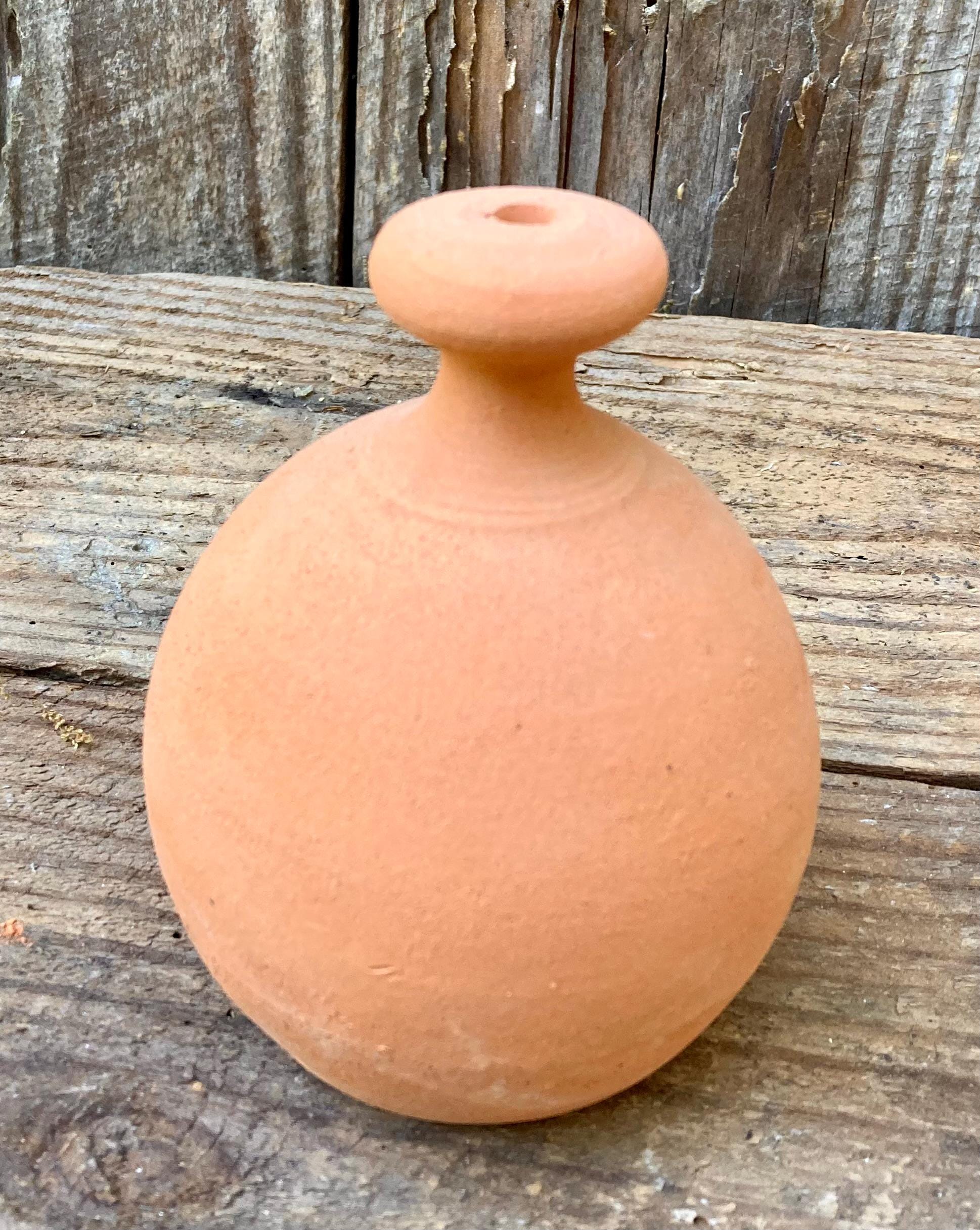 This terracotta watering bell was made of locally dug clay that when fired to the right temperature comes out a nice terracotta color. It is fired higher than most terracotta pottery so is much stronger and more durable.