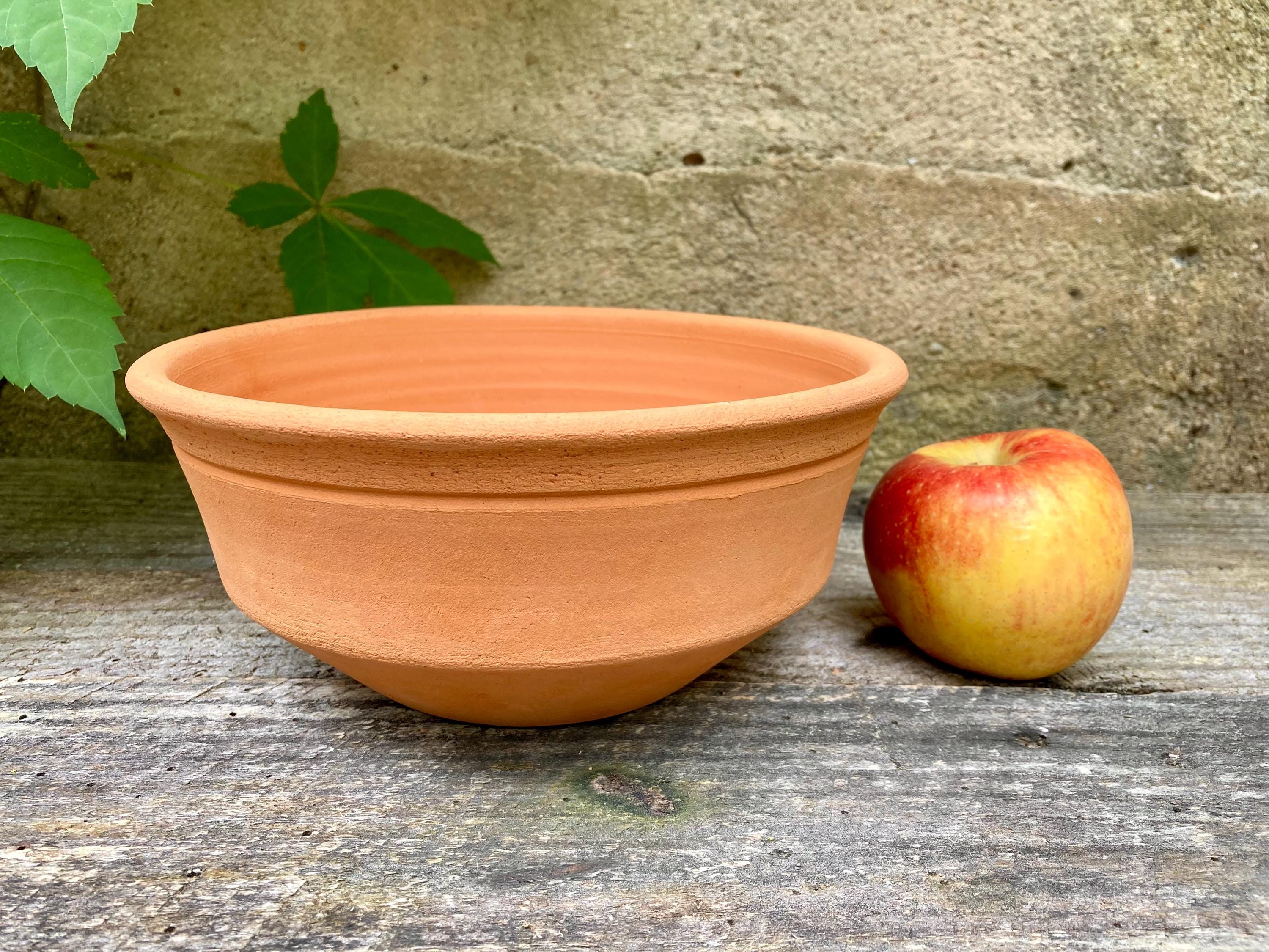 This terracotta planter was made of wheel-thrown, locally dug clay that when fired to the right temperature comes out a nice terracotta color and is porous. This allows air and water to flow through the pot which prevents root rot and soil disease.
