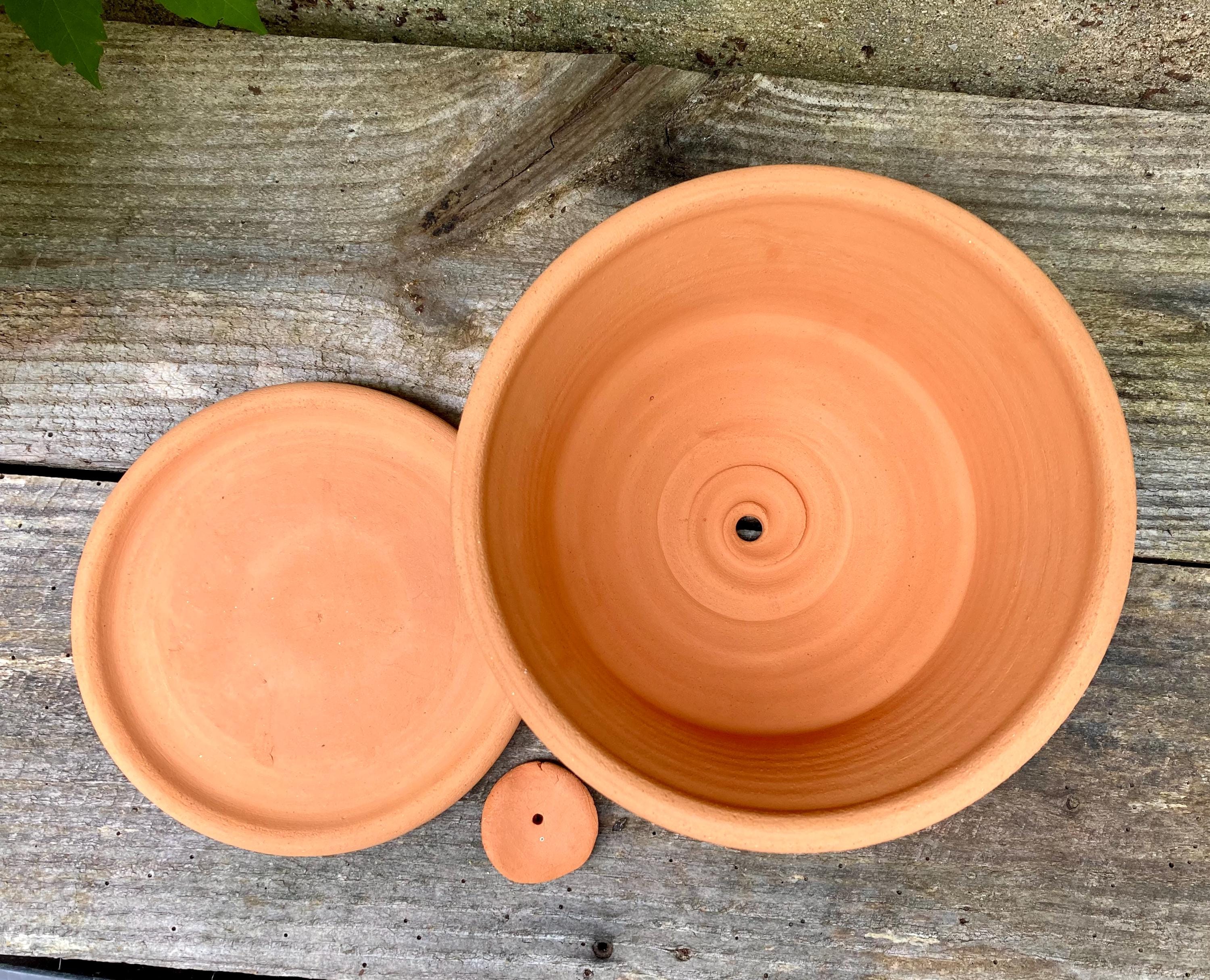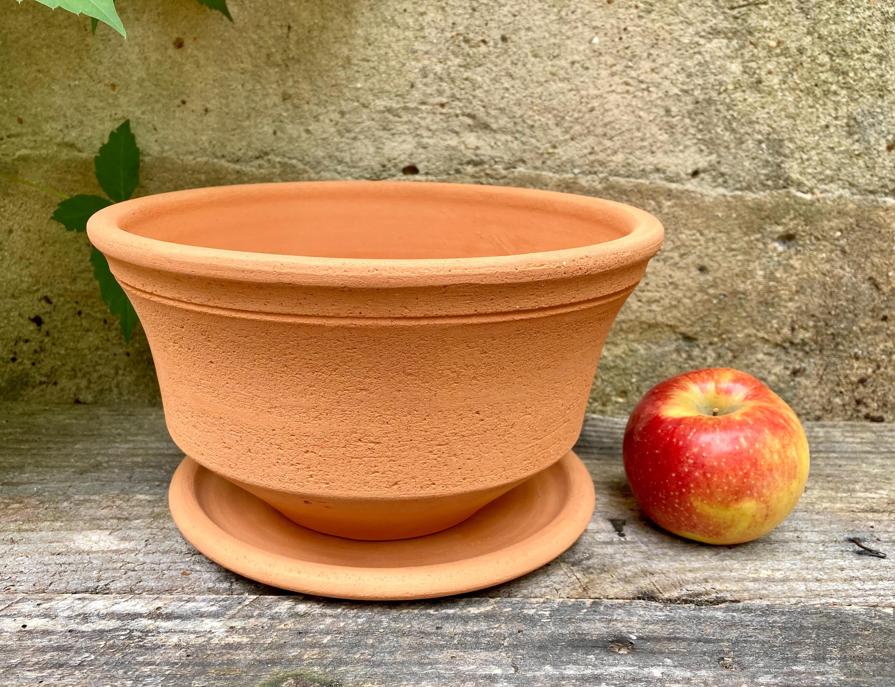 This terracotta planter was made of wheel-thrown, locally dug clay that when fired to the right temperature comes out a nice terracotta color and is porous. This allows air and water to flow through the pot which prevents root rot and soil disease.