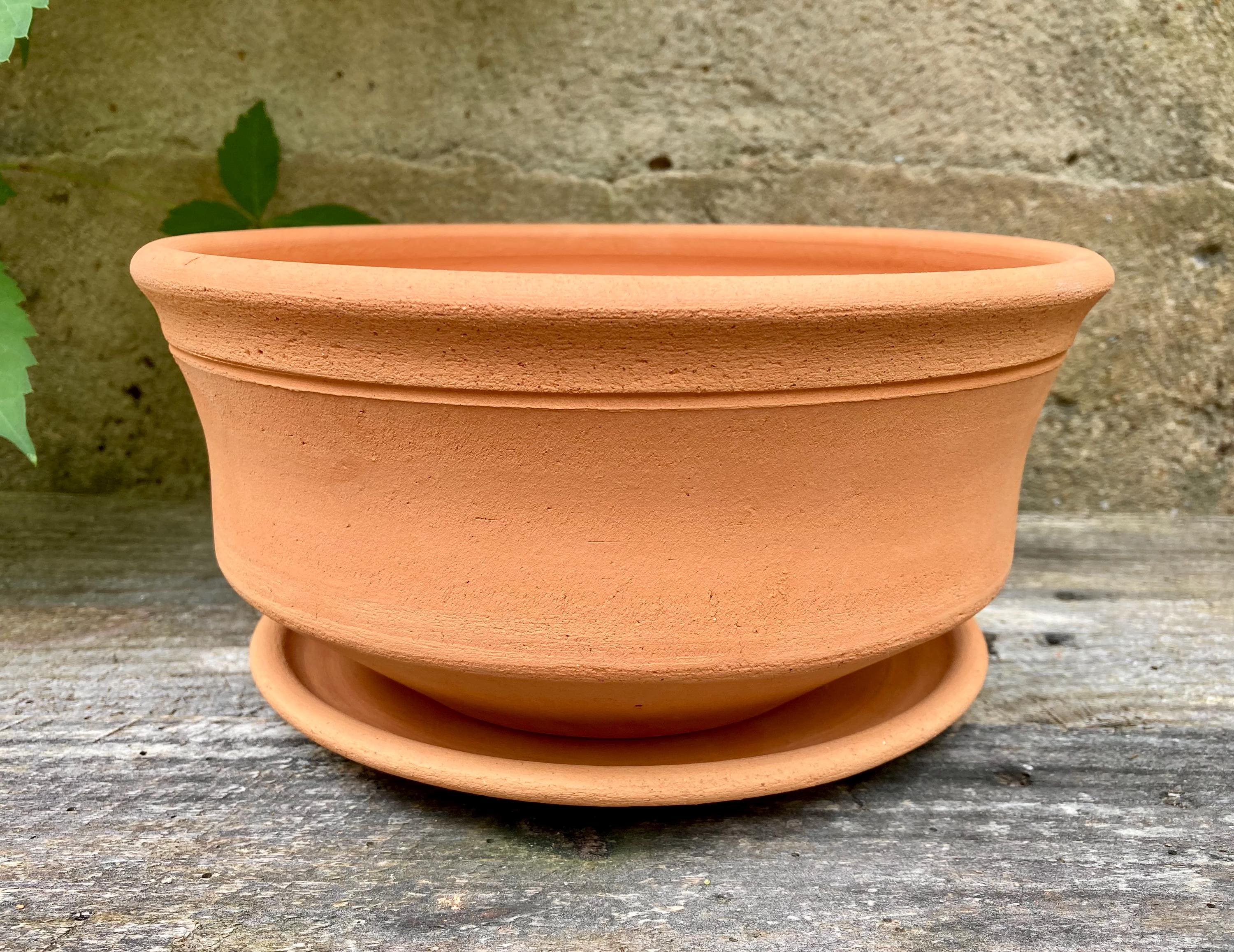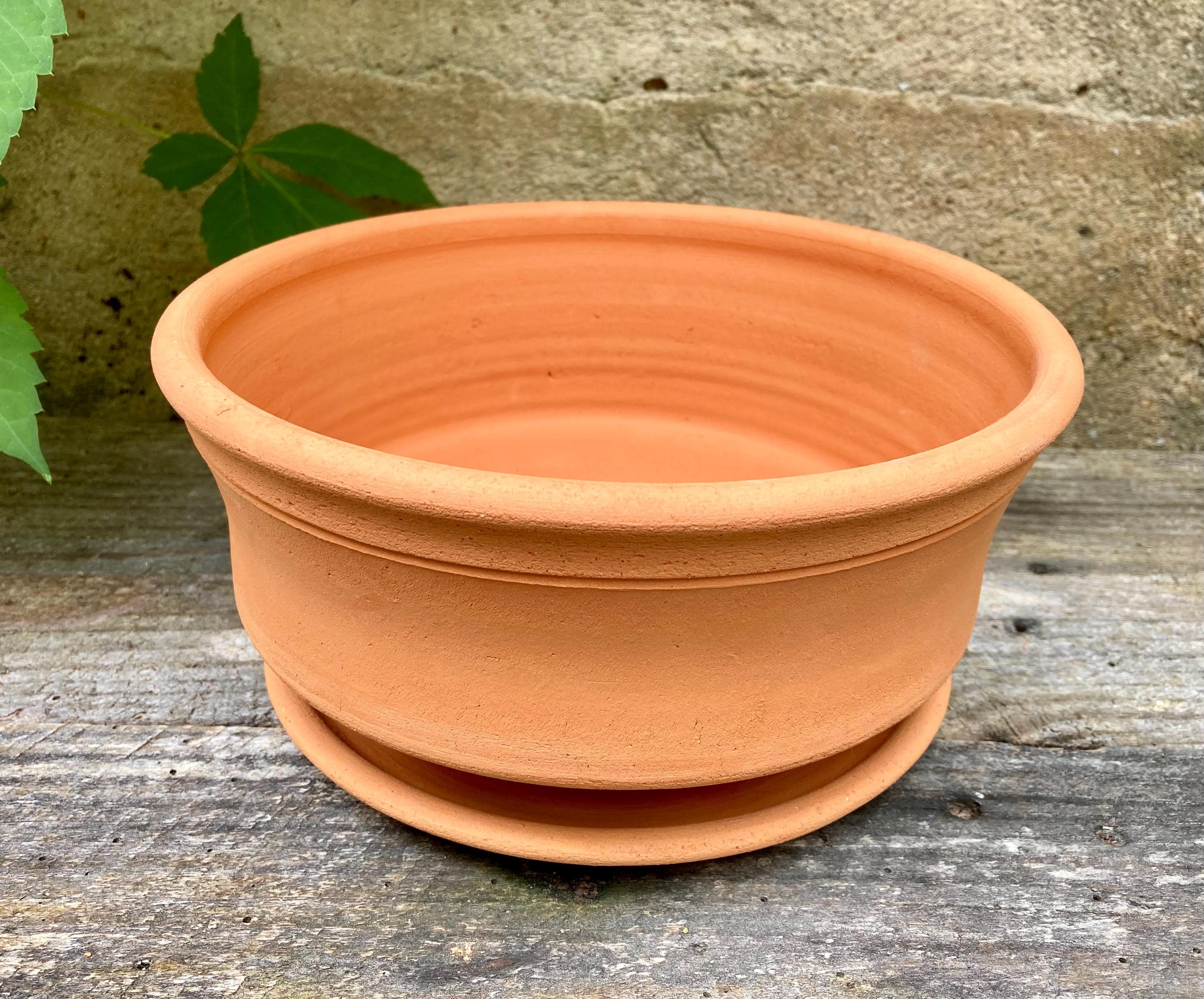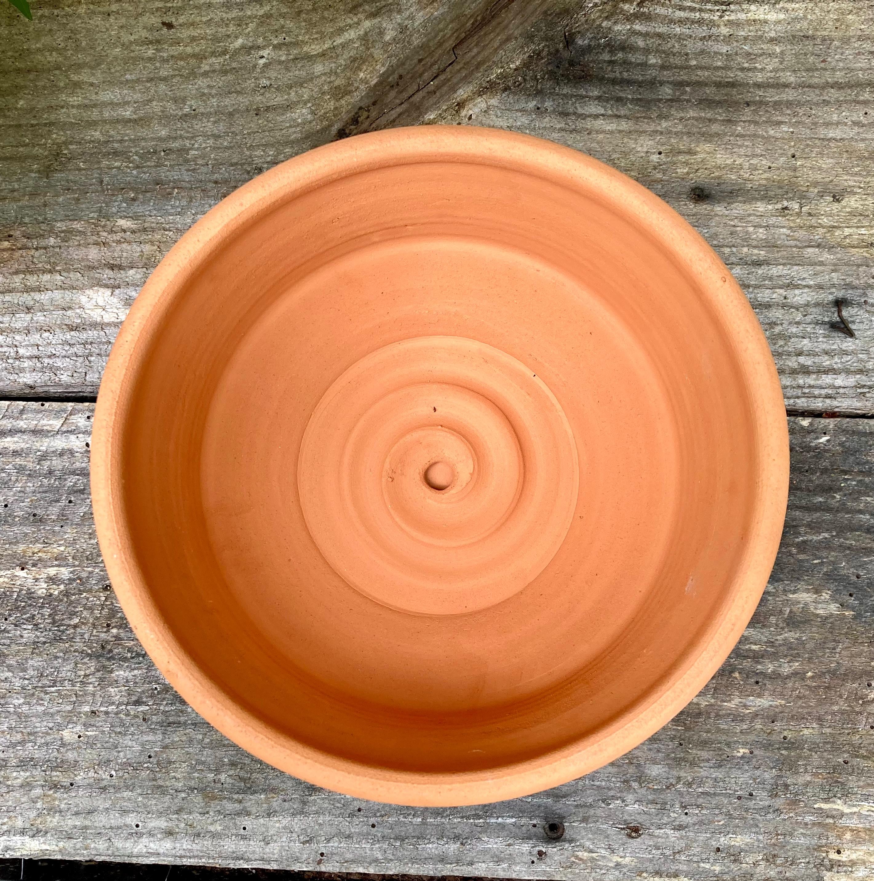 This terracotta planter was made of wheel-thrown, locally dug clay that when fired to the right temperature comes out a nice terracotta color and is porous. This allows air and water to flow through the pot which prevents root rot and soil disease.